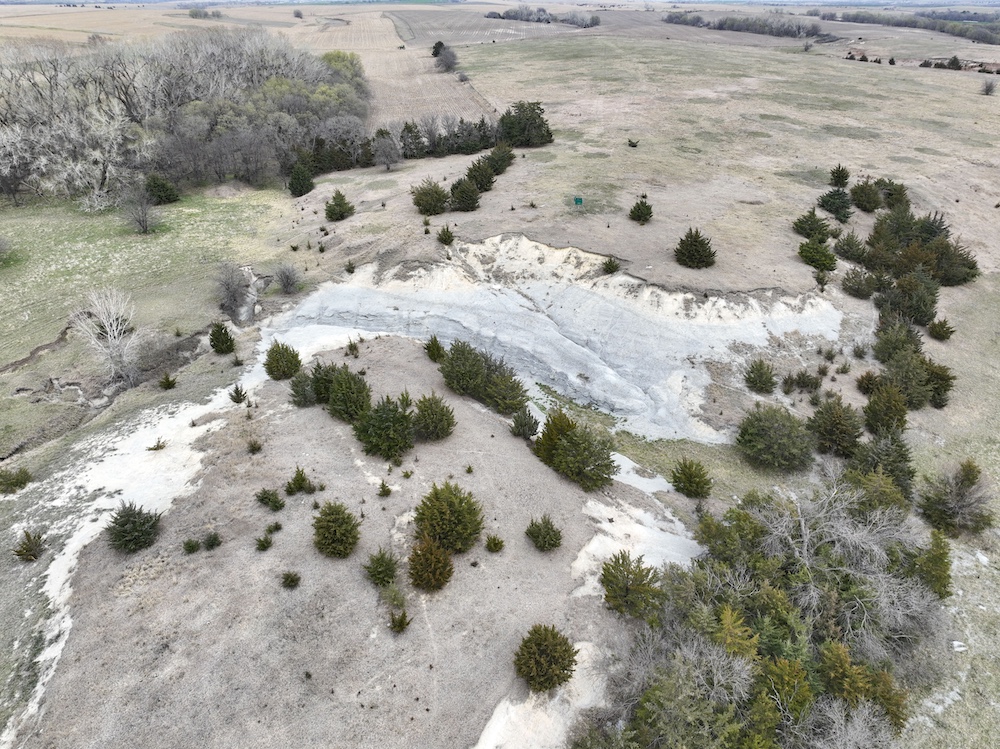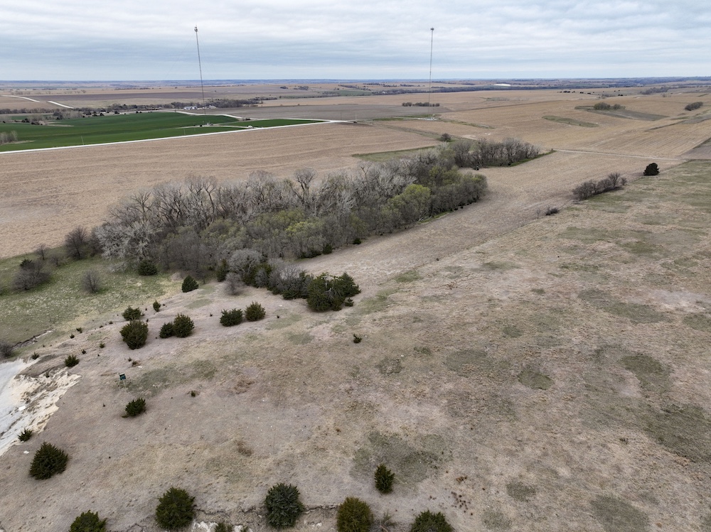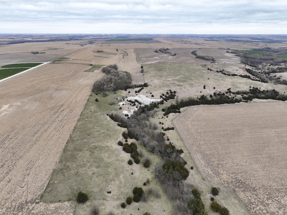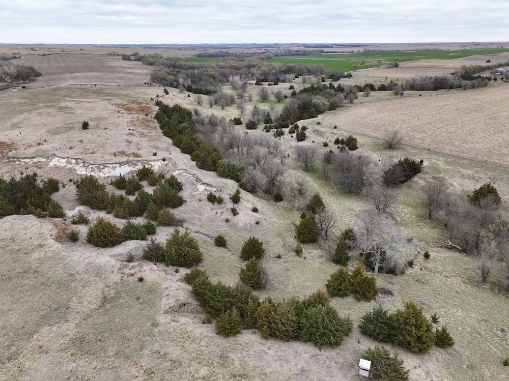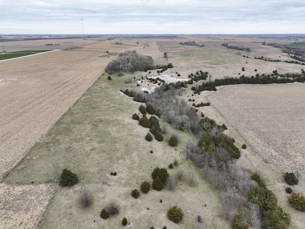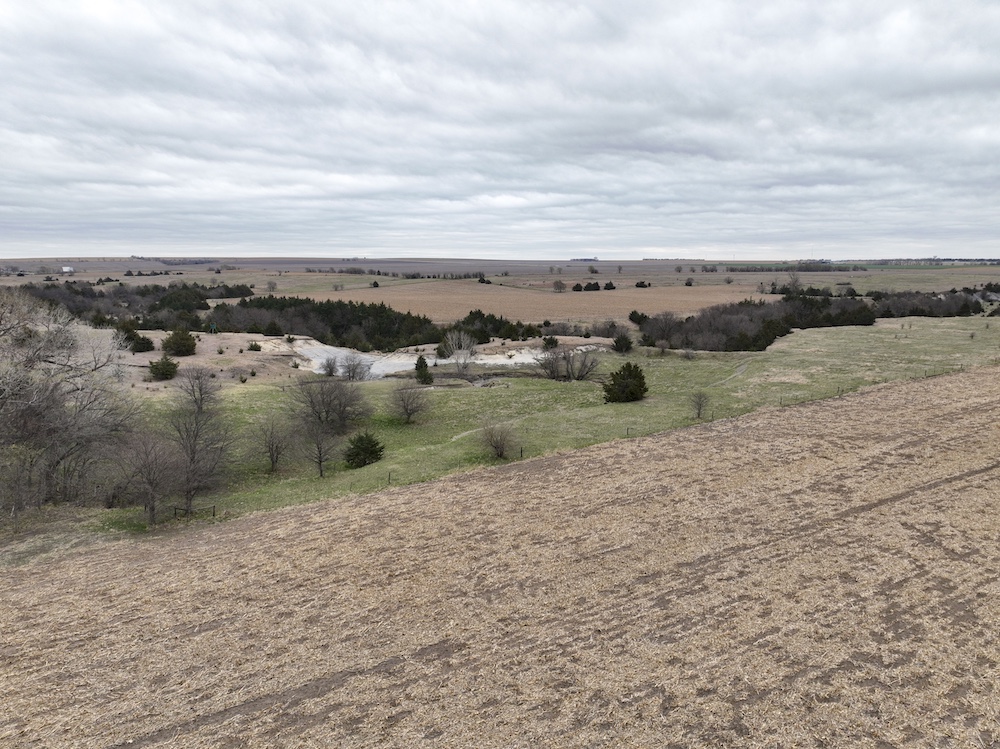 Complementing the tillable acres is a well-maintained balance of grassland pasture that is fenced and suitable for grazing. The pasture features rolling topography with notable elevation changes, creating both functional grazing land and strategic vantage points for hunting. The presence of cedar trees and natural cover enhances the property's appeal, providing excellent bedding areas and travel corridors for wildlife.