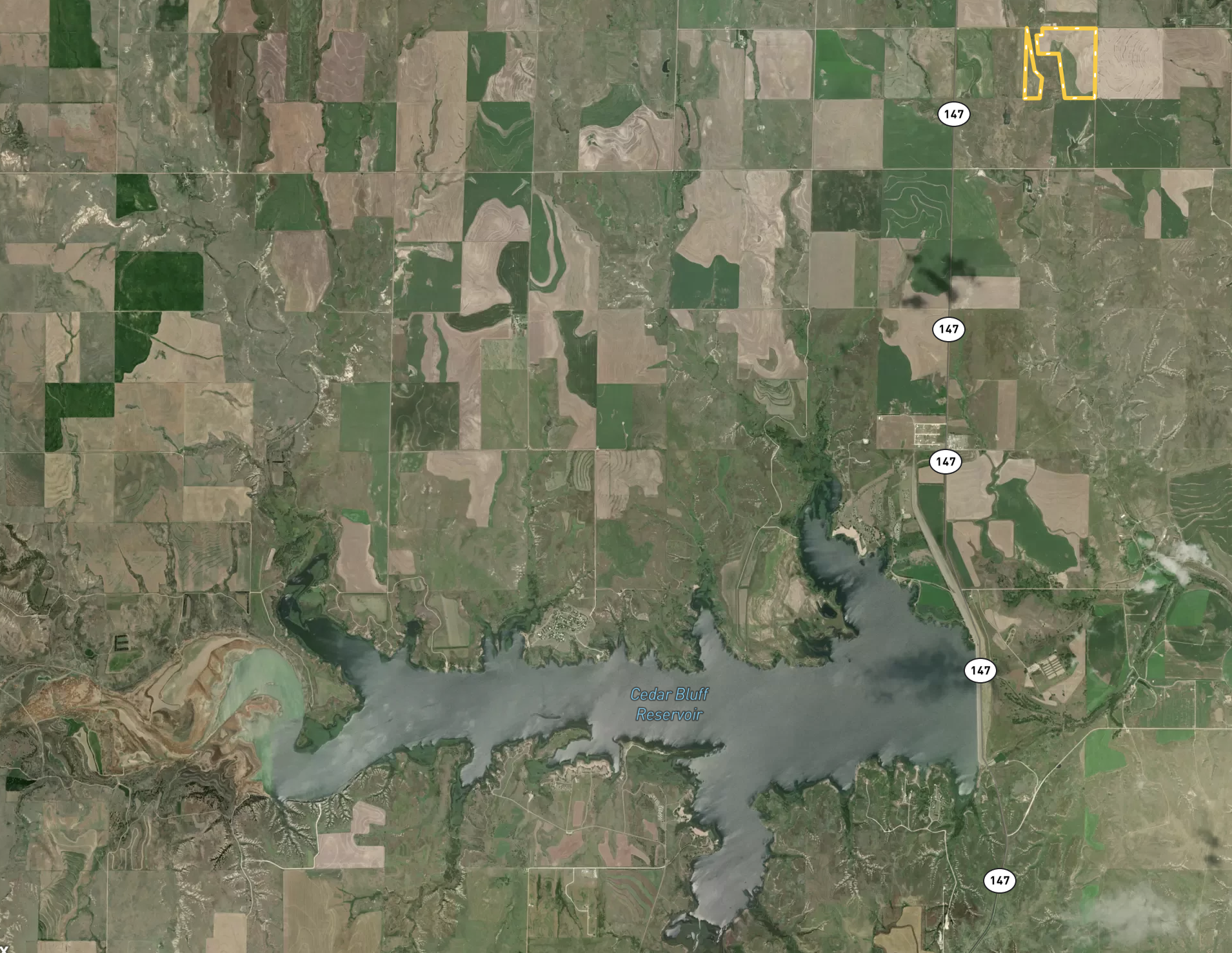 This 100% tillable farm checks all the boxes for the investor or farm operator looking to add quality cropland acres to their balance sheet. This farm offers good productive soils for producing high yielding crops year after year, mineral rights which will transfer to the buyer, and is located in a great area near one of the State’s major reservoirs (Cedar Bluff). Highway 147 provides excellent access less than 1/2 mile west of the property. The farm is currently under a cropshare farm lease that can either be renewed upon expiration or the buyer will have the ability to plant the crop of their choice in 2022. The entire acreage is currently planted to milo.