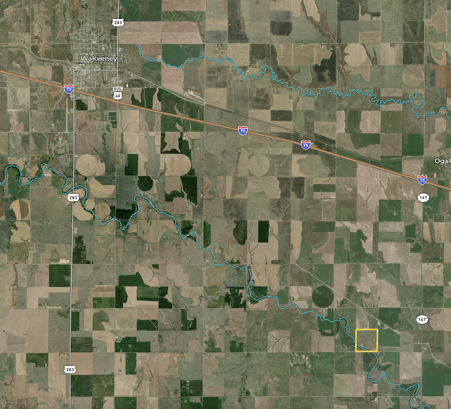 - 8 miles SE of Wakeeney, KS and 10 miles West of Ellis, KS