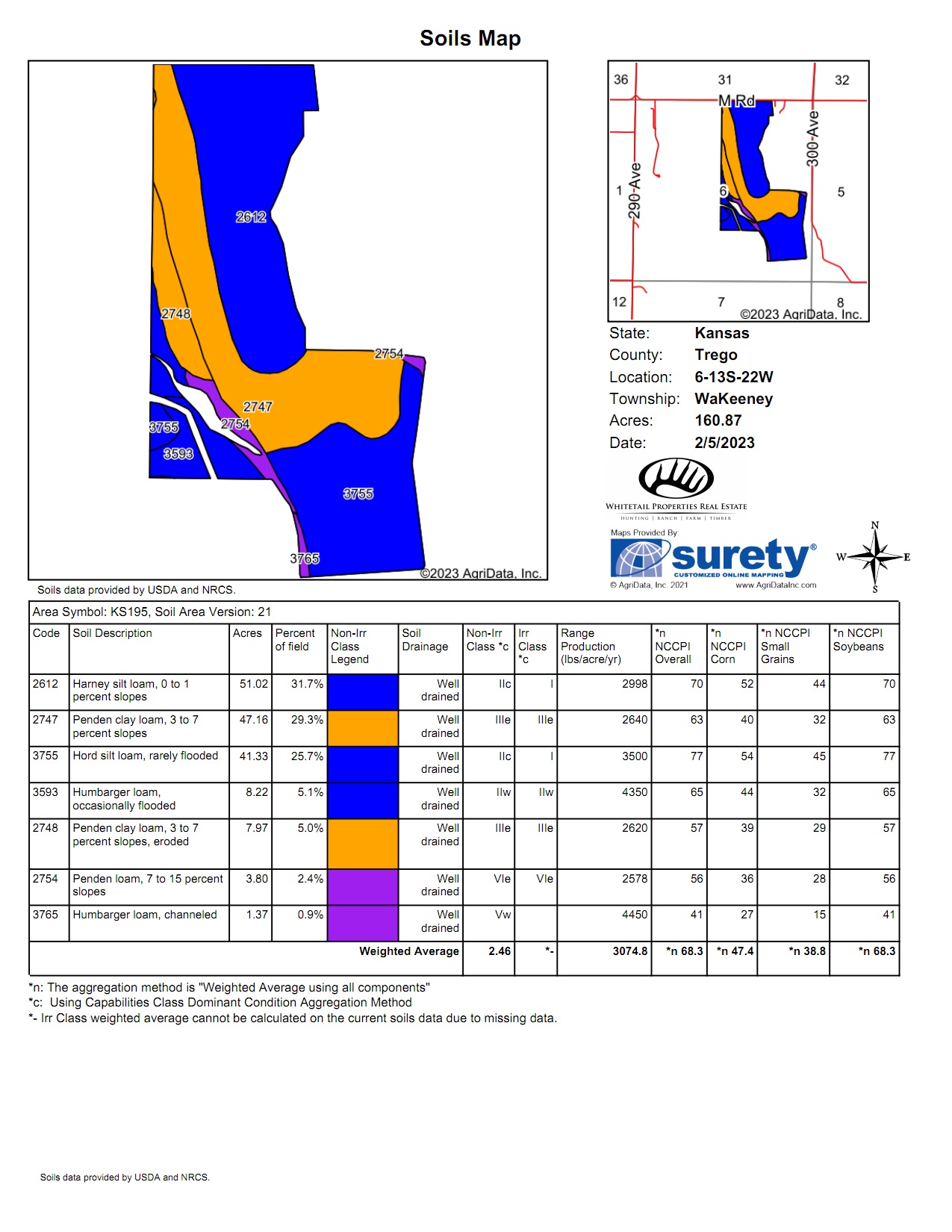 - 135 +/- acres of fertile cropland. Nearly all Class II and III soils