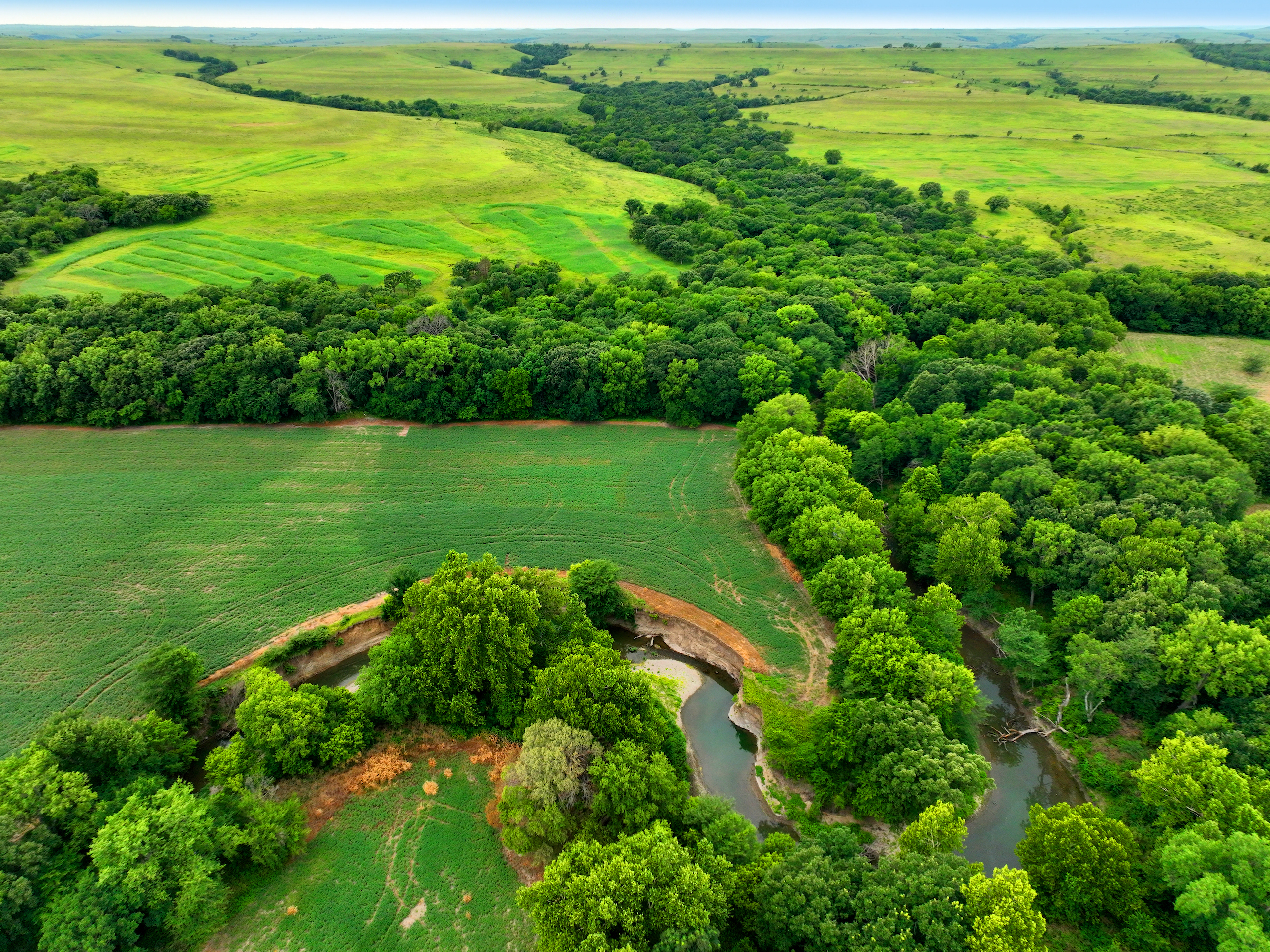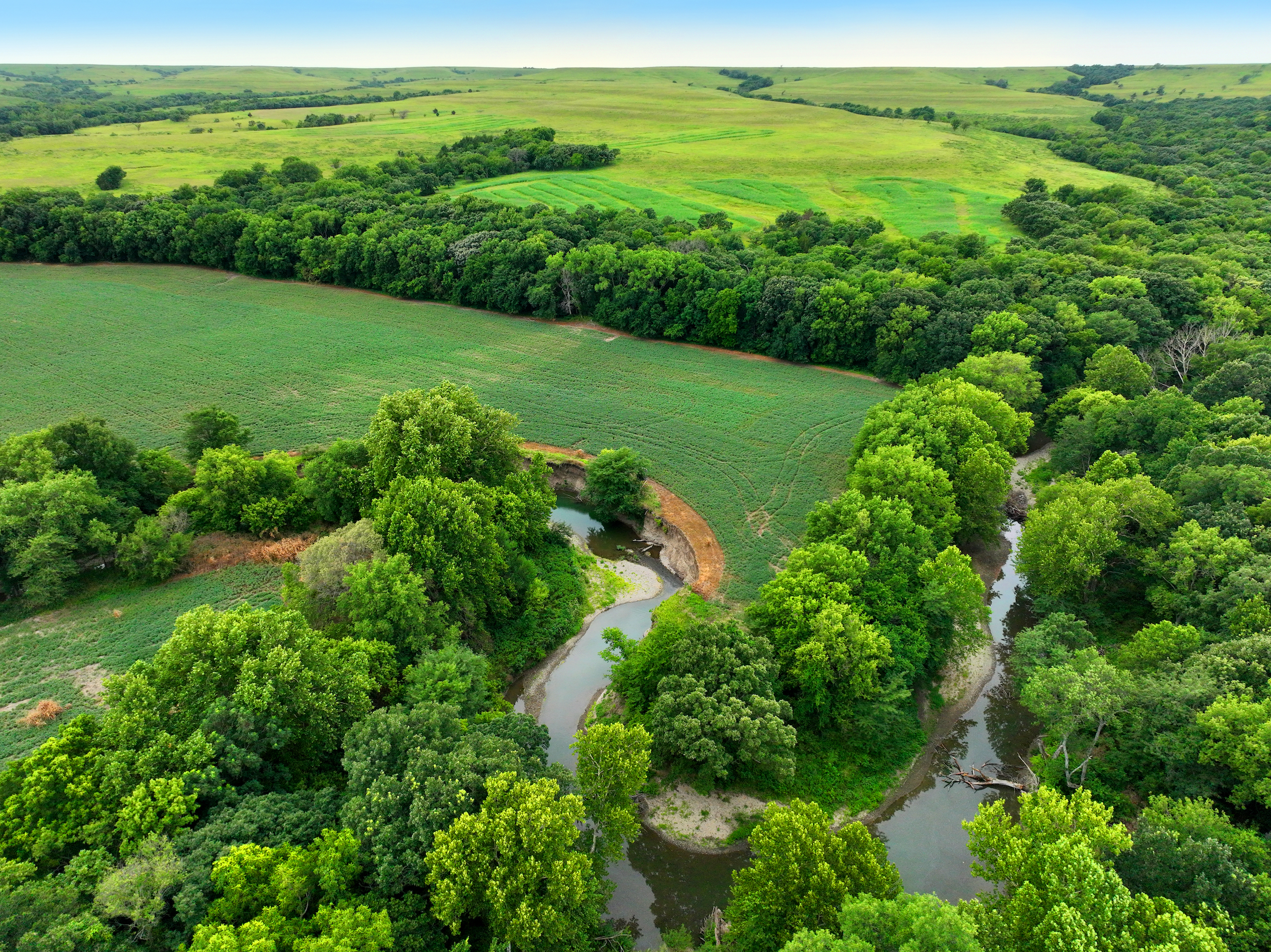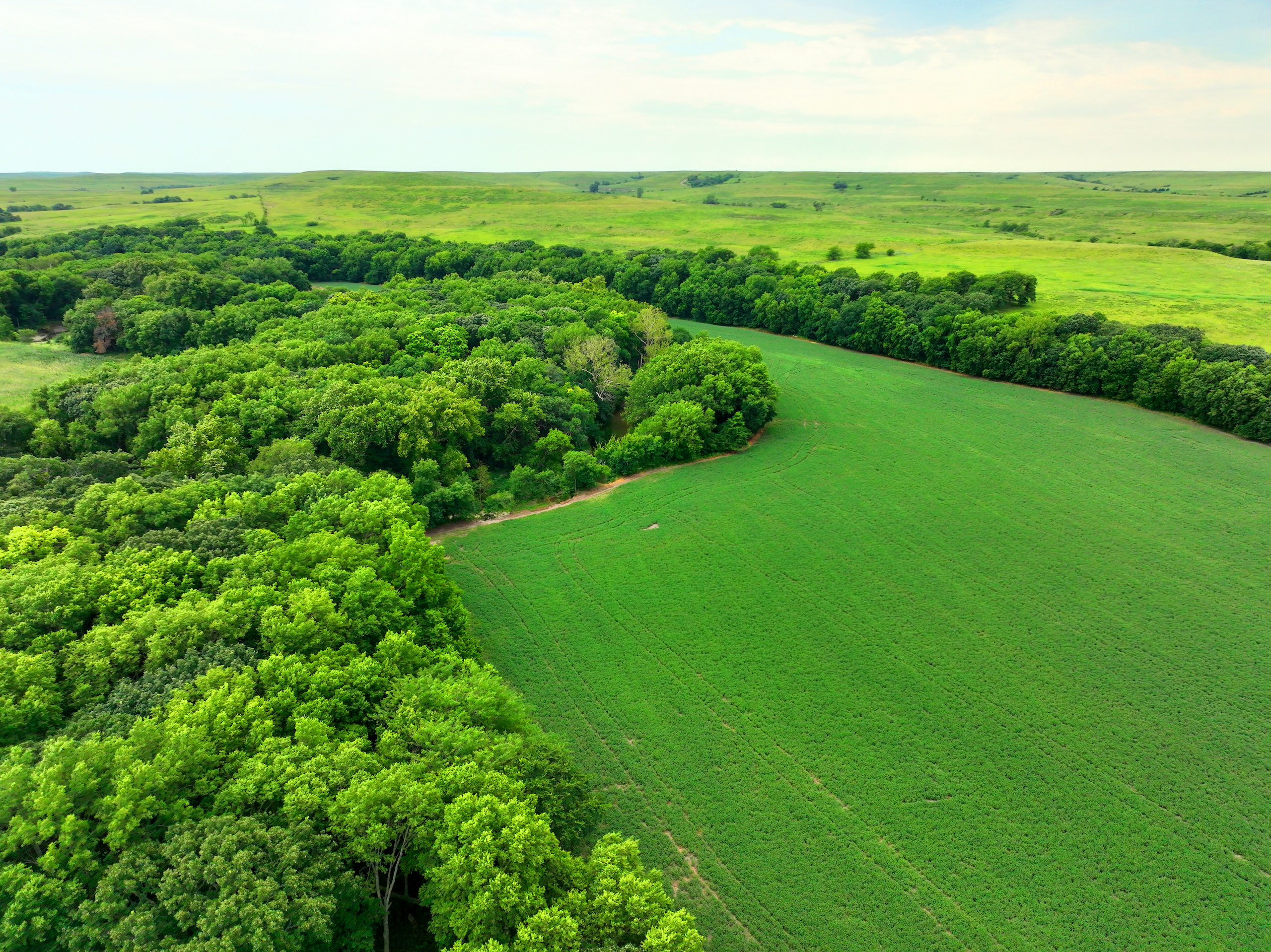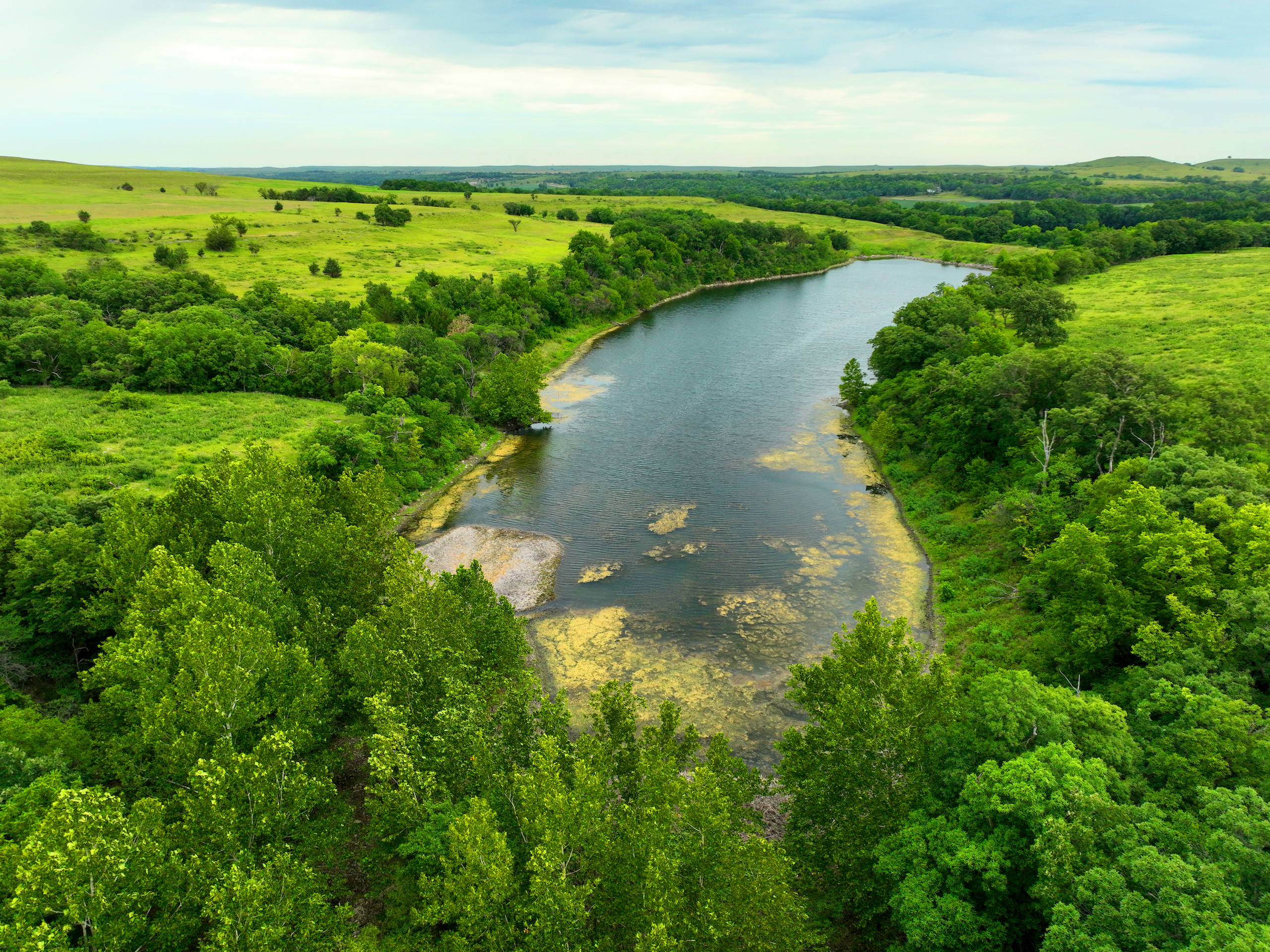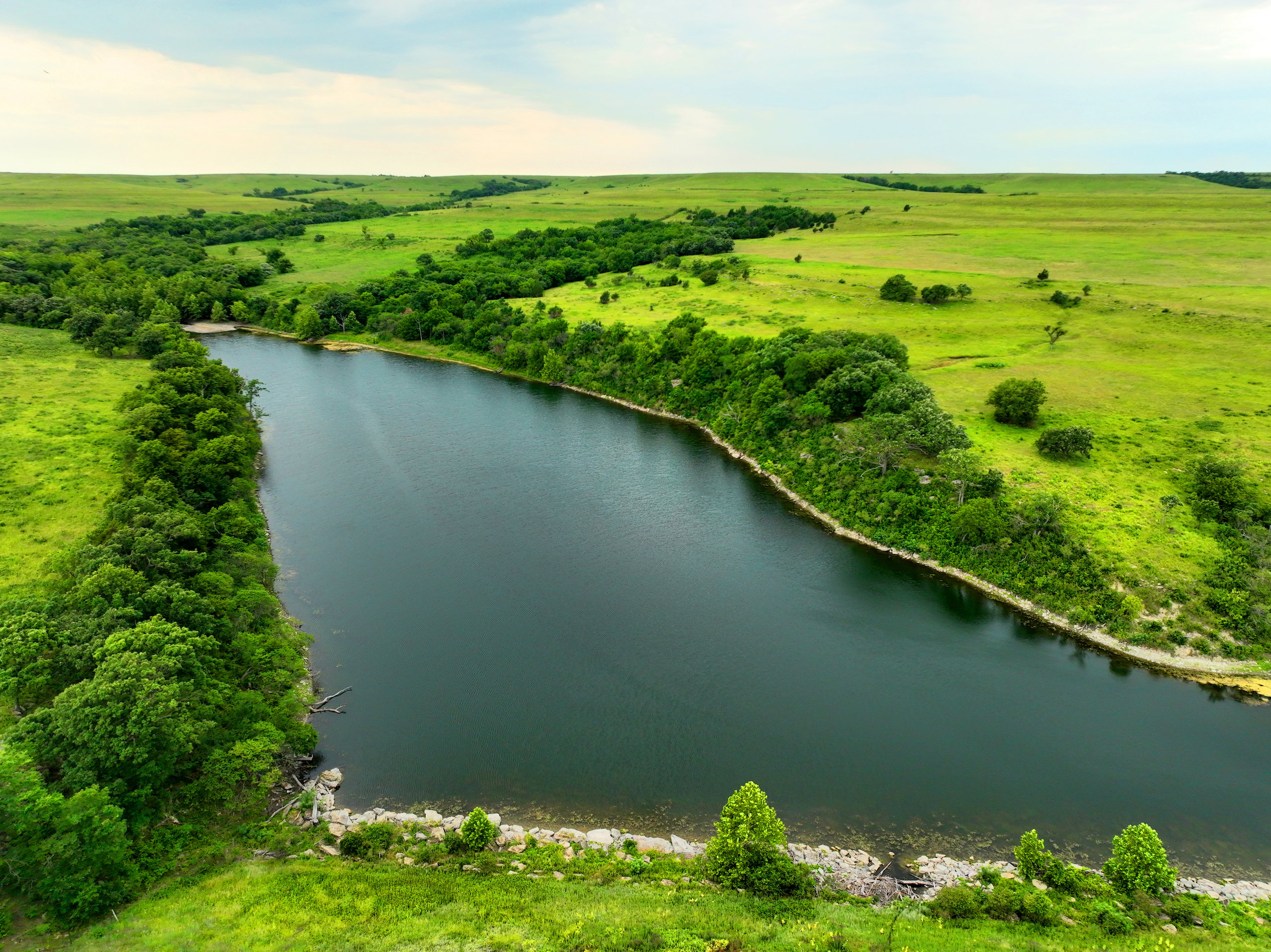 There are not too many farms on the open market that will be able to compete with this one when it comes to recreation. This farm is located approximately 6 miles south of Alma, Kansas, on Hessdale Road in Wabaunsee County. If you’re an avid sportsman looking for a turn-key property, I’m not sure what more you could ask for. The east branch of mill creek winds through the entire property creating approximately one mile of creek frontage. Four separate crop fields surrounded with timber are situated throughout the farm; 2 of the crop fields are hidden plots located between the creek and the flint hills timber/pasture. This creates unreal setups when it comes to whitetails and turkeys. Three new Banks Blinds have been strategically placed in these isolated plots making for some of the best Kansas hunting you’ll find in the eastern portion of the state. Tree stands are also scattered throughout the timber draws and creek banks if you're more of a stand guy. Located on the southwest portion of this tract is a stunning 9-acre lake with rock banks and crystal-clear water. This lake is loaded with fish; bass and catfish are the dominant species. Approximately 160-acres of cropland exist, usually planted to corn or soybeans. Currently, 40 acres of corn is planted while the balance is planted to soybeans. A cash rental agreement between the landowner and the tenant is in place on the cropland; no grazing lease exists. While turkey numbers throughout Kansas are down, this property seems to have an abundance of turkeys. Several toms are calling this place home, roosting in the mature oak trees and strutting in the isolated crop fields. Whitetails are a staple; there is definitely a chance to harvest a trophy whitetail year after year on this farm. There are two separate clover food plots located in different portions of the farm. This farm literally has it all: timber, creek, lake, cropland, food plots, and blinds. Call us today!