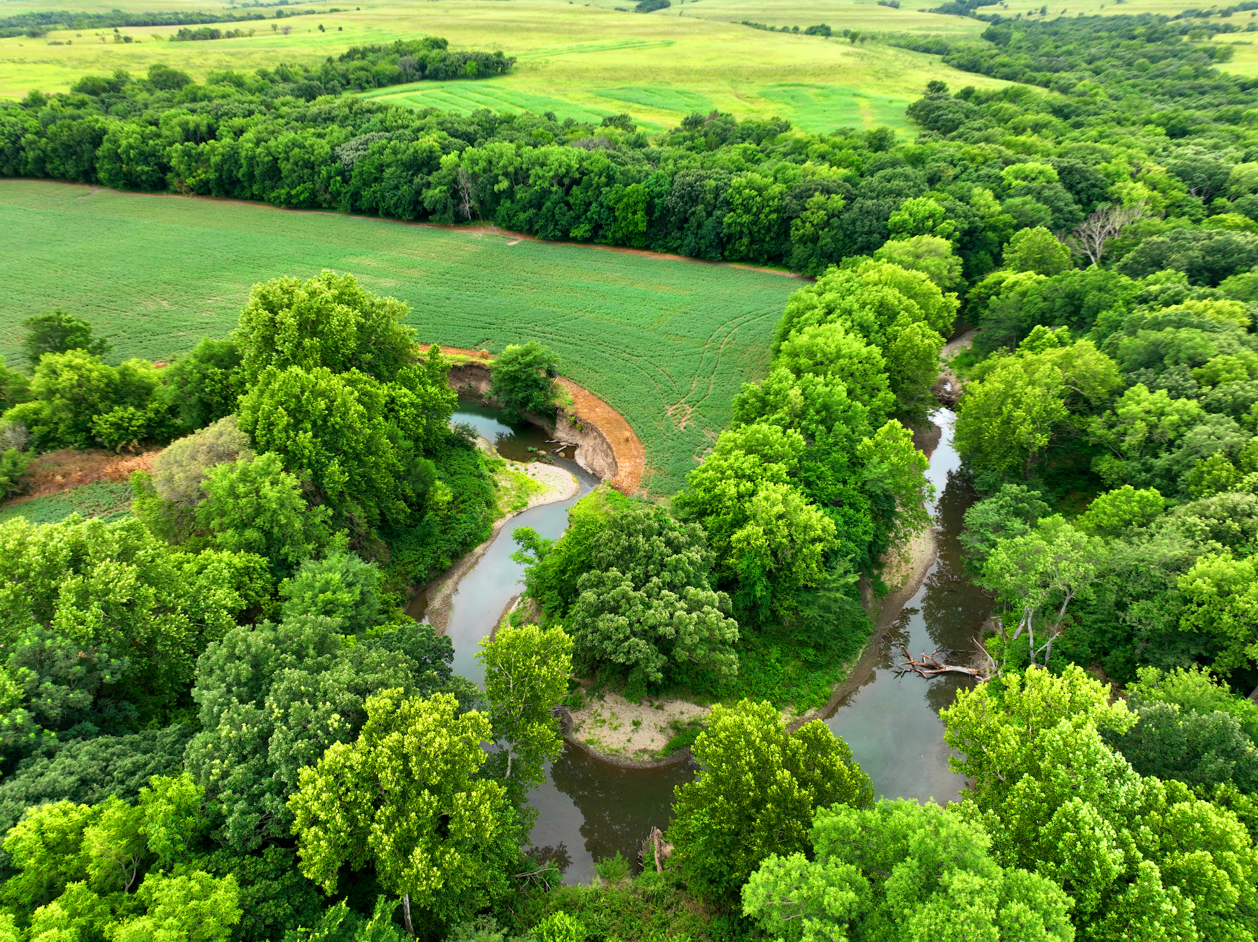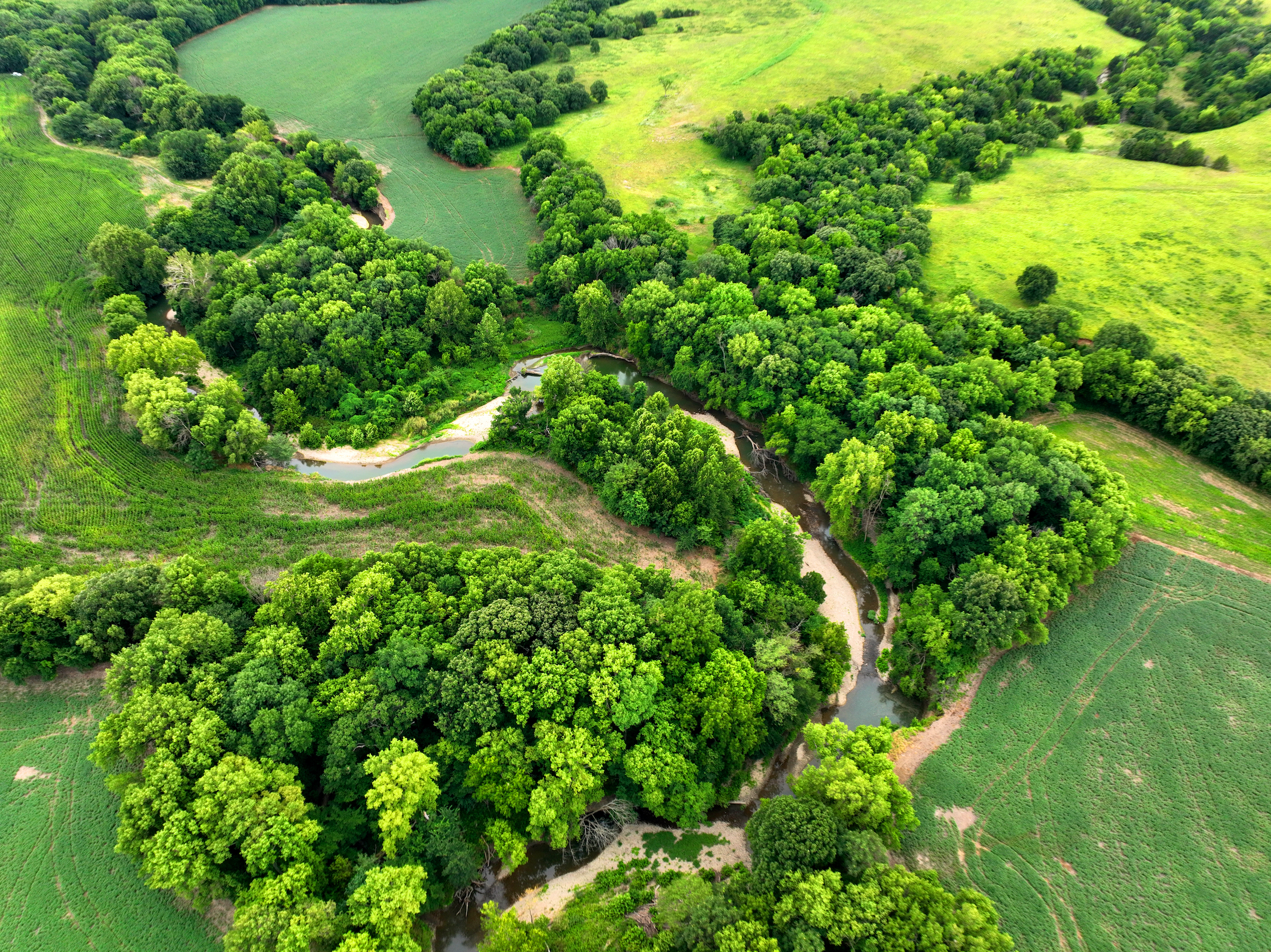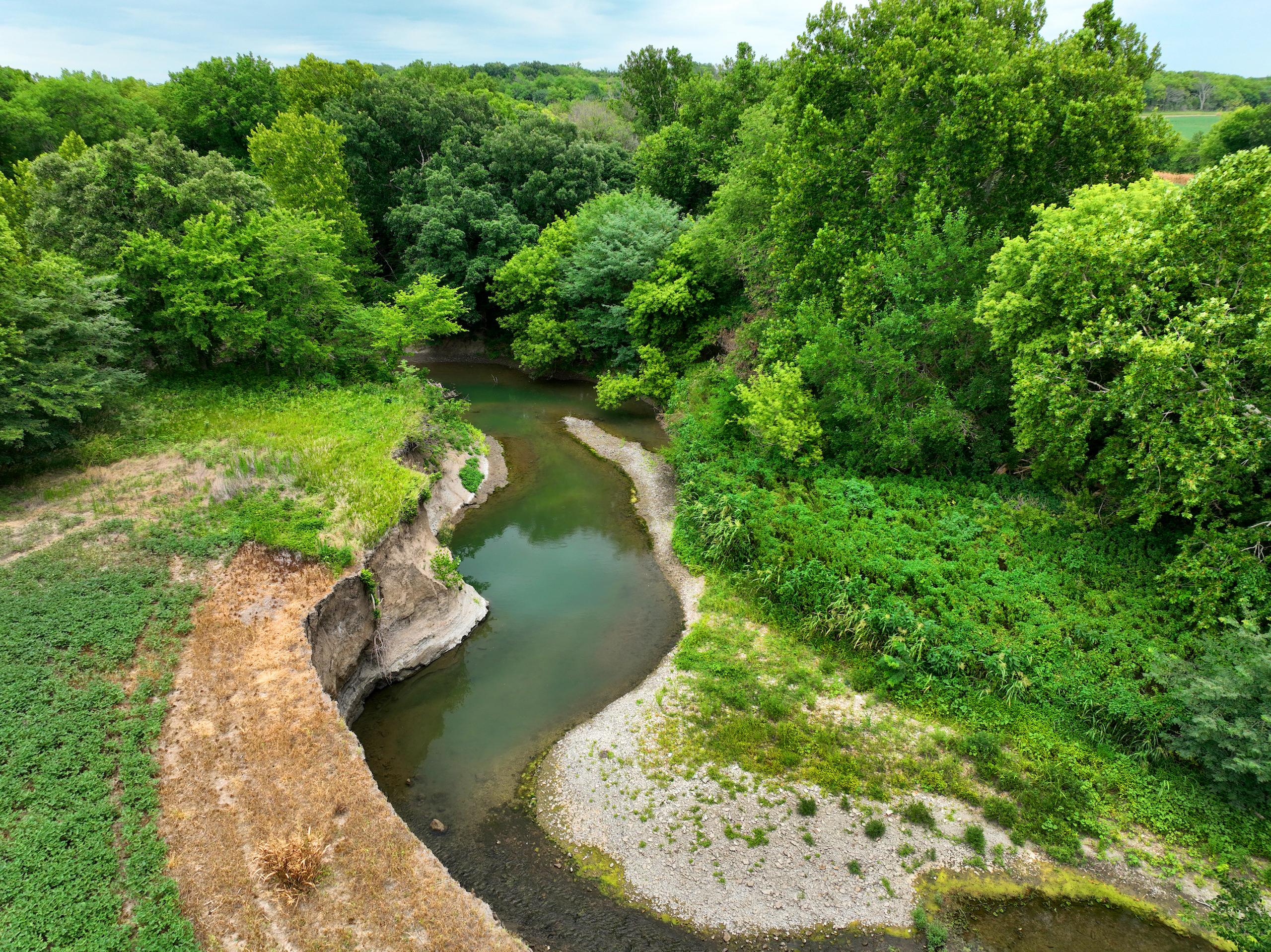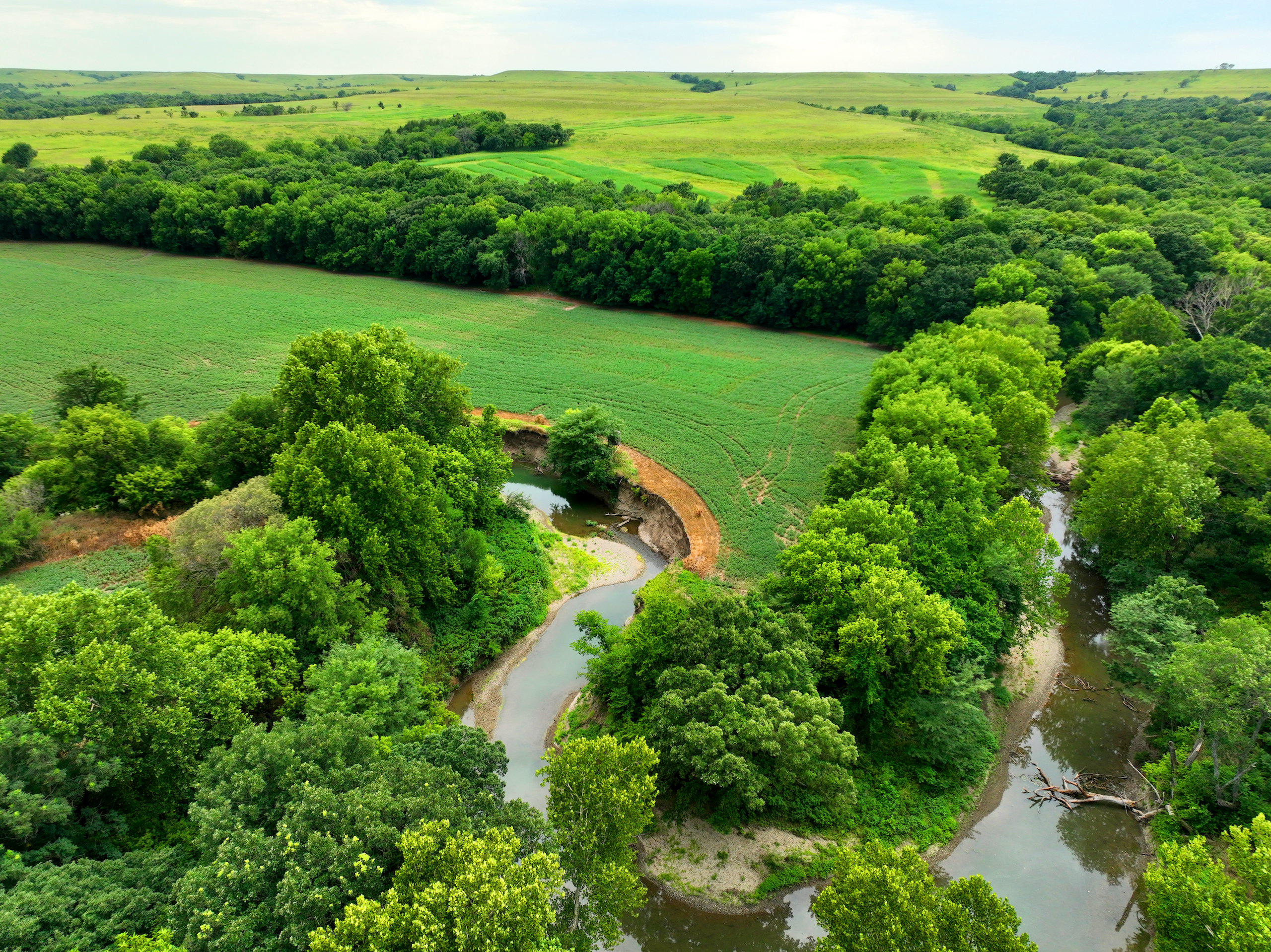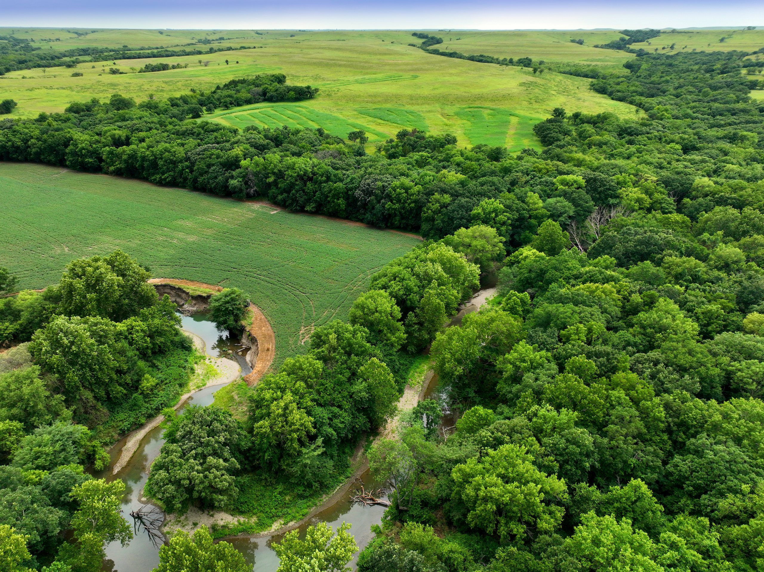 There are not too many farms on the open market that will be able to compete with this one when it comes to recreation. This farm is located approximately 6 miles south of Alma, Kansas, on Hessdale Road in Wabaunsee County. If you’re an avid sportsman looking for a turn-key property, I’m not sure what more you could ask for. The east branch of mill creek winds through the entire property creating approximately one mile of creek frontage. Four separate crop fields surrounded with timber are situated throughout the farm; 2 of the crop fields are hidden plots located between the creek and the flint hills timber/pasture. This creates unreal setups when it comes to whitetails and turkeys. Three new Banks Blinds have been strategically placed in these isolated plots making for some of the best Kansas hunting you’ll find in the eastern portion of the state. Tree stands are also scattered throughout the timber draws and creek banks if you're more of a stand guy. Located on the southwest portion of this tract is a stunning 9-acre lake with rock banks and crystal-clear water. This lake is loaded with fish; bass and catfish are the dominant species. Approximately 160-acres of cropland exist, usually planted to corn or soybeans. Currently, 40 acres of corn is planted while the balance is planted to soybeans. A cash rental agreement between the landowner and the tenant is in place on the cropland; no grazing lease exists. While turkey numbers throughout Kansas are down, this property seems to have an abundance of turkeys. Several toms are calling this place home, roosting in the mature oak trees and strutting in the isolated crop fields. Whitetails are a staple; there is definitely a chance to harvest a trophy whitetail year after year on this farm. There are two separate clover food plots located in different portions of the farm. This farm literally has it all: timber, creek, lake, cropland, food plots, and blinds. Call us today!