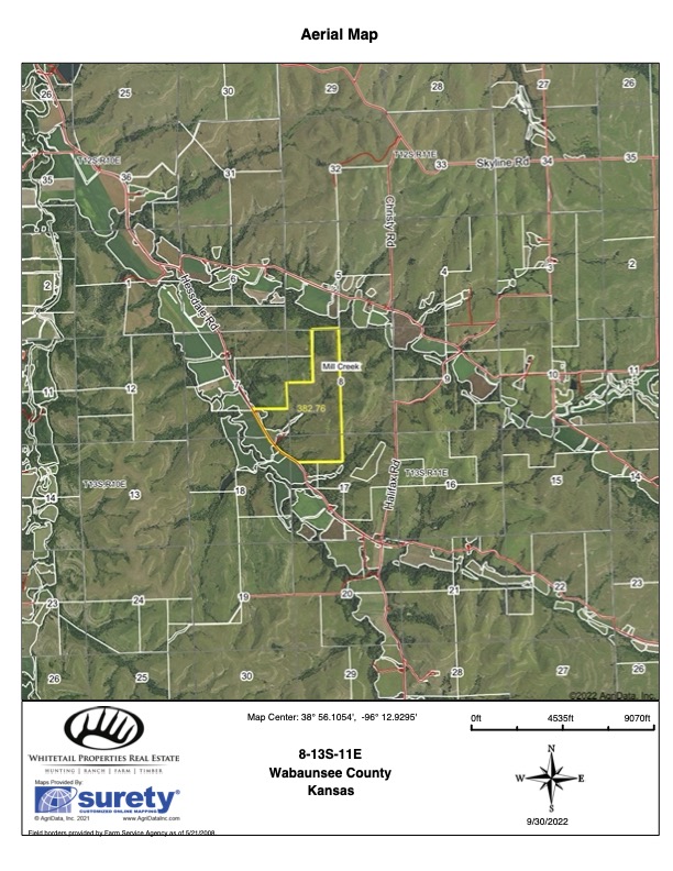 How many times have you found the perfect hunting property but come to find out the nearest motel or place to stay is 30 miles or more? Here is the opportunity to own your very own hunting ranch with a like-new 5-star home situated on the edge of the property. Located approximately 6 miles south of Alma, Kansas, along the east side of Hessdale Road, you will find this once-in-a-lifetime recreational property. This property offers some of the very best whitetail and turkey hunting in the entire county. Several improvements such as food plots, new banks blinds, feeders, gated entrances, and very tall planted switch grass put this property over the top when it comes to hunting in comfort and proven deer and turkey numbers. The beautiful country home is equipped with 3 bedrooms and 2 baths with custom hardwood flooring, pinewood ceilings, and custom wooden doors and frames. A fully screen-enclosed deck with composite floor and hardwood ceilings creates one of the most breathtaking views you’ll find in Kansas. The house is move-in ready with several attributes, including brand new appliances, full heat and AC, four new beds, a washer and dryer, and new furniture throughout. When it comes to hunting trophy-caliber deer, you will not find another farm set up for success like this one. A 5-acre food plot sits smack dab in the center of the property, isolated in the middle of timbered canyons with several fingers feeding this area. Four acres are currently planted to a milo crop, with the north 1-acre consisting of a clover plot with a feeder and new bank blind positioned on the side hill. Three new banks blinds are strategically set up throughout, creating comfort and scent control while hunting. The very north end of this property is literally one of the most scenic views you will find in the entire state of Kansas. There is a huge elevation change, with the peak overlooking several acres of oak tree groves and thickets. A banks blind is positioned on top of this hill, making for a picture-perfect Kansas whitetail sit. Notice some of the trail cam photos from the last couple of weeks are from this area. Several acres of hay meadow exist on the upper end. This hay ground can easily be converted to farm ground generating income. Approximately 300 acres can also be grazed, considering this tract is fully fenced. New fencing has been constructed along Hessdale Road up to the home yard area. If you have livestock, this will make a great area for holding animals throughout the year. A water well, septic system, and power exist. Several barns, an overhead shed, and brand new gated entrances are all in place. I’m not really sure if a better setup exists if you are an avid hunter looking for a property fully set up with a fancy house. The convenience is just unreal, in my opinion. I strongly advise you to take the trip out to get a first look at this high-caliber farm before it sells this fall. Call one of the listing agents, Mitch Keeley or Adam Hann, today for the full tour of the place!