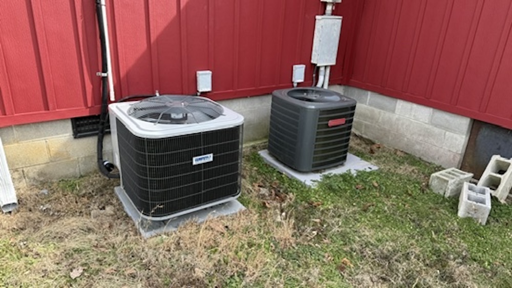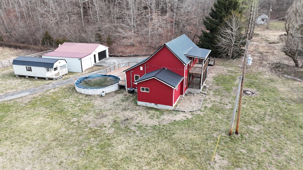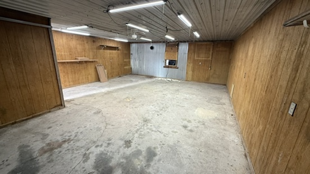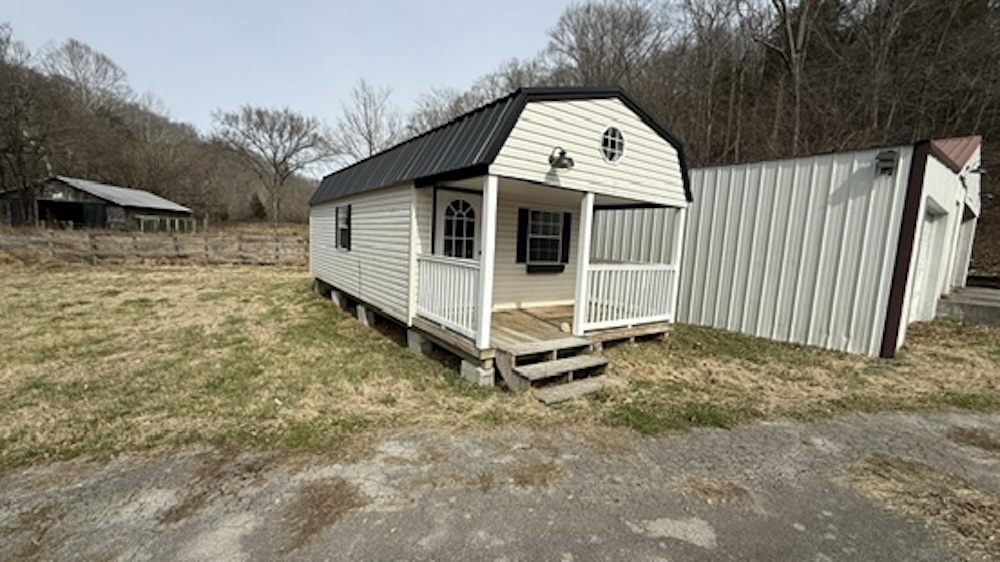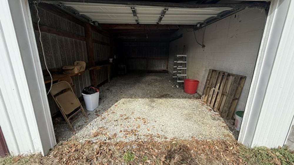 Additional improvements include a detached garage equipped with a window unit air conditioner. A separate detached building with electric service is present and may be suitable for use as a small guest space, office, or hobby area.