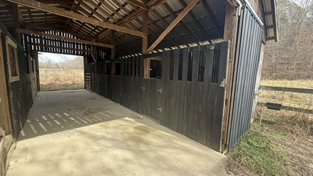 - Horse barn with 5 stalls, tack room, electric, and water