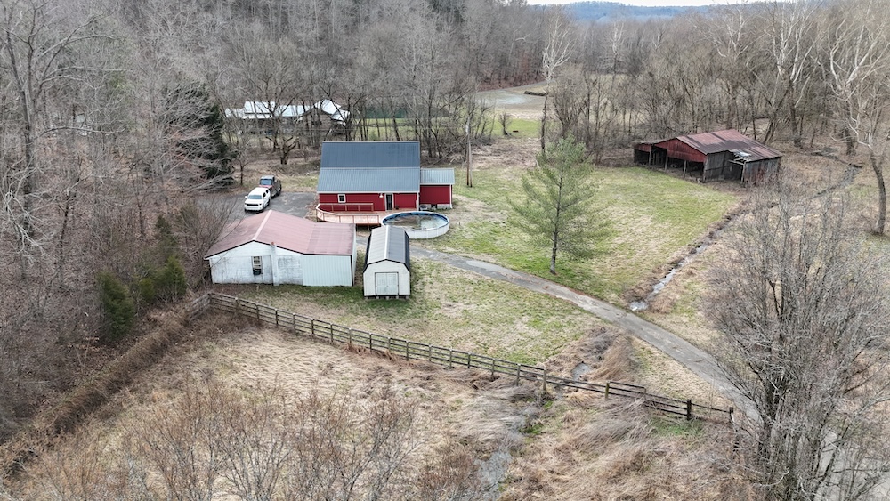 Located at 439 Sprout Springs Road in Knifley, Kentucky, this 106± acre tract in Adair County offers a combination of residential improvements, agricultural infrastructure, timber, and recreational land. The property includes a fully updated farmhouse, multiple barns, water features, crop ground, and wooded acreage in a rural setting.