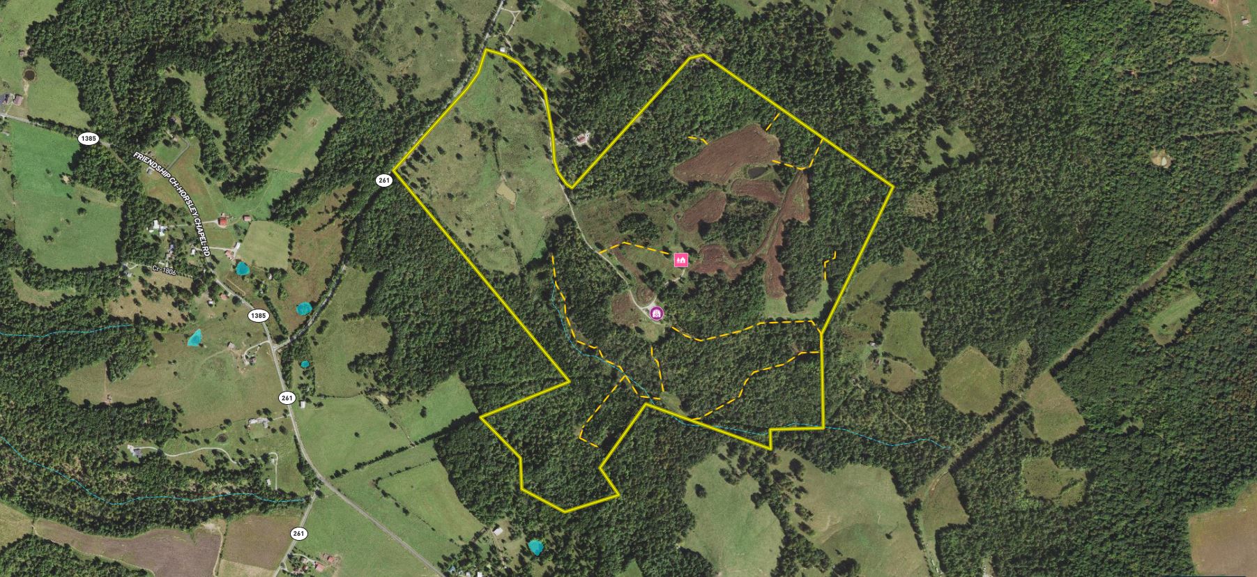 - Ample water sources, by way of multiple ponds and creeks