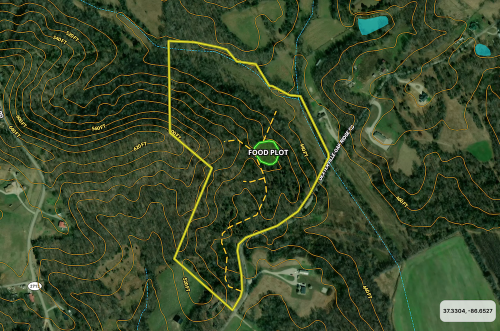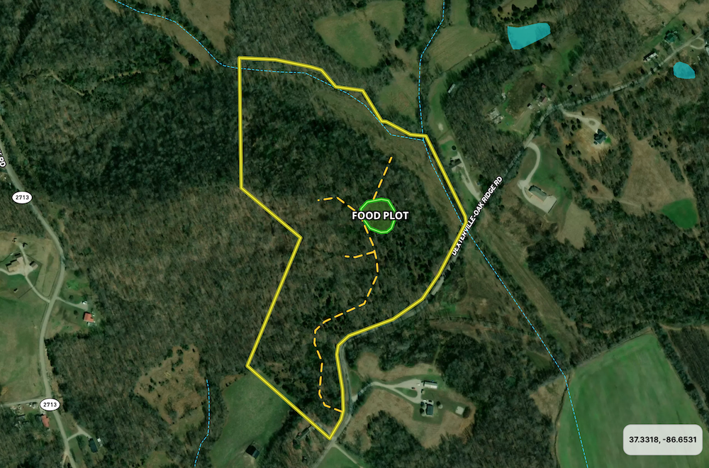 - Food plot area measuring approx. ½ acre