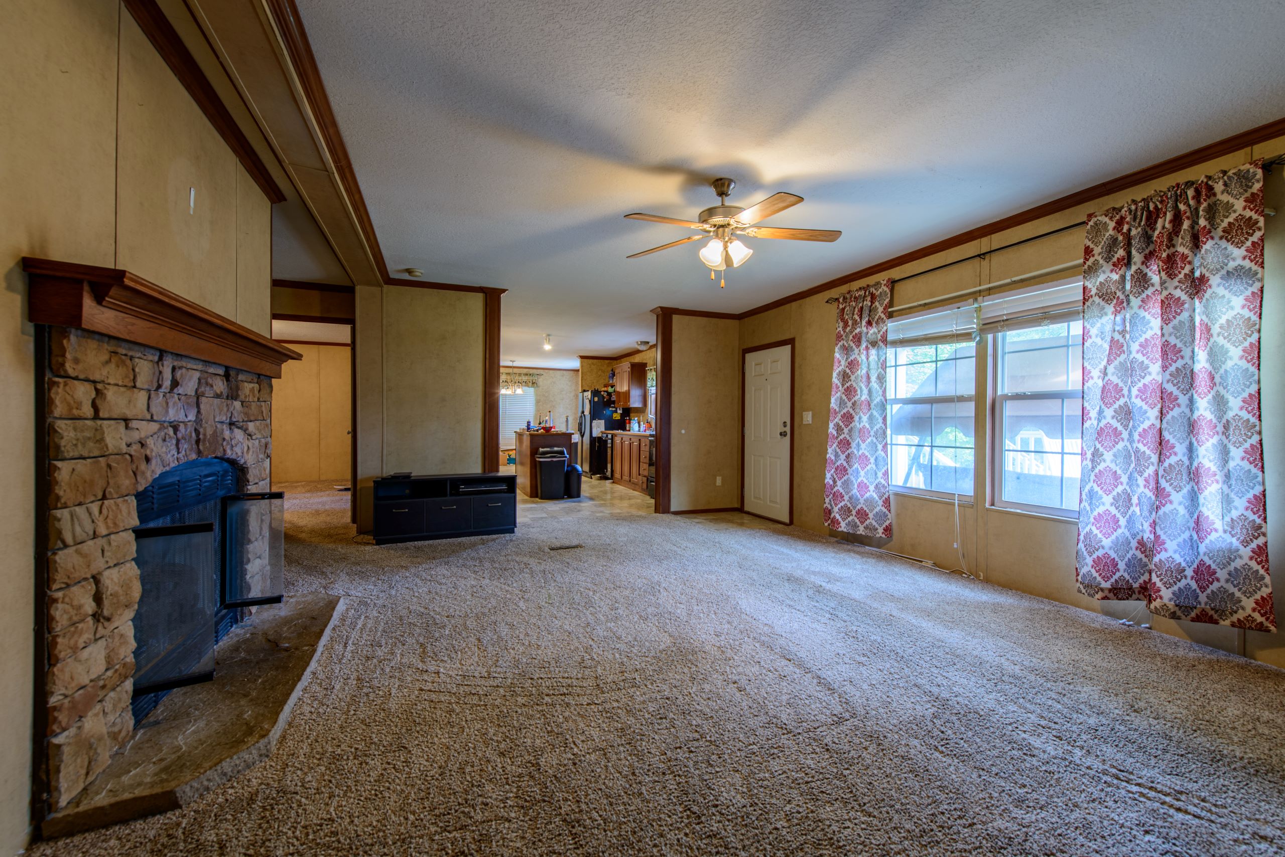 - Spacious kitchen and living area with fireplace