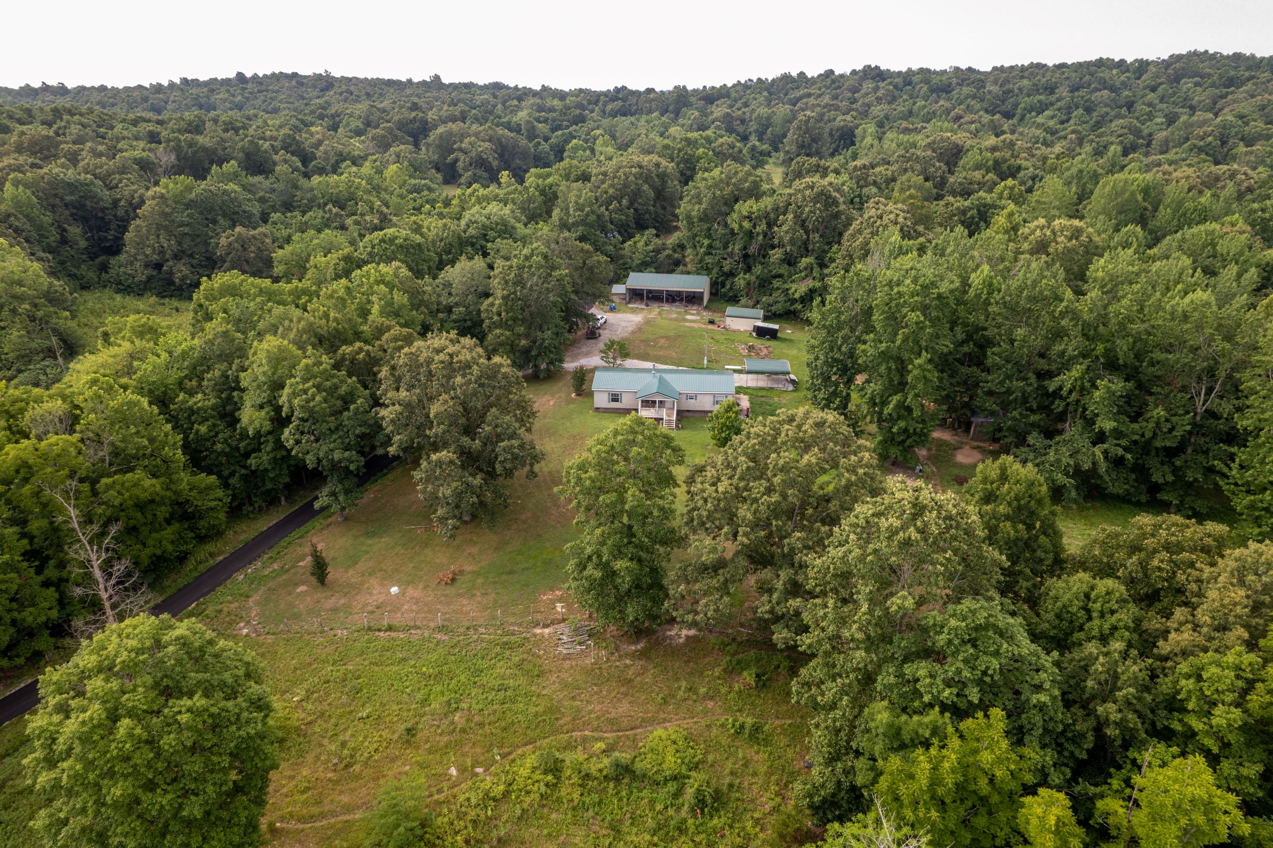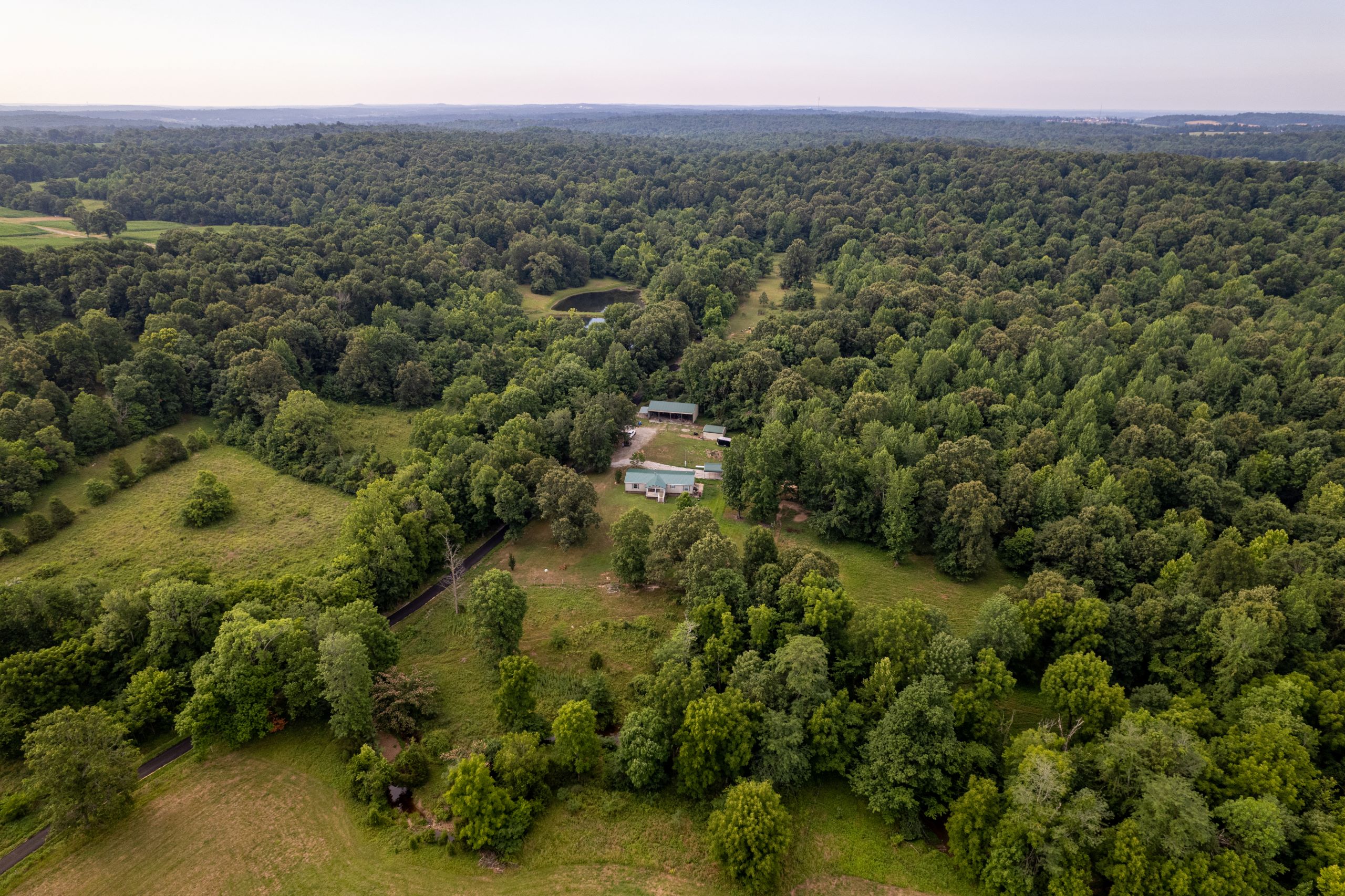 Diverse hunting and livestock tract with home and outbuildings! This tract has the right blend of habitat types for deer and turkey hunting, the potential for livestock, and the bonus of a beautiful home! The home sits in a quiet rural area and has 1792 square feet of living space with three bedrooms and two bathrooms. It has a spacious kitchen and living area with a fireplace. The large master suite has an office nook and spacious bathroom. A covered front porch overlooks a manicured 1.5+/- acre yard with a gravel drive, parking area and plenty of shade trees. A 50’x30’ equipment shed, metal yard barn, and storage shed provide ample room for equipment, tools and gear. The property has a diverse blend of habitat types and topography. There are 30+/- acres of open ground spread throughout. The largest field has fencing and cross-fencing and provides opportunities for cattle grazing. Several other smaller fields are scattered throughout, providing edge cover and ideal locations for food plots. A rock bottom creek flows through the farm and is a major travel corridor for wildlife in the area. The southern end of the farm has timbered ridges and drains with softwoods and mast-producing hardwoods. Several areas of dense understory provide ideal bedding and security cover for wildlife. An established trail system runs throughout the timber and is wide enough for a tractor and implements. If you’re looking for a diverse hunting and livestock tract with a home and outbuildings, give us a call today and schedule your private tour!