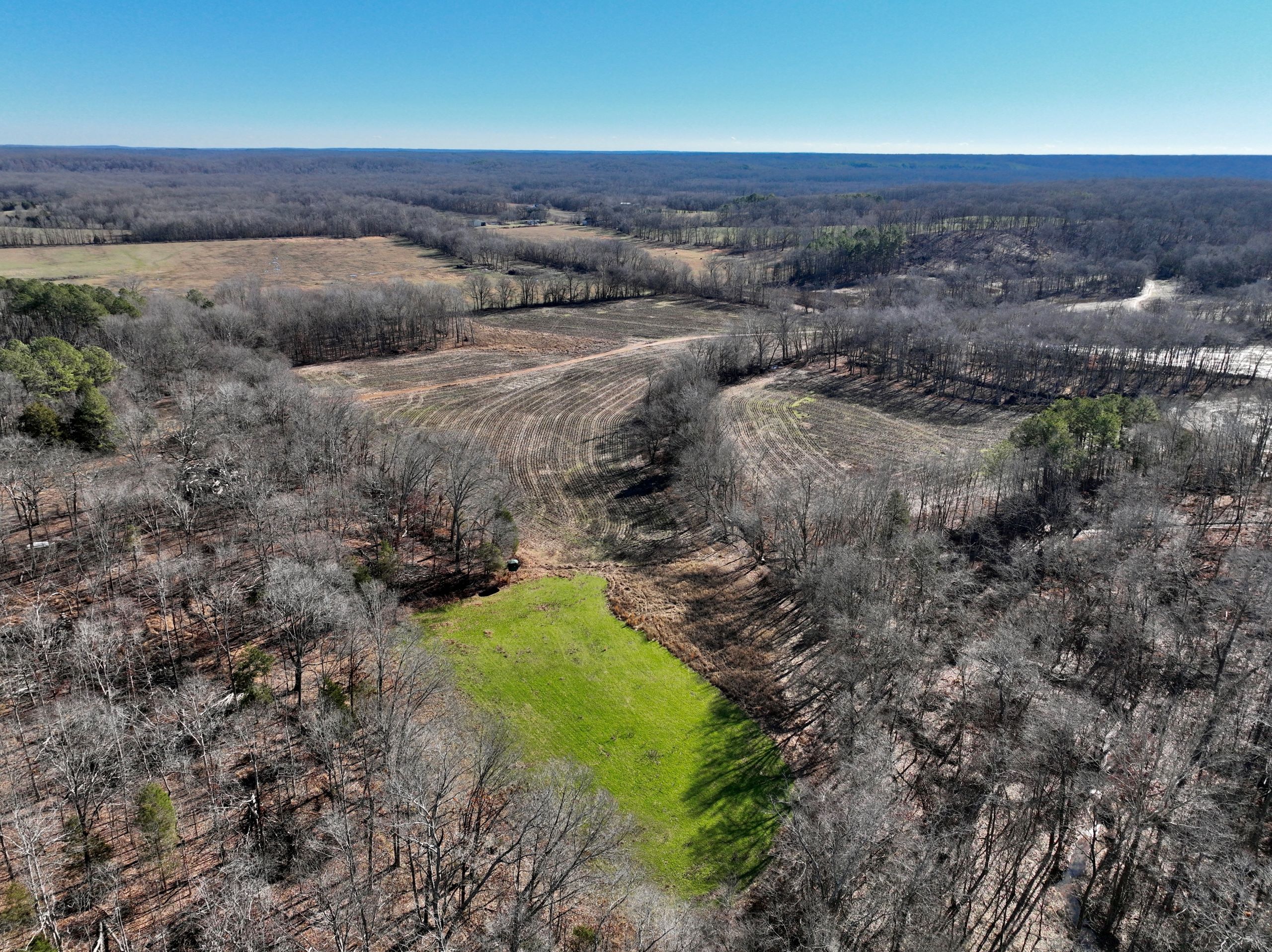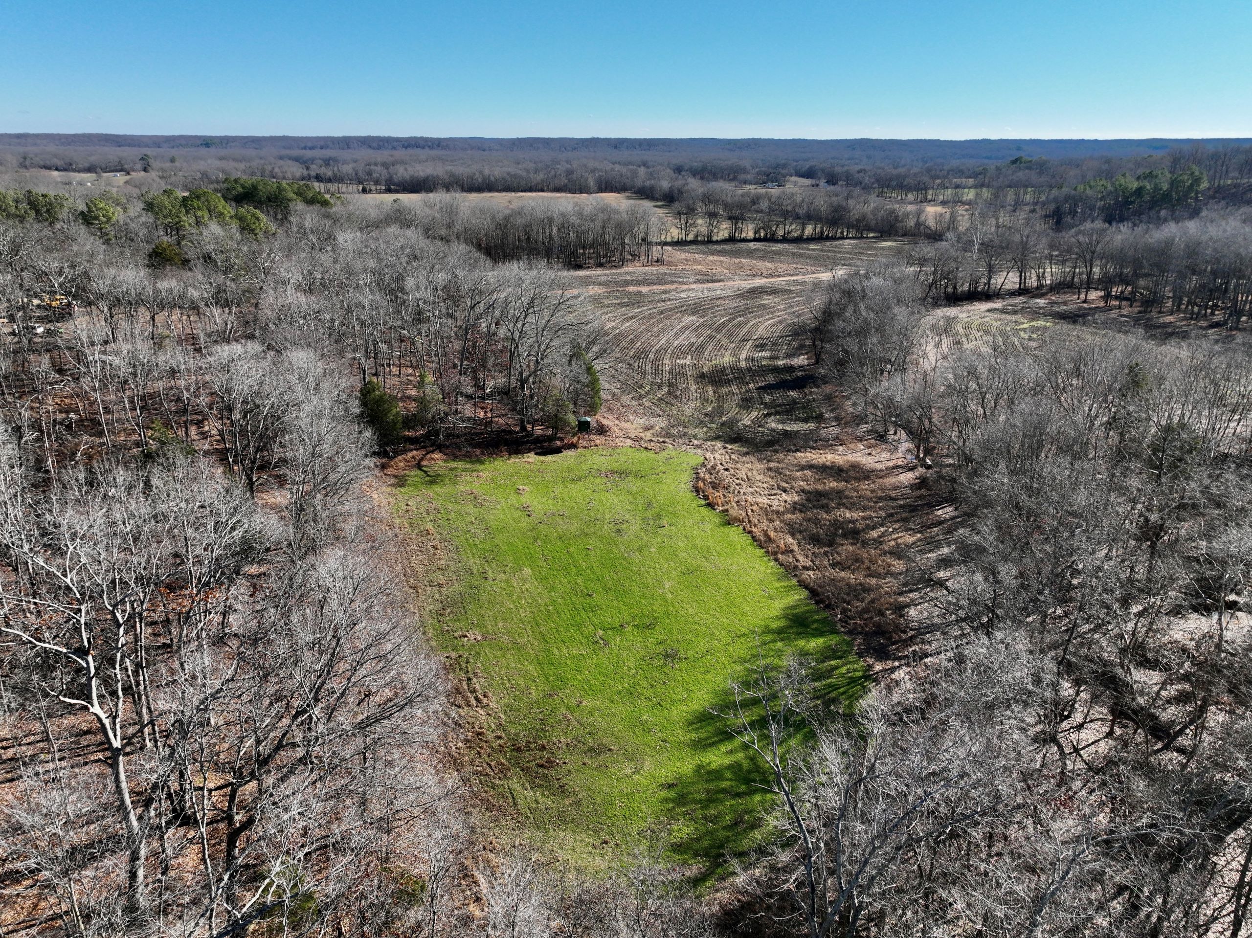 This diverse hunting tract is a true gem, offering an ideal blend of habitat types for deer and turkey hunting. With over 70 tillable acres, this property also generates significant income, having produced $11,500 in 2022. The property features miles of field edge, providing numerous opportunities for hunting, as well as several established food plots and multiple blinds throughout the property. An established access road and creek crossings for farm equipment make navigating the property easy and convenient. Lax Creek runs throughout the property and is a major travel corridor for wildlife in the area, offering hunters even more opportunities for success. The property also boasts numerous funnels and pinch points, timbered ridges, and creek bottoms, all of which create the perfect habitat for game. Softwoods and mast-producing hardwoods, as well as areas of dense security and bedding cover, provide an ideal environment for wildlife to thrive. The property also features an ideal building site, perfect for a hunting cabin or permanent residence. For those who enjoy fishing and boating, the property is conveniently located near Kentucky Lake, and is just minutes from the nearest boat ramp. The property also offers 1,600 feet of road frontage, with a gated entry and an established gravel drive. This is the perfect property for hunting enthusiasts and anyone seeking a blend of income-generating farmland and recreational opportunities. Don't miss out on the chance to own this unique and beautiful property. Call Land Specialist Dusty Clark today to schedule your showing.