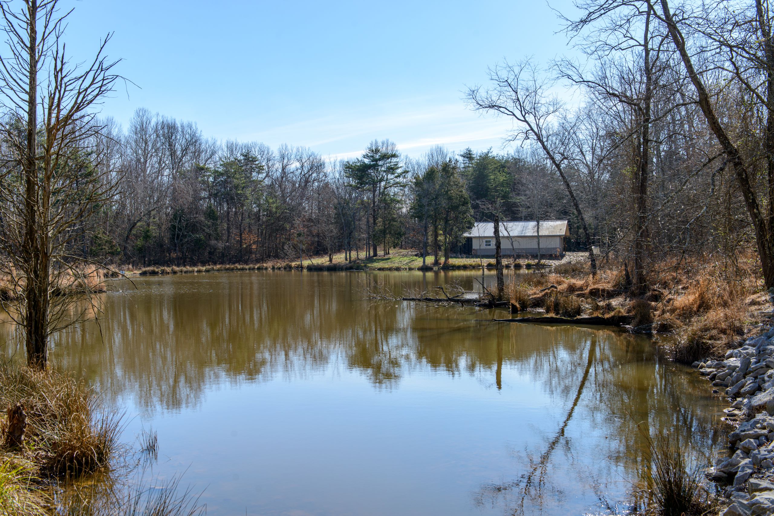 - Lodge overlooks pond