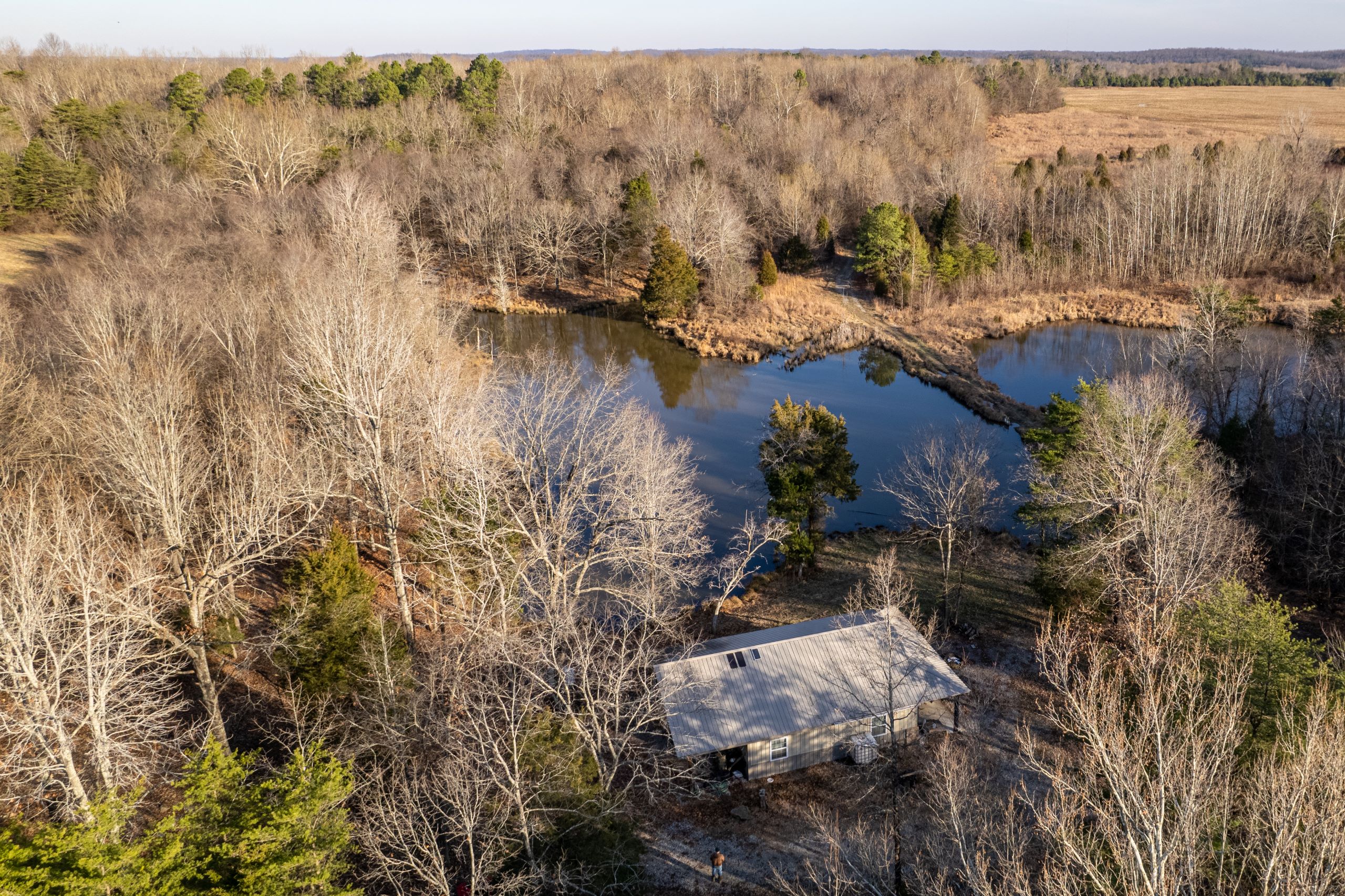 Mostly timber hunting tract with lodging! The property has a diverse blend of habitat types and topography with improvements geared towards big bucks! The lodge has 1,050 S.F. of living space with one bedroom and one bathroom. It has a spacious living, kitchen and dining area with plenty of room for family and friends. The covered porch has scenic views overlooking a pond with a large yard area. An attached garage provides plenty of storage space for equipment and gear. The property has approximately 5+/- acres of open ground for food plots with an established road and trail system throughout. The timber is a blend of softwoods and mast-producing hardwoods with areas of dense security and bedding cover. The topography and habitat features have created numerous funnels and pinch points with several ideal ambush sites. A rock bottom creek flows through the property and is a travel corridor for wildlife. It has minimal road frontage along the northern boundary with a gated entry. If you’re looking for a diverse hunting tract with lodging, give us a call today and schedule your private tour!