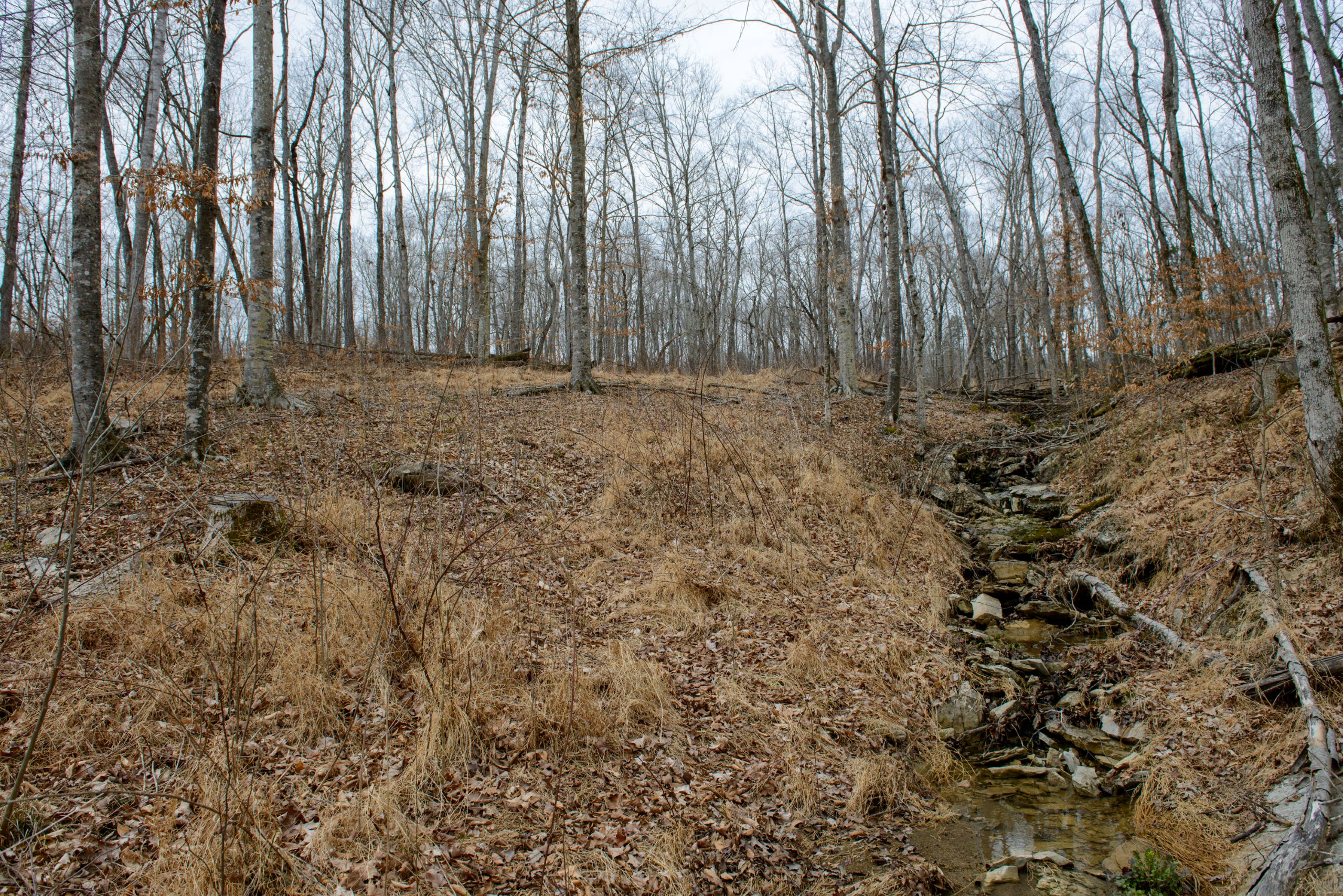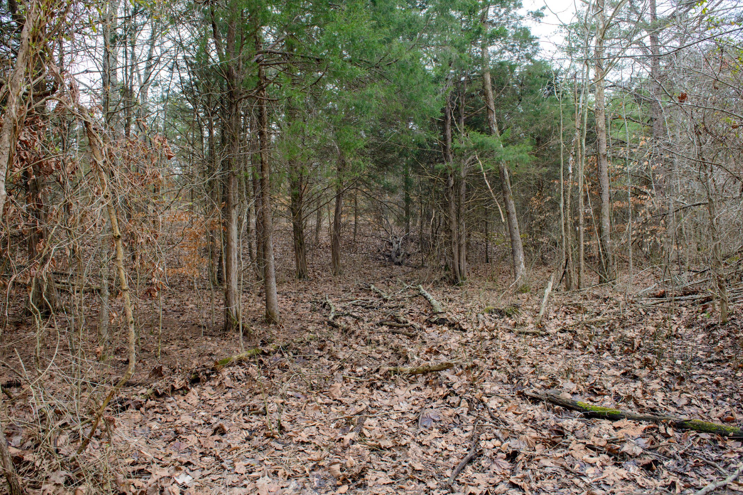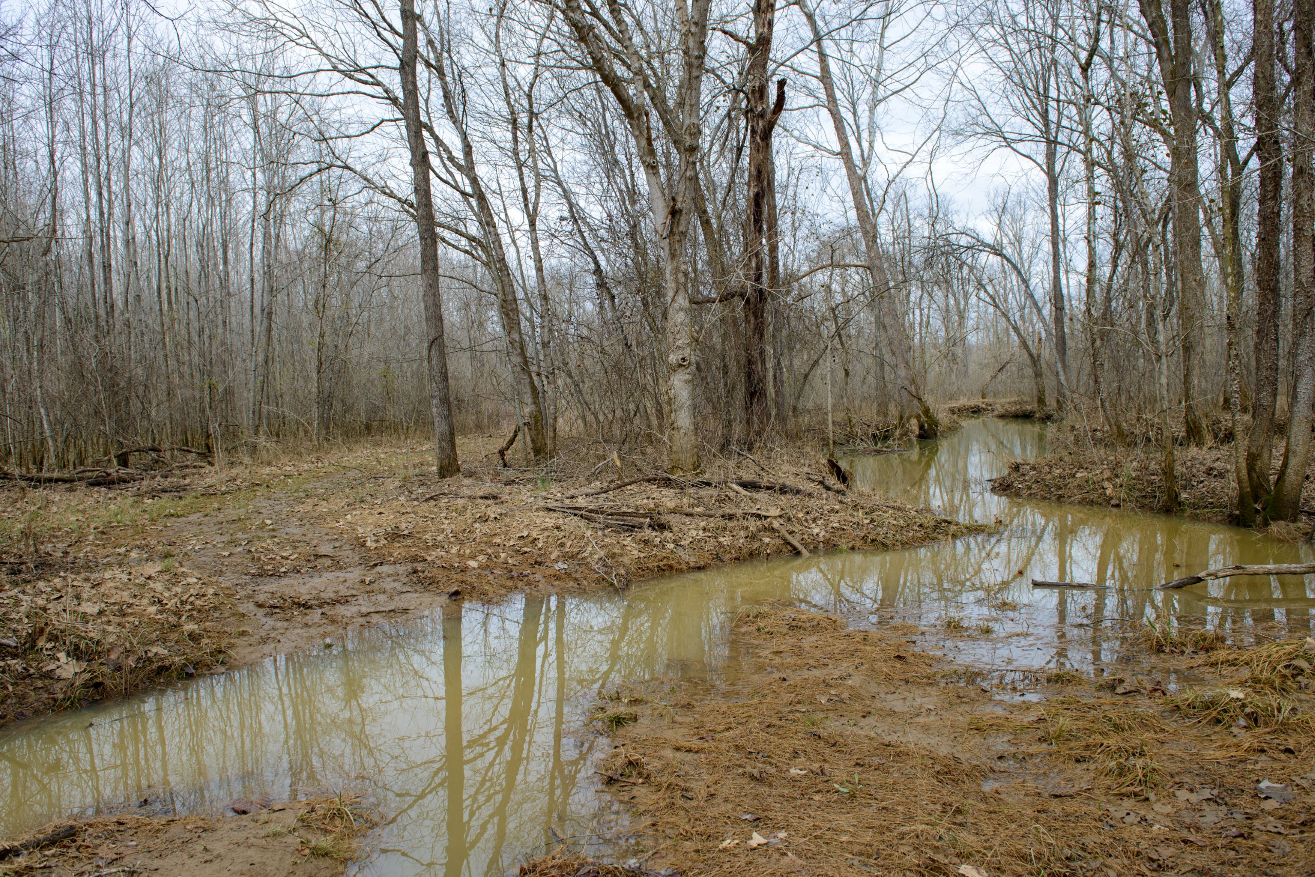 - A blend of low creek bottom and timbered ridges