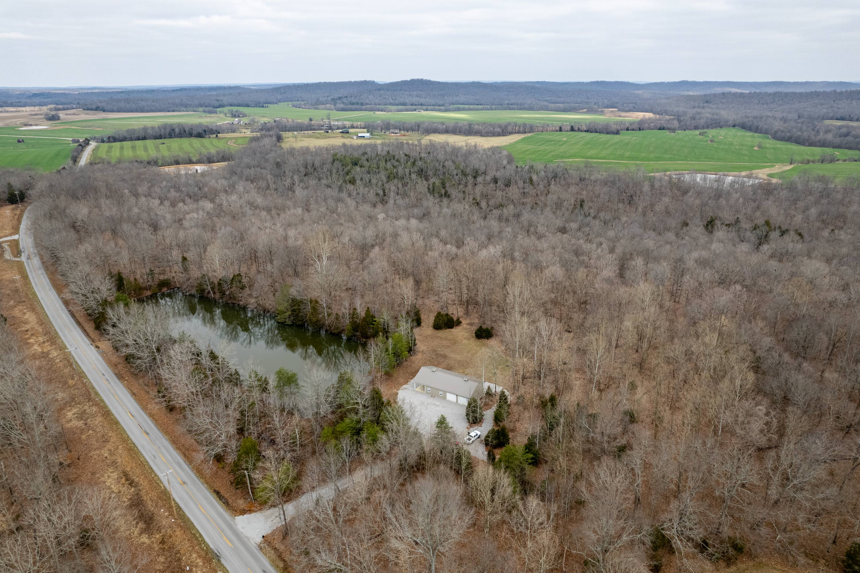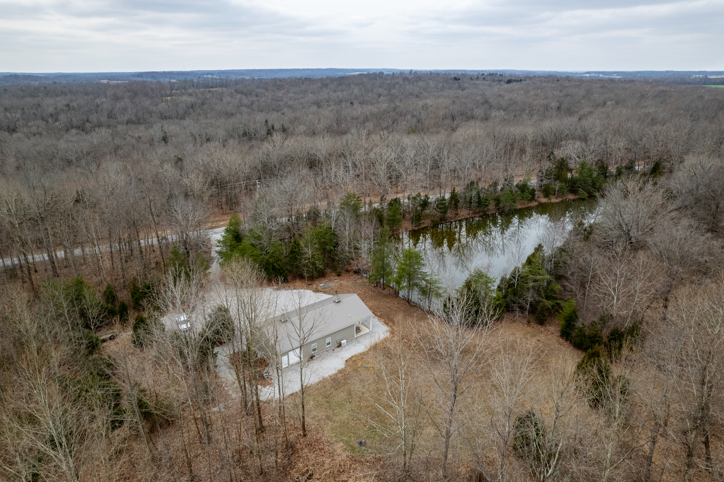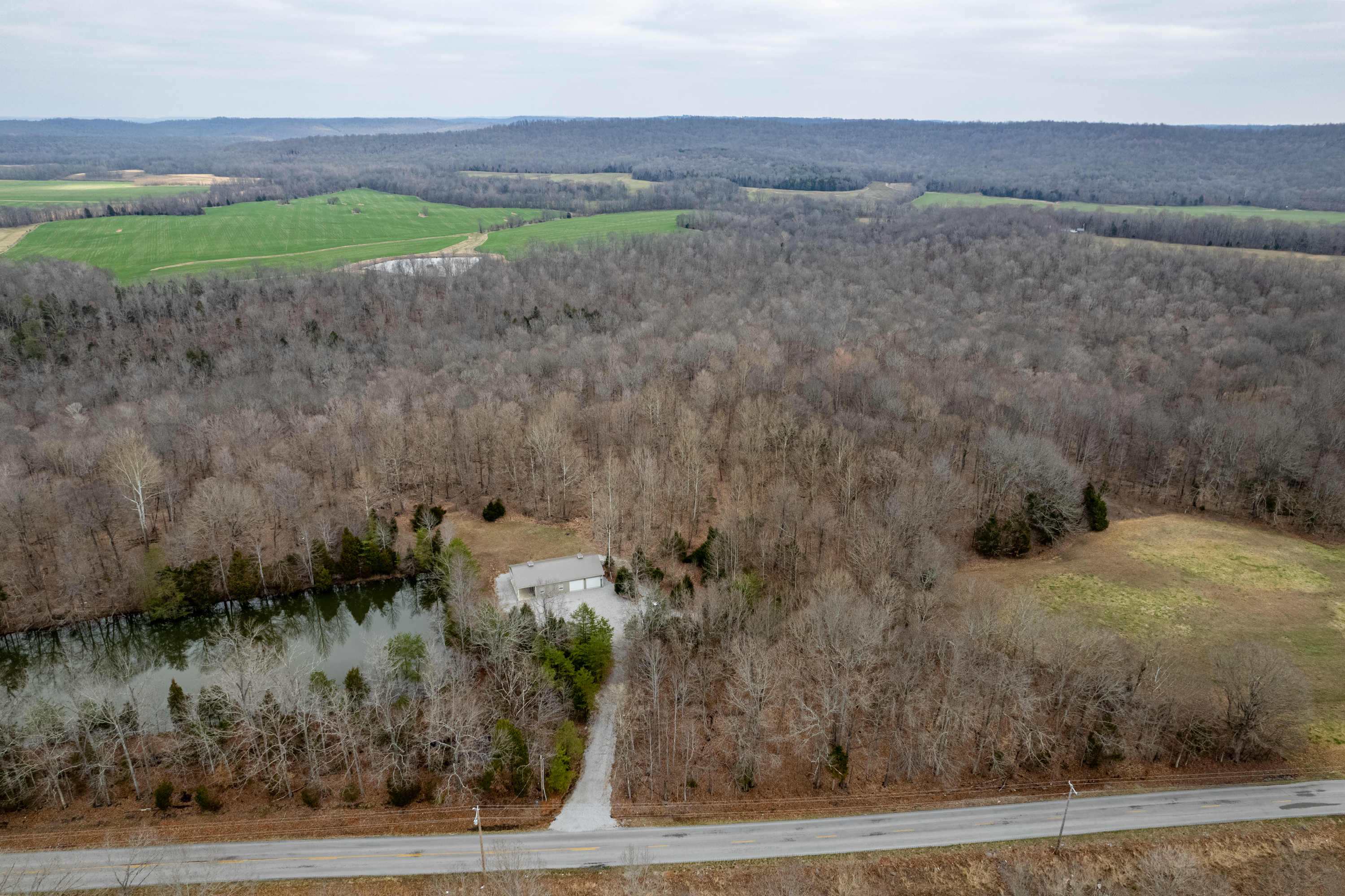 All timber hunting tract with lodging in a premier whitetail county! This property has a proven history of Big Bucks with the bonus of lodging! It has a 1,920 square foot lodge with two bedrooms and 1.5 bathrooms. There are 768 square feet of finished living space with 10’ ceilings, central AC/Heat, a spacious living area, a kitchen with maple cabinets and a laundry room. A covered porch provides an ideal place for morning coffee and plenty of room for entertaining friends. The garage has plenty of space for vehicles, equipment & gear and has three roll up garage doors. Surrounding the lodge is a large gravel parking area. A 1.5+/- acre pond sits next to the lodge and provides an ideal opportunity for fishing. The property has a blend of softwoods & mast-producing hardwoods laid over a rolling topography. There are several areas of dense security & bedding scattered throughout the timber. The property is a major travel corridor for wildlife in the area and has numerous funnels & pinch points throughout. An established trail system runs throughout the property and provides easy travel for farm work and quiet access to favored stand sites. If you’re looking for an all timber hunting tract with lodging in a premier whitetail county, give us a call today and schedule your private tour!