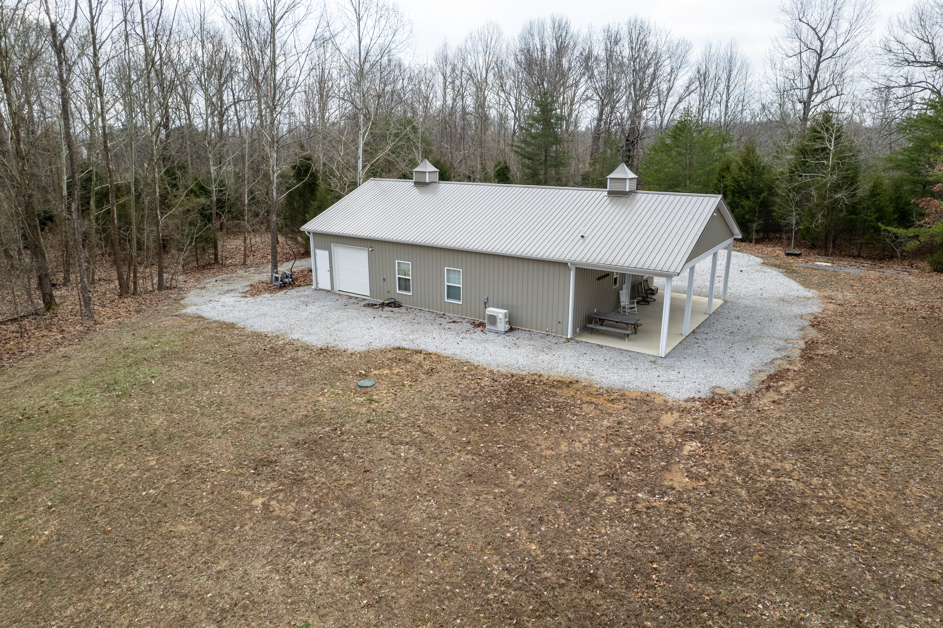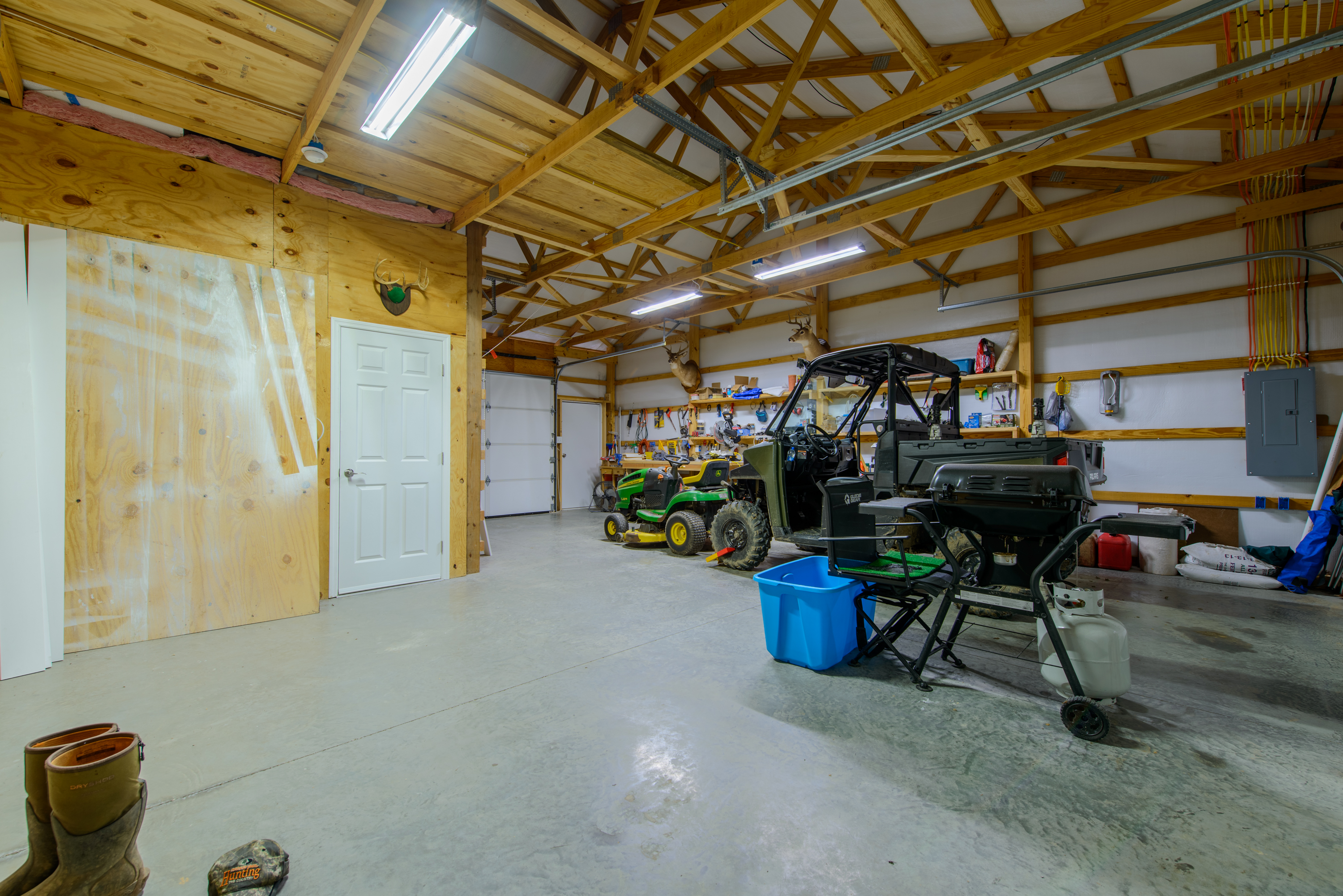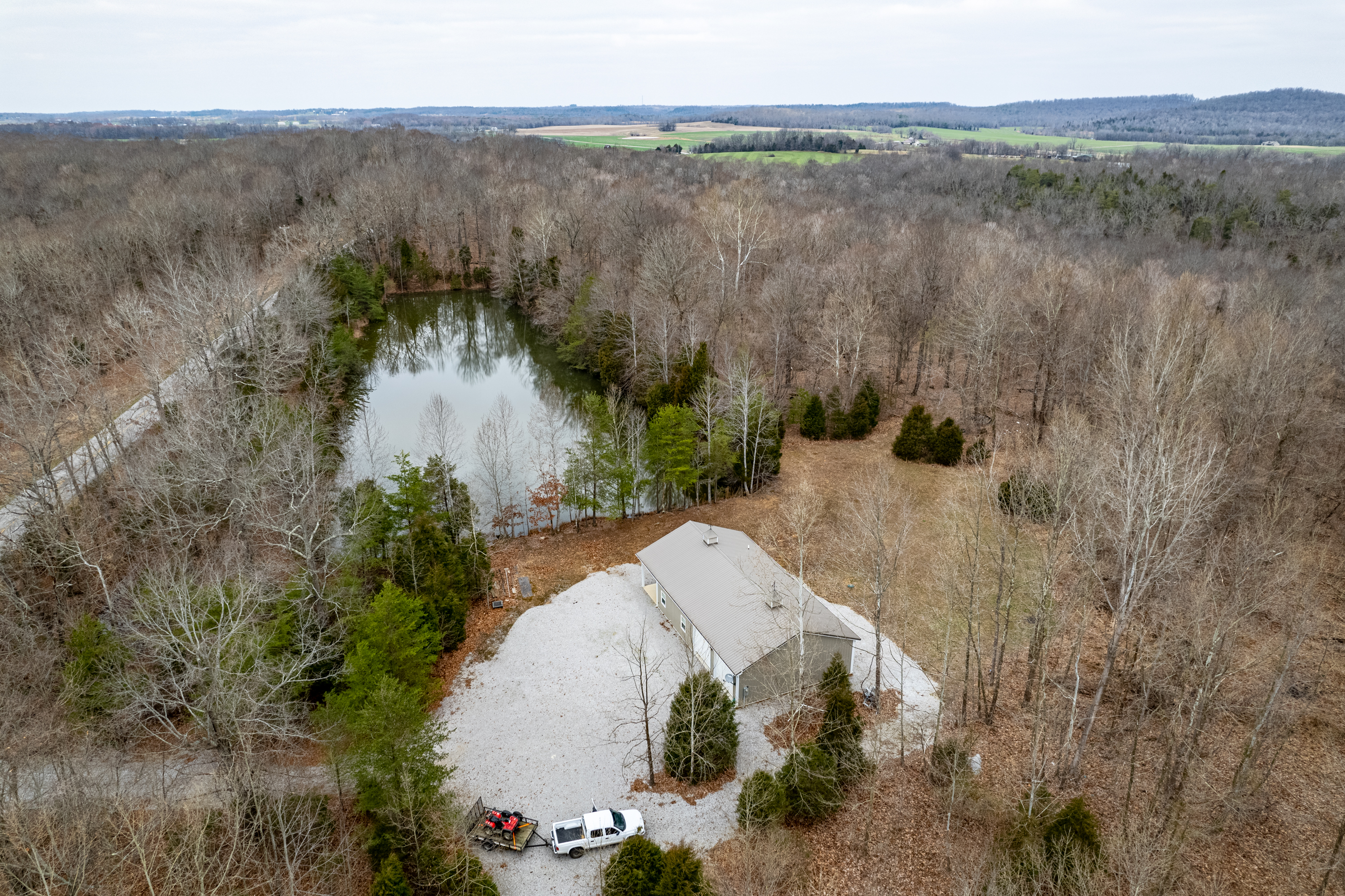 All timber hunting tract with lodging in a premier whitetail county! This property has a proven history of Big Bucks with the bonus of lodging! It has a 1,920 square foot lodge with two bedrooms and 1.5 bathrooms. There are 768 square feet of finished living space with 10’ ceilings, central AC/Heat, a spacious living area, a kitchen with maple cabinets and a laundry room. A covered porch provides an ideal place for morning coffee and plenty of room for entertaining friends. The garage has plenty of space for vehicles, equipment & gear and has three roll up garage doors. Surrounding the lodge is a large gravel parking area. A 1.5+/- acre pond sits next to the lodge and provides an ideal opportunity for fishing. The property has a blend of softwoods & mast-producing hardwoods laid over a rolling topography. There are several areas of dense security & bedding scattered throughout the timber. The property is a major travel corridor for wildlife in the area and has numerous funnels & pinch points throughout. An established trail system runs throughout the property and provides easy travel for farm work and quiet access to favored stand sites. If you’re looking for an all timber hunting tract with lodging in a premier whitetail county, give us a call today and schedule your private tour!