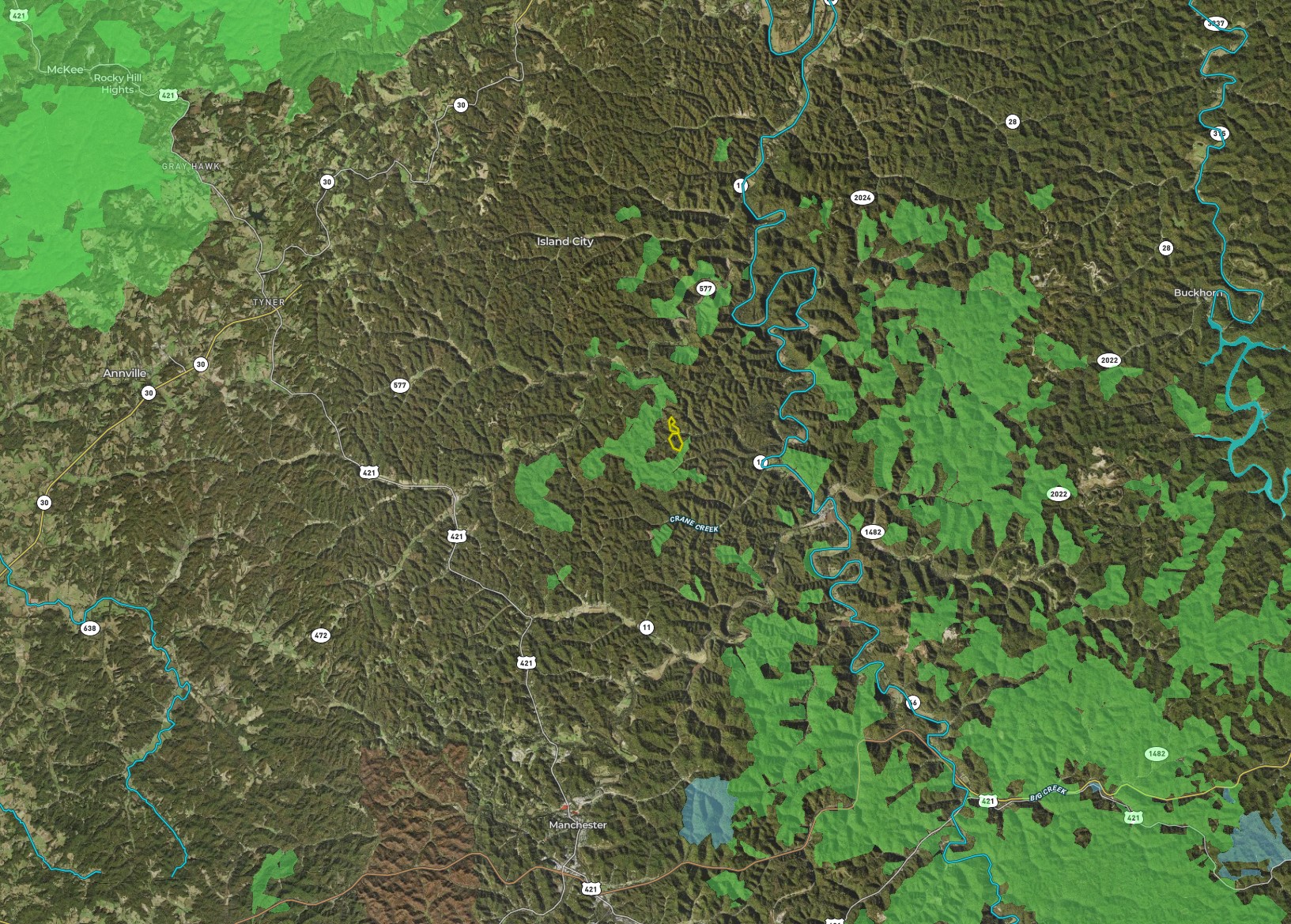 It is priced to sell! This beautiful tract of land, located just outside of Manchester, would make for a perfect recreational tract or great place for a home/cabin retreat in the East KY mountains! Bordering thousands of acres of Daniel Boone National Forest, this property has unlimited recreation and hunting opportunities written all over it! Not to mention, 1800ft of a year-round blue-line creek of Lower Teges Creek rushing through the property, which feeds the South Fork Kentucky River just down the road. Accompanied by a 20x30 barn, opportunities to build on this property are excellent, with electric ran to most buildable areas. With a private gravel entrance to a cleared building pad towards the back of the property and able to be gated off, this area offers excellent seclusion and privacy for someone looking to build a home, cabin, or park a camper for a weekend getaway. A recent timber harvest on some of the property has provided excellent Whitetail habitat from easy low-lying browns and great cover to hold deer! If this property sounds like the property for you, don’t waste any time and give me a call today to schedule your private viewing!