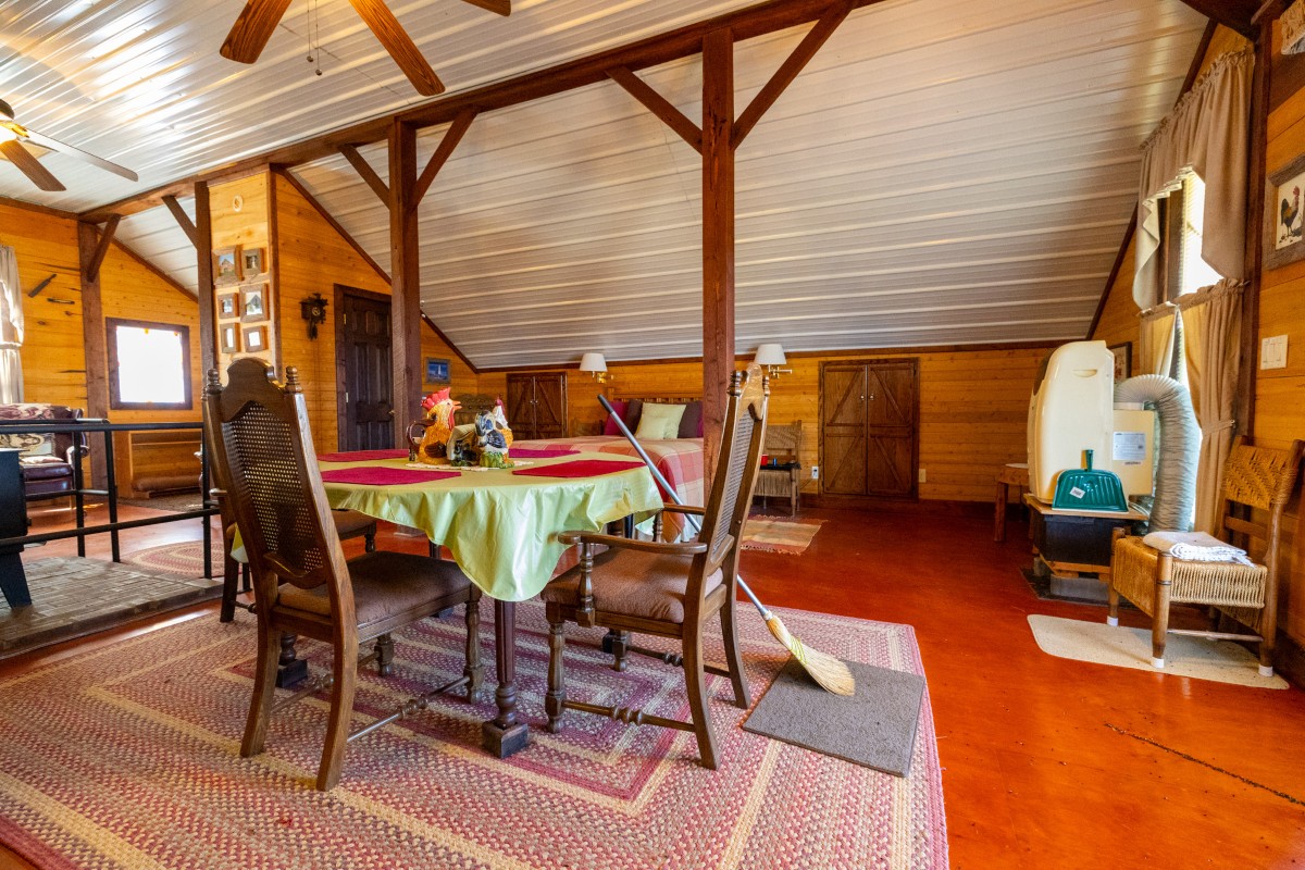 This 103.43± acre hunting tract in Crittenden County, Kentucky offers a rare combination of proven big-buck history, quality habitat diversity, and comfortable on-site lodging. The two-story barndominium overlooks the property from an elevated setting, with 800 square feet of well-designed living space on the upper level. Inside, you'll find a cozy 1BR/1BA layout with an open kitchen and living area, a reading nook, and a wood-burning stove that adds warmth throughout the colder months. A covered upper-level deck provides sweeping views of the surrounding landscape—an ideal place to unwind after a long day in the field. The lower level offers abundant enclosed storage space for equipment, stands, side-by-sides, and gear, with direct access to a large gravel drive and parking area. The land itself is a standout, offering the classic 50/50 blend of open ground and timber that consistently produces mature whitetails. Rolling topography, scattered ponds, established food plots, and an elevated box blind provide everything needed for a season-long hunting program. Softwoods, mast-producing hardwoods, timbered ridges, and brushy draws create natural travel corridors, while numerous pockets of dense bedding cover give deer secure sanctuary areas throughout the year. The property also provides ideal locations for expanding food plot acreage or developing tillable ground, if desired. With more than 1,900 feet of road frontage and a layout tailored for both deer and turkey hunting, this farm offers exceptional recreational potential. The adjoining 5± acres with a home to the west is also available for purchase, giving buyers the flexibility to expand into a larger, turnkey setup.