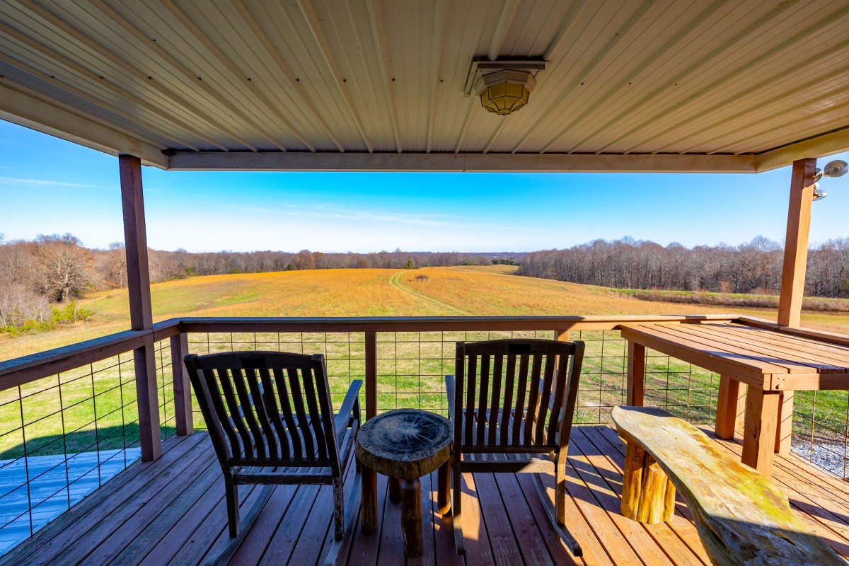 - Covered upper-level deck with scenic views