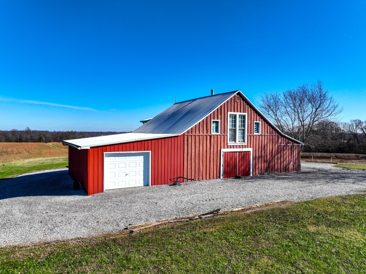 - 2-story barndo with upper-level living area and lower-level storage