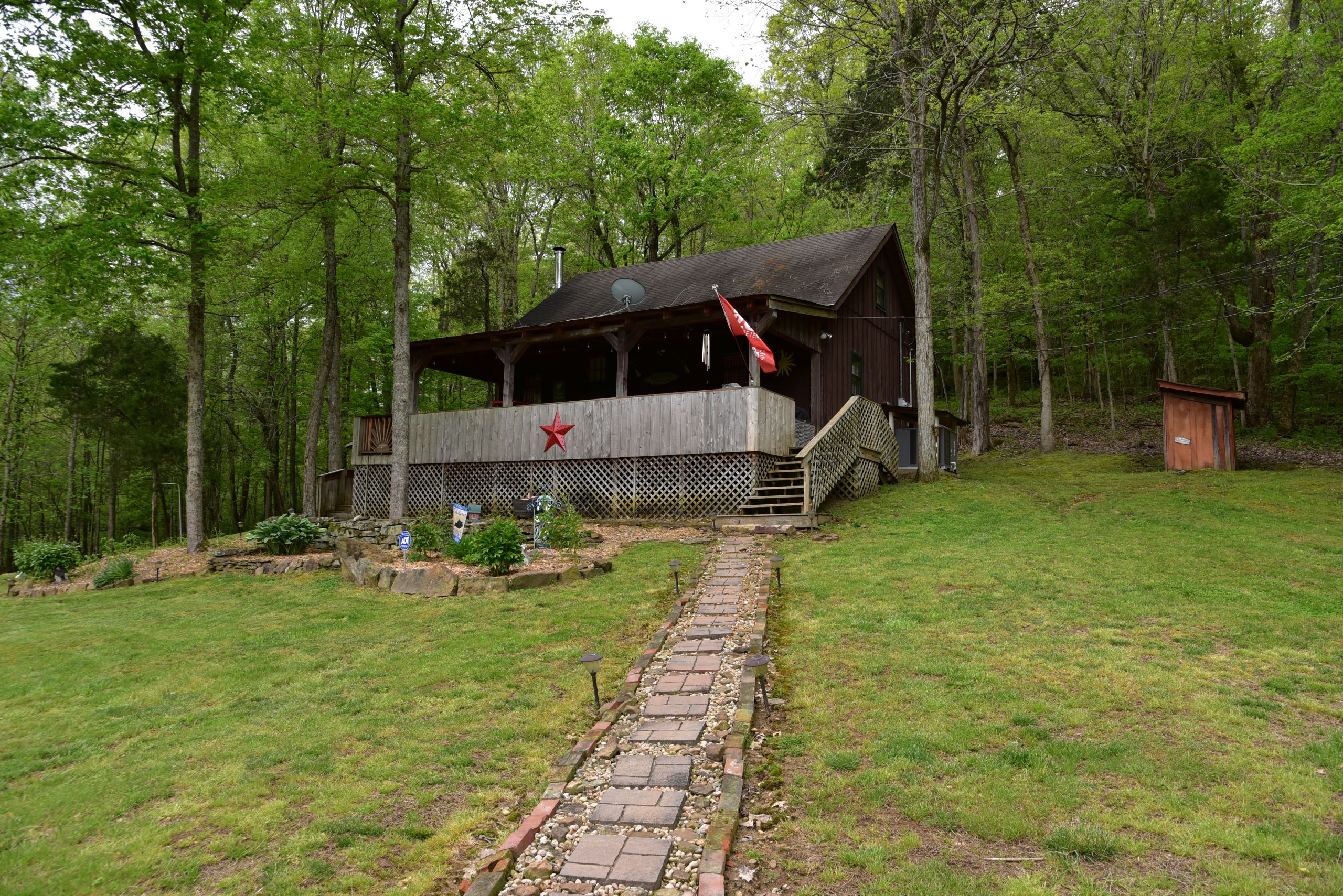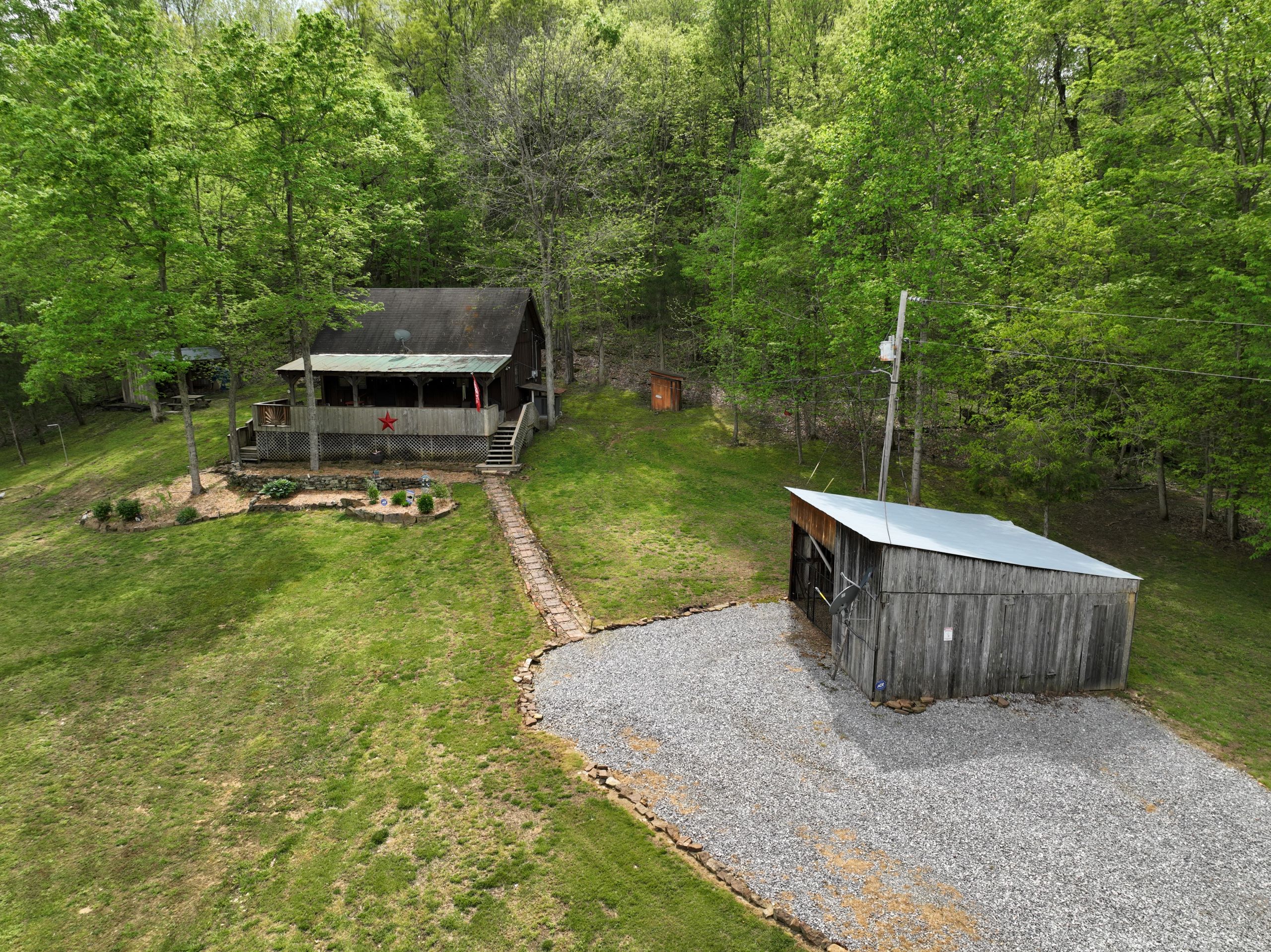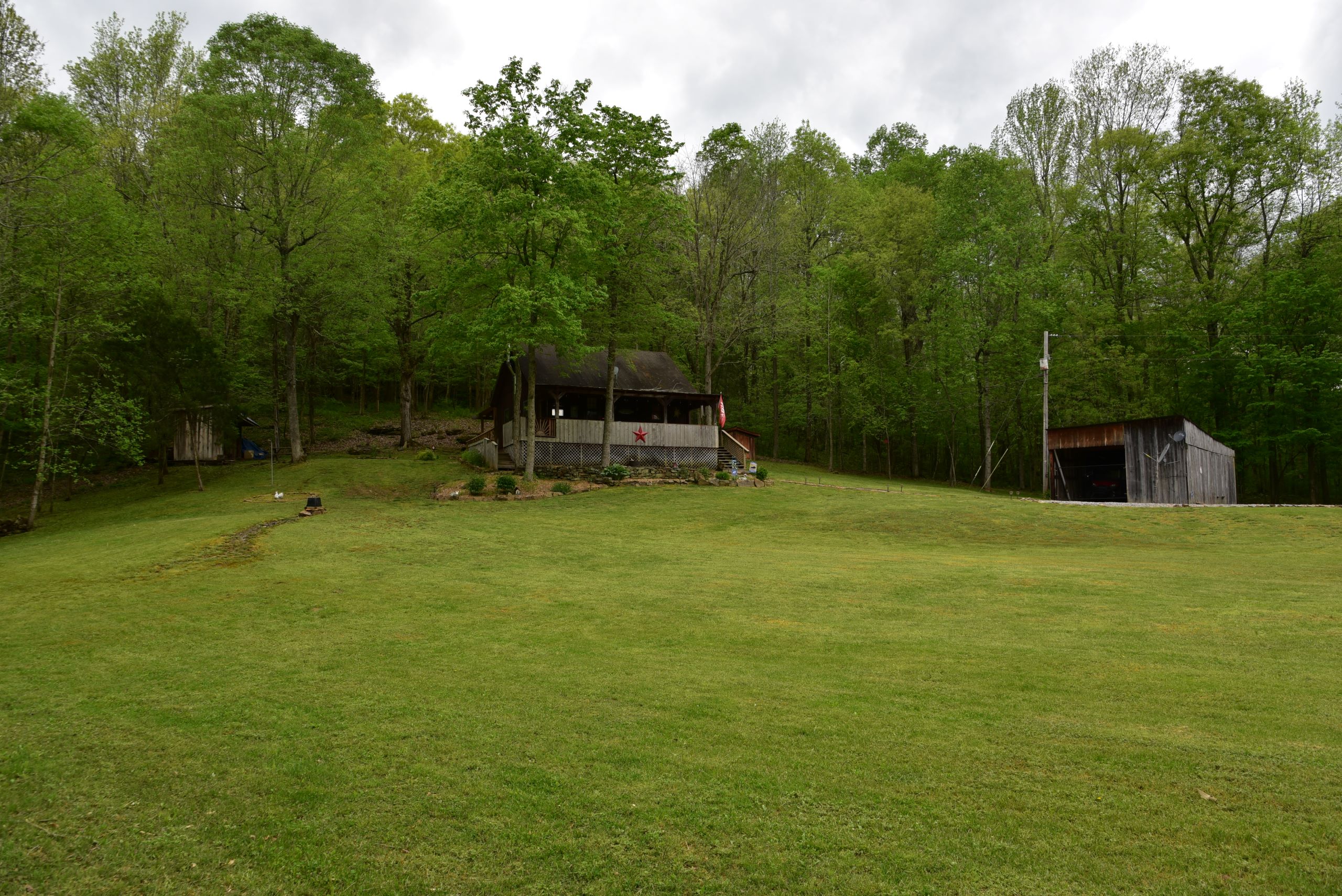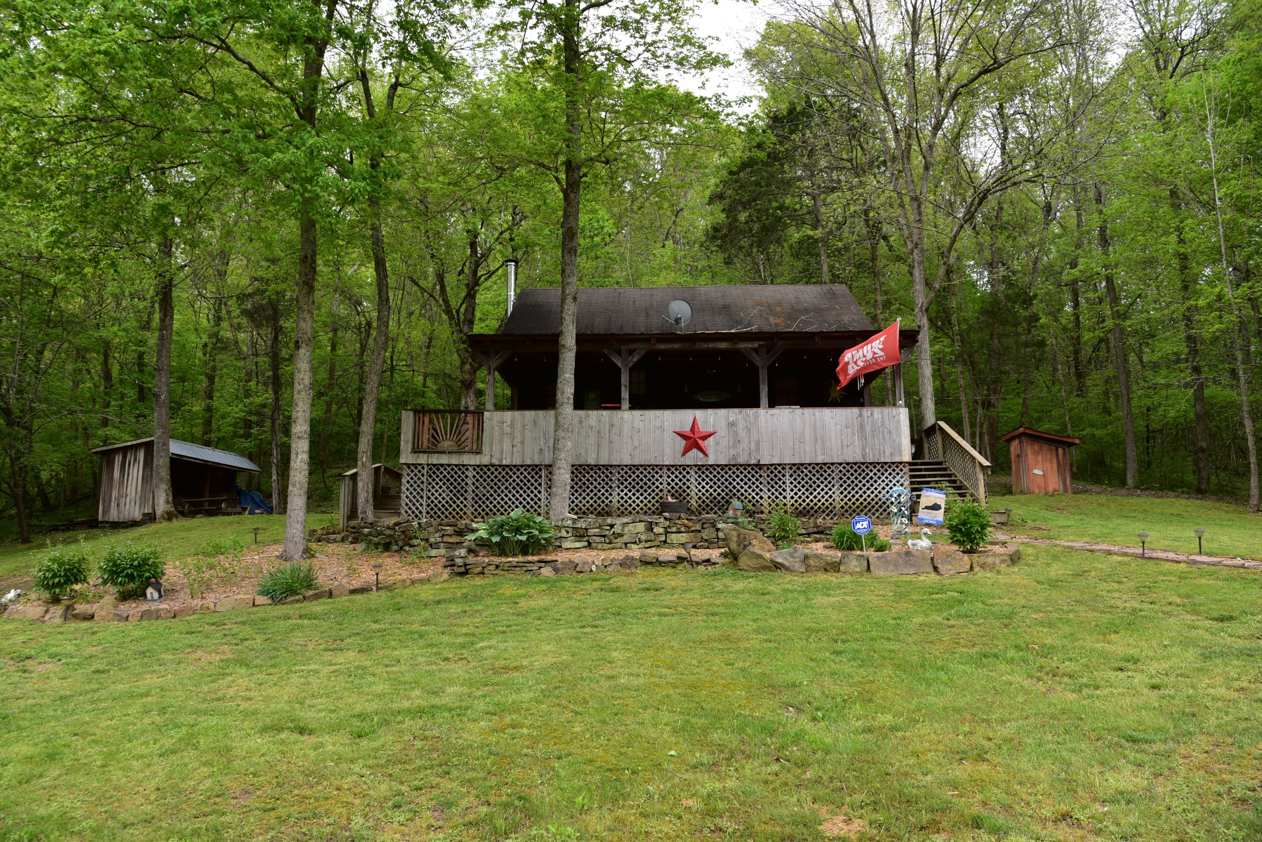 Secluded cabin with huntable acreage! This rustic one-bedroom, one-bathroom cabin with loft is located in a beautiful setting surrounded by nature. It has an open kitchen and living area with a real wood-burning stove, wood walls, floors and ceiling with barn tin accents throughout. Both front and back porches are covered and offer scenic views of the surrounding landscape. It has a large, manicured yard with extensive landscaping, multiple storage sheds, shade trees, gated entry, and a gravel drive and parking area. The property has a diverse blend of habitat types and topography. Approximately 1+/- acre of open ground is the ideal location for a food plot. It has a rolling topography with areas of dynamic terrain that include rock outcroppings and overhangs. Two large rock bottom creeks flow through the property and are a major travel corridor for wildlife in the area. The timber is a blend of softwoods and mast-producing hardwoods with areas of dense security cover throughout. If you’re looking for a quiet, secluded cabin in a beautiful setting with huntable acreage, give us a call today and schedule your private tour!