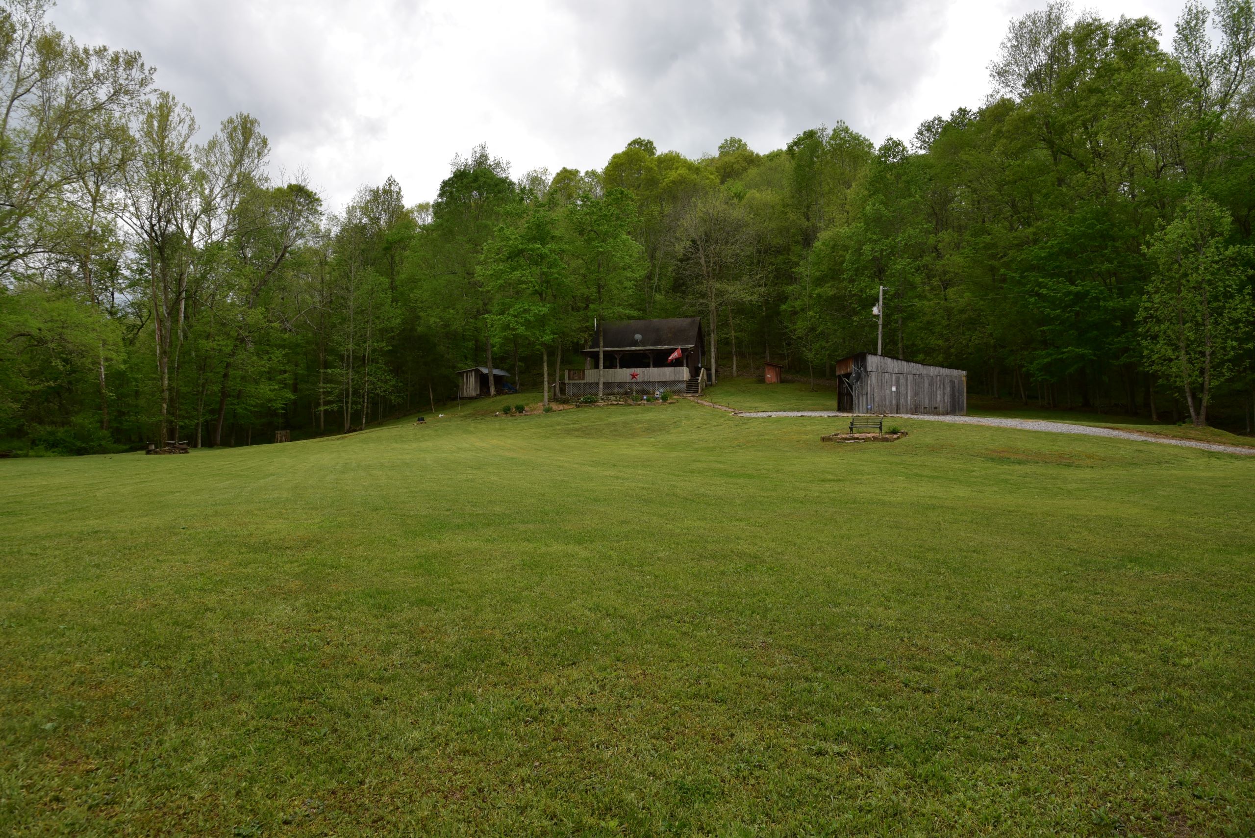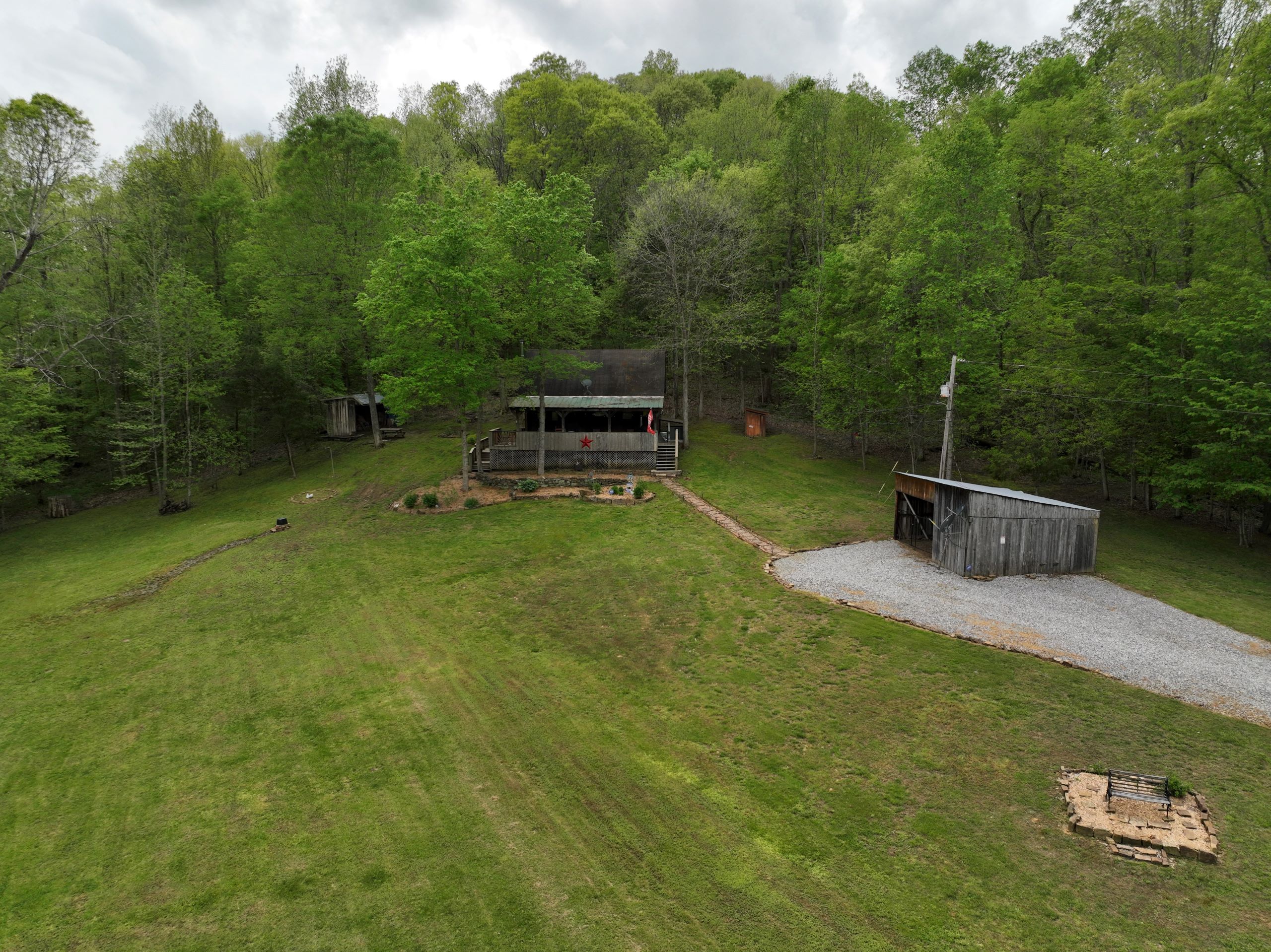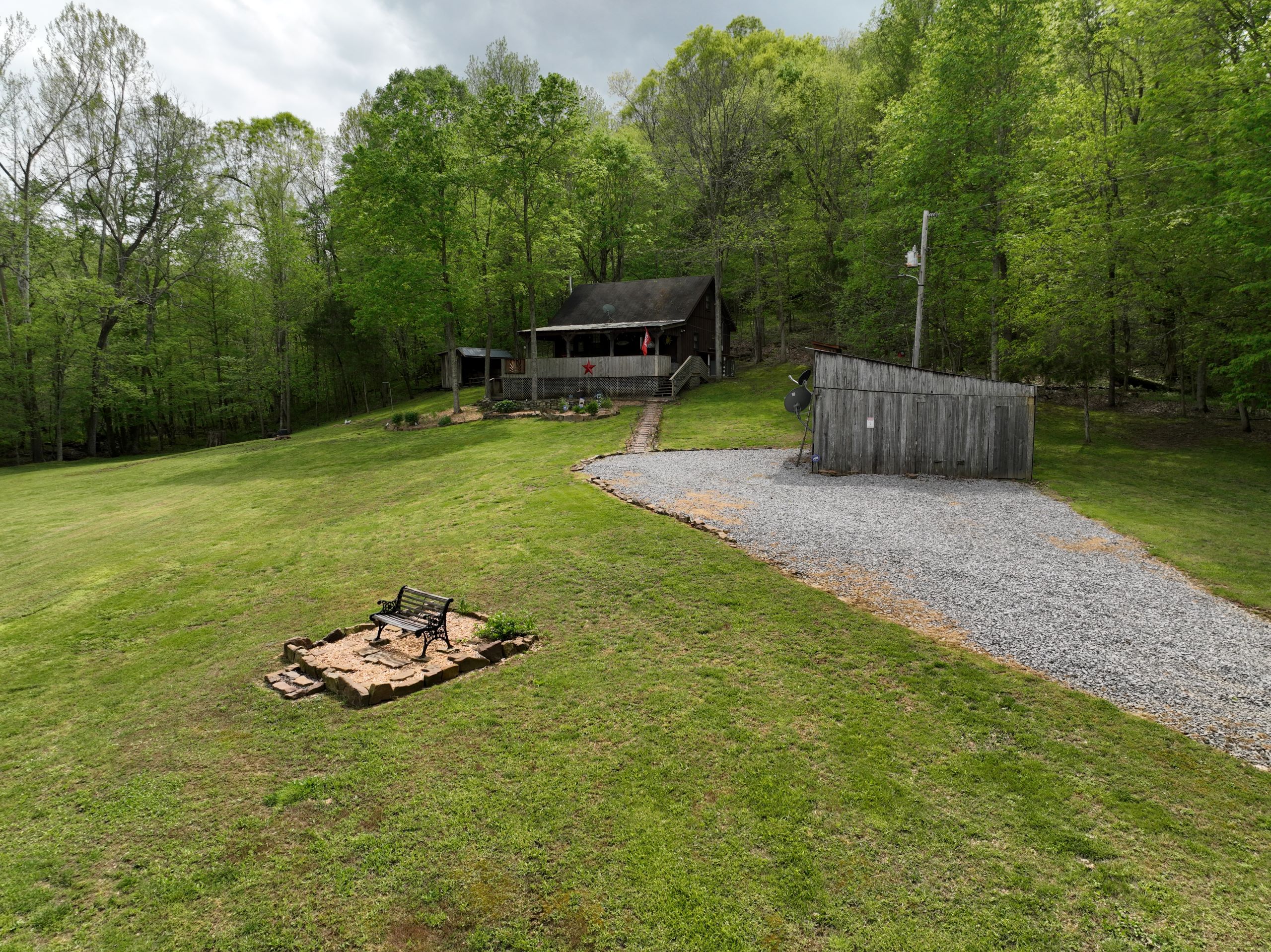 Secluded cabin with huntable acreage! This rustic one-bedroom, one-bathroom cabin with loft is located in a beautiful setting surrounded by nature. It has an open kitchen and living area with a real wood-burning stove, wood walls, floors and ceiling with barn tin accents throughout. Both front and back porches are covered and offer scenic views of the surrounding landscape. It has a large, manicured yard with extensive landscaping, multiple storage sheds, shade trees, gated entry, and a gravel drive and parking area. The property has a diverse blend of habitat types and topography. Approximately 1+/- acre of open ground is the ideal location for a food plot. It has a rolling topography with areas of dynamic terrain that include rock outcroppings and overhangs. Two large rock bottom creeks flow through the property and are a major travel corridor for wildlife in the area. The timber is a blend of softwoods and mast-producing hardwoods with areas of dense security cover throughout. If you’re looking for a quiet, secluded cabin in a beautiful setting with huntable acreage, give us a call today and schedule your private tour!