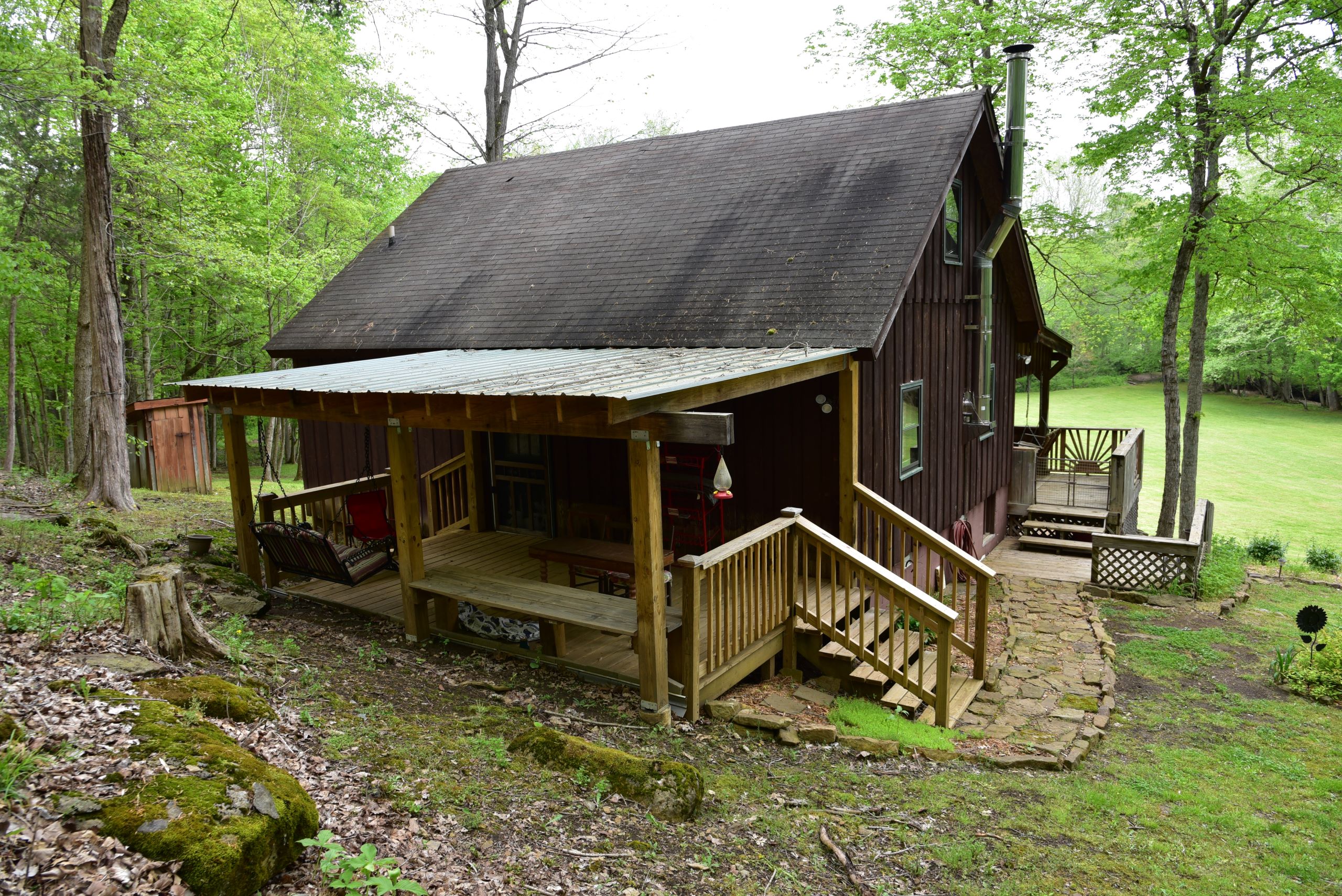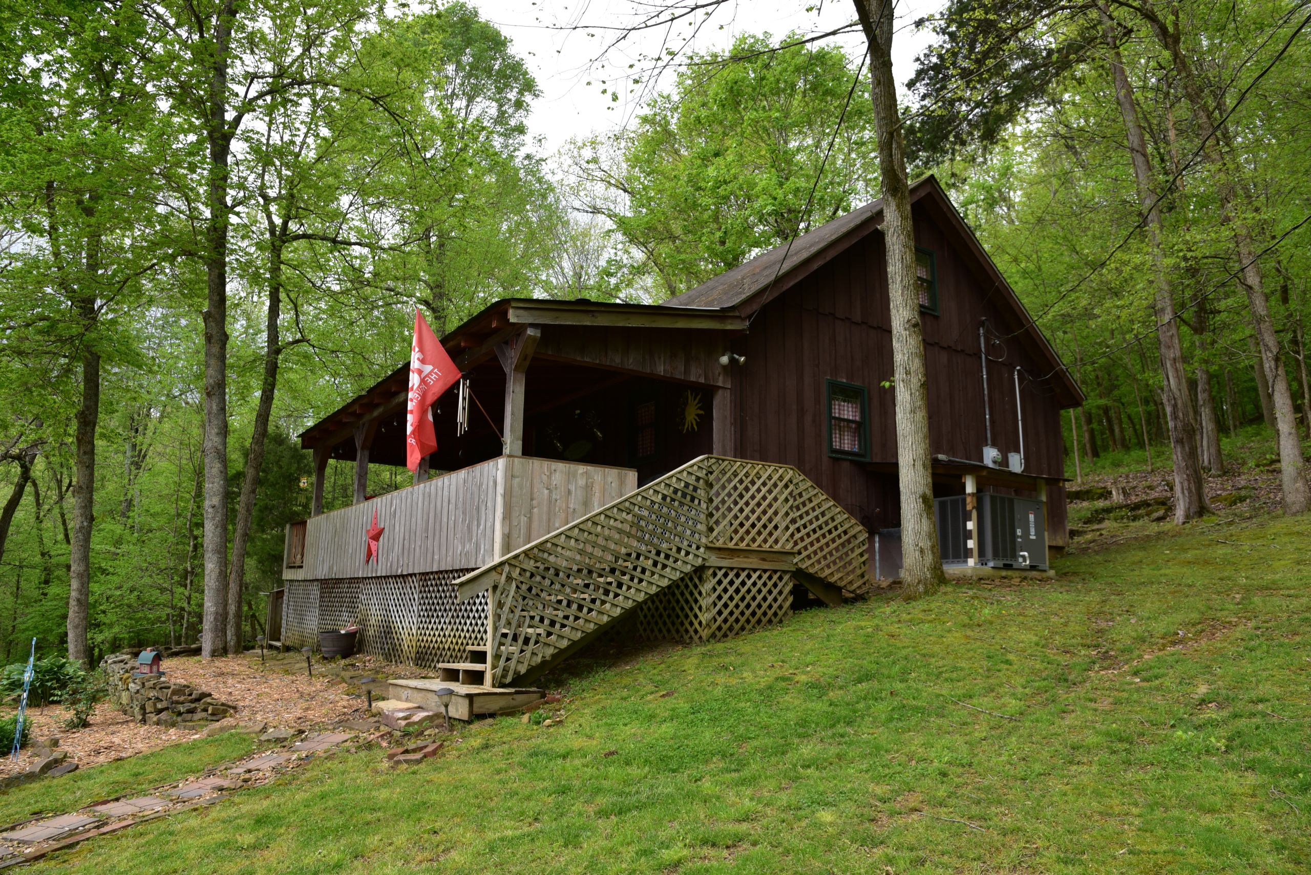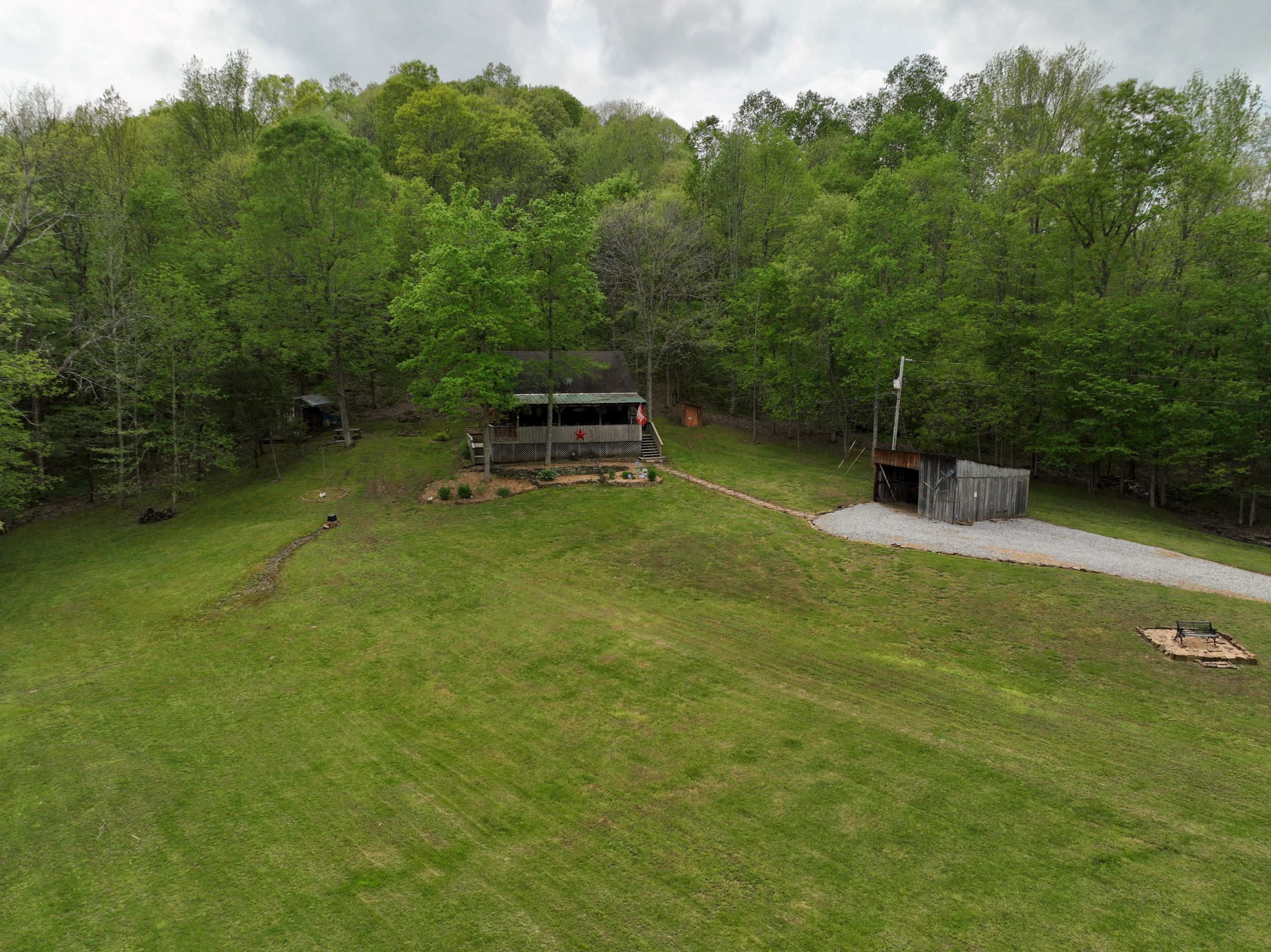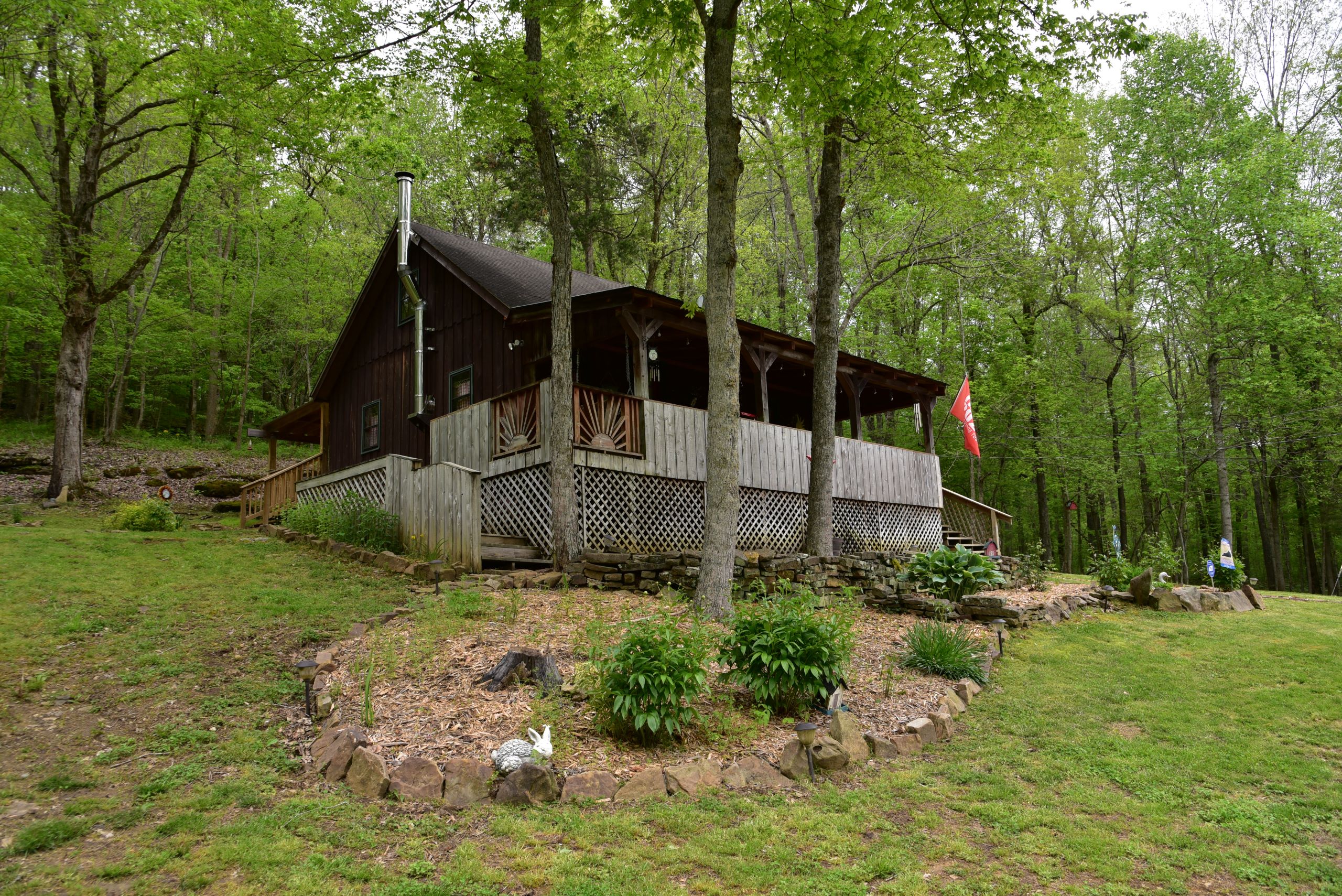 Secluded cabin with huntable acreage! This rustic one-bedroom, one-bathroom cabin with loft is located in a beautiful setting surrounded by nature. It has an open kitchen and living area with a real wood-burning stove, wood walls, floors and ceiling with barn tin accents throughout. Both front and back porches are covered and offer scenic views of the surrounding landscape. It has a large, manicured yard with extensive landscaping, multiple storage sheds, shade trees, gated entry, and a gravel drive and parking area. The property has a diverse blend of habitat types and topography. Approximately 1+/- acre of open ground is the ideal location for a food plot. It has a rolling topography with areas of dynamic terrain that include rock outcroppings and overhangs. Two large rock bottom creeks flow through the property and are a major travel corridor for wildlife in the area. The timber is a blend of softwoods and mast-producing hardwoods with areas of dense security cover throughout. If you’re looking for a quiet, secluded cabin in a beautiful setting with huntable acreage, give us a call today and schedule your private tour!