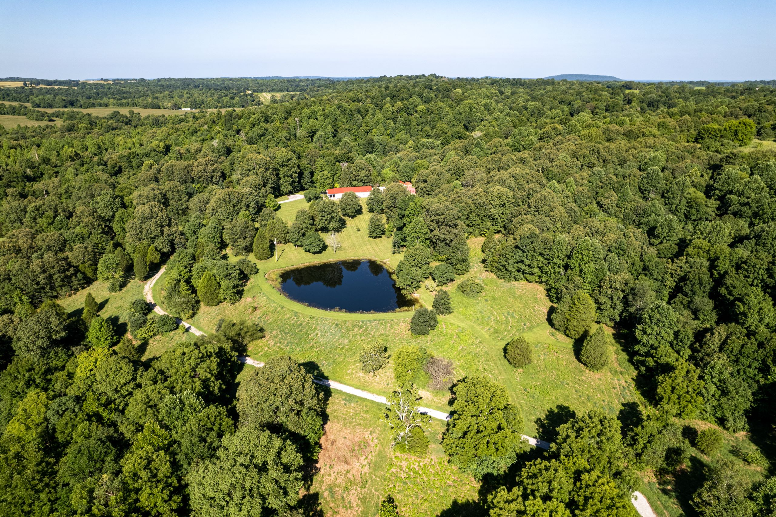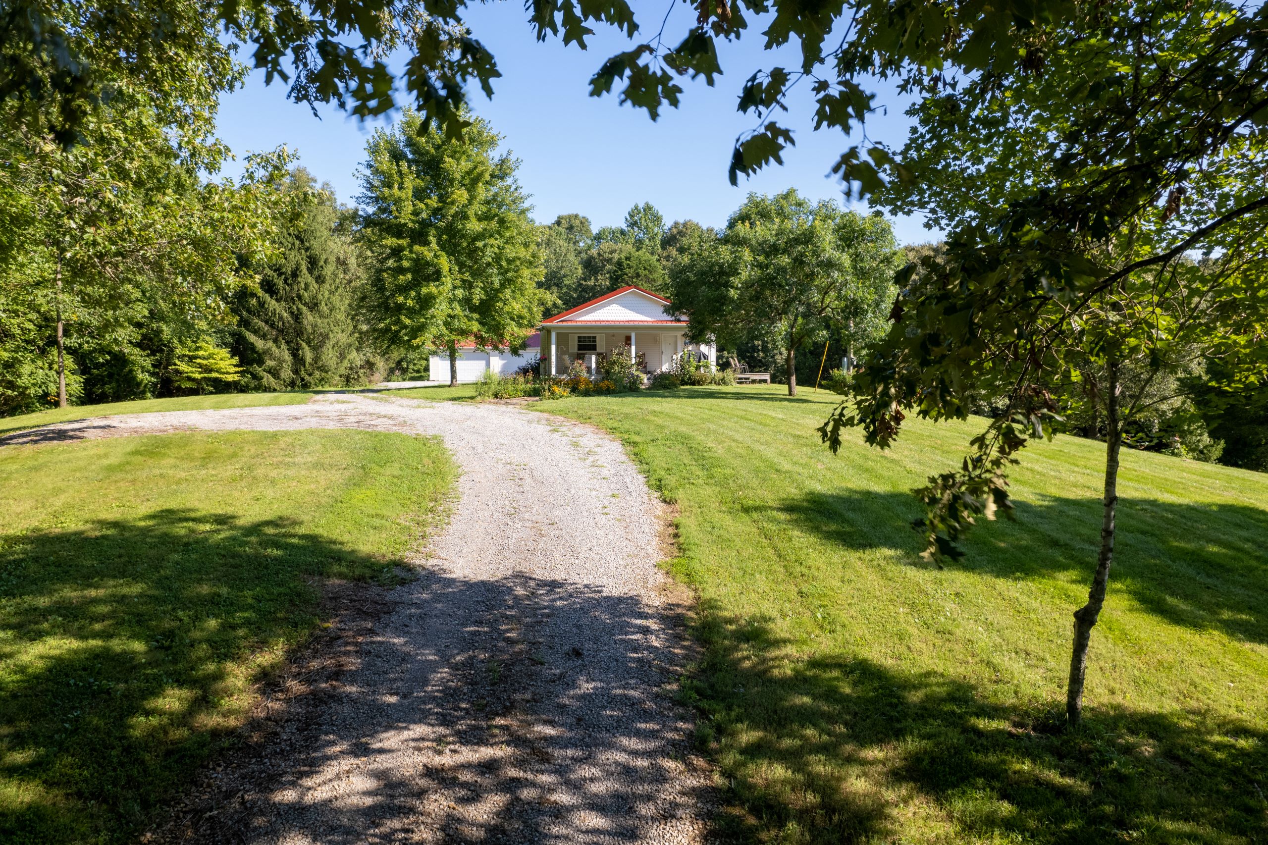 - Large yard with plenty of shade trees, gravel drive and pond