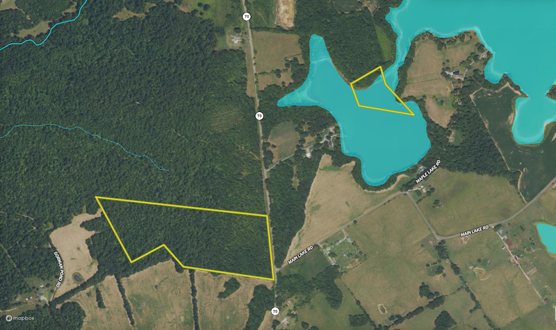 This unique offering combines a timbered hunting tract with a scenic lakefront lot on Maple Lake, providing exceptional recreational and development opportunities. With 450 feet of lake frontage, the property offers a potential build site and waterfowl hunting opportunities on 3.75+/- acres of water. Located just 1.2 miles from the Cumberland River, this property boasts an ideal location for outdoor enthusiasts. The timbered tract features rolling topography with timbered ridges and draws composed of softwoods, cedars, and mast-producing hardwoods. Areas of dense security and bedding cover add to the property's appeal for wildlife. An established trail system weaves throughout the tract, making it easy to navigate, while the property adjoins tillable acreage, enhancing habitat diversity. Deer sign is abundant, emphasizing its hunting potential. With 800 feet of road frontage and utilities available, this property offers excellent access and development potential. Whether you're looking to create a hunting retreat, build a dream home, or enjoy the tranquility of lakeside living, this property delivers a rare combination of attributes less than half a mile apart.