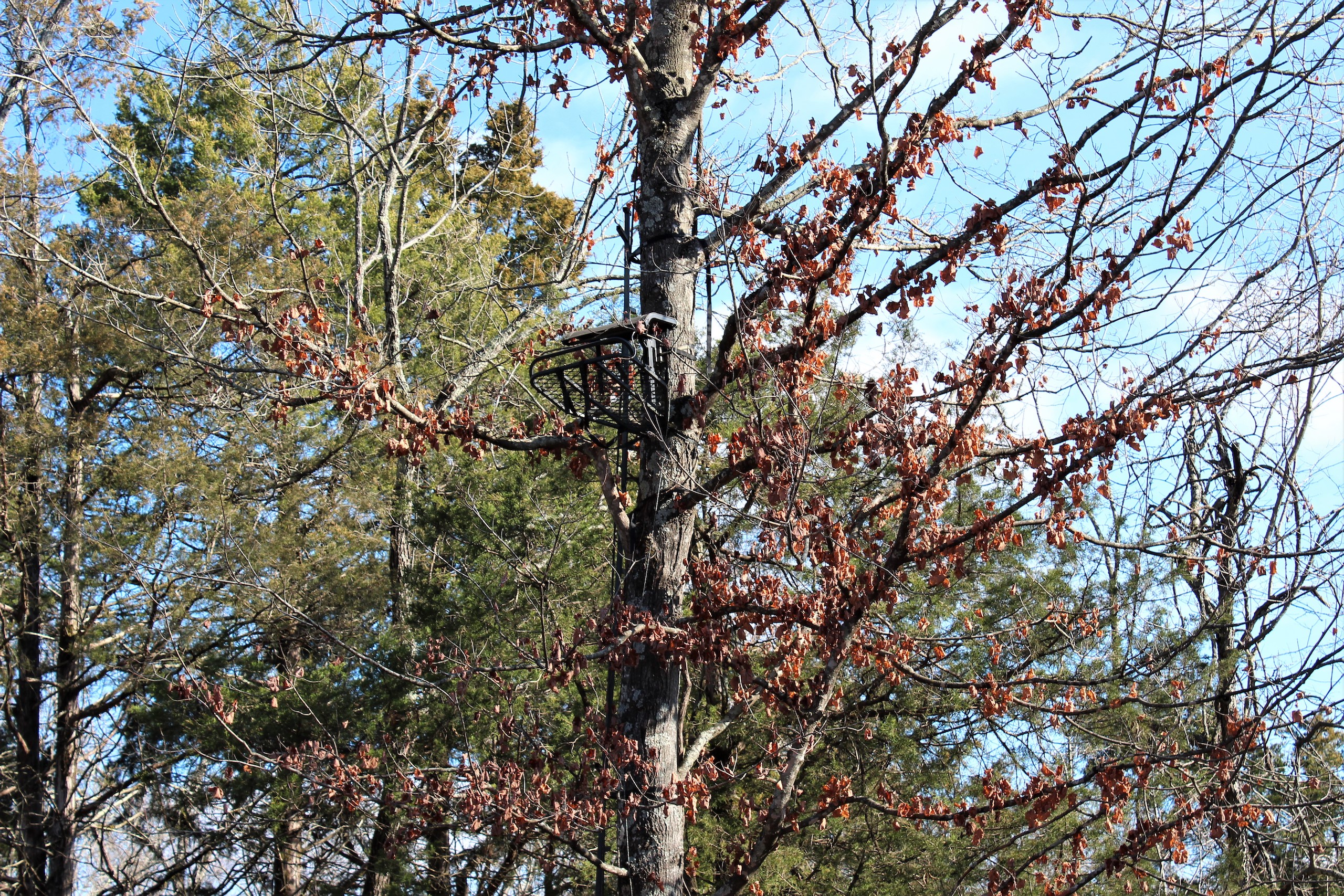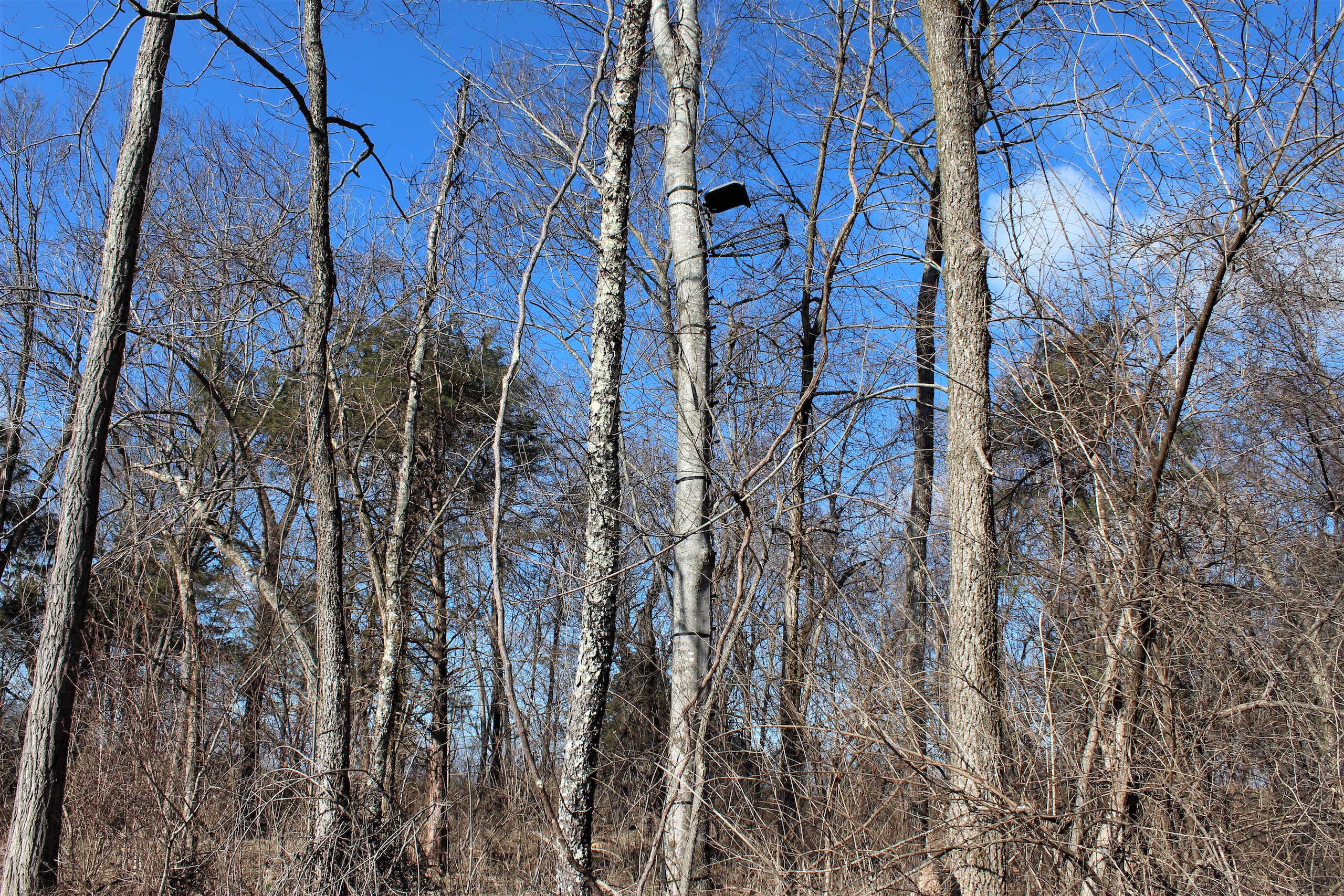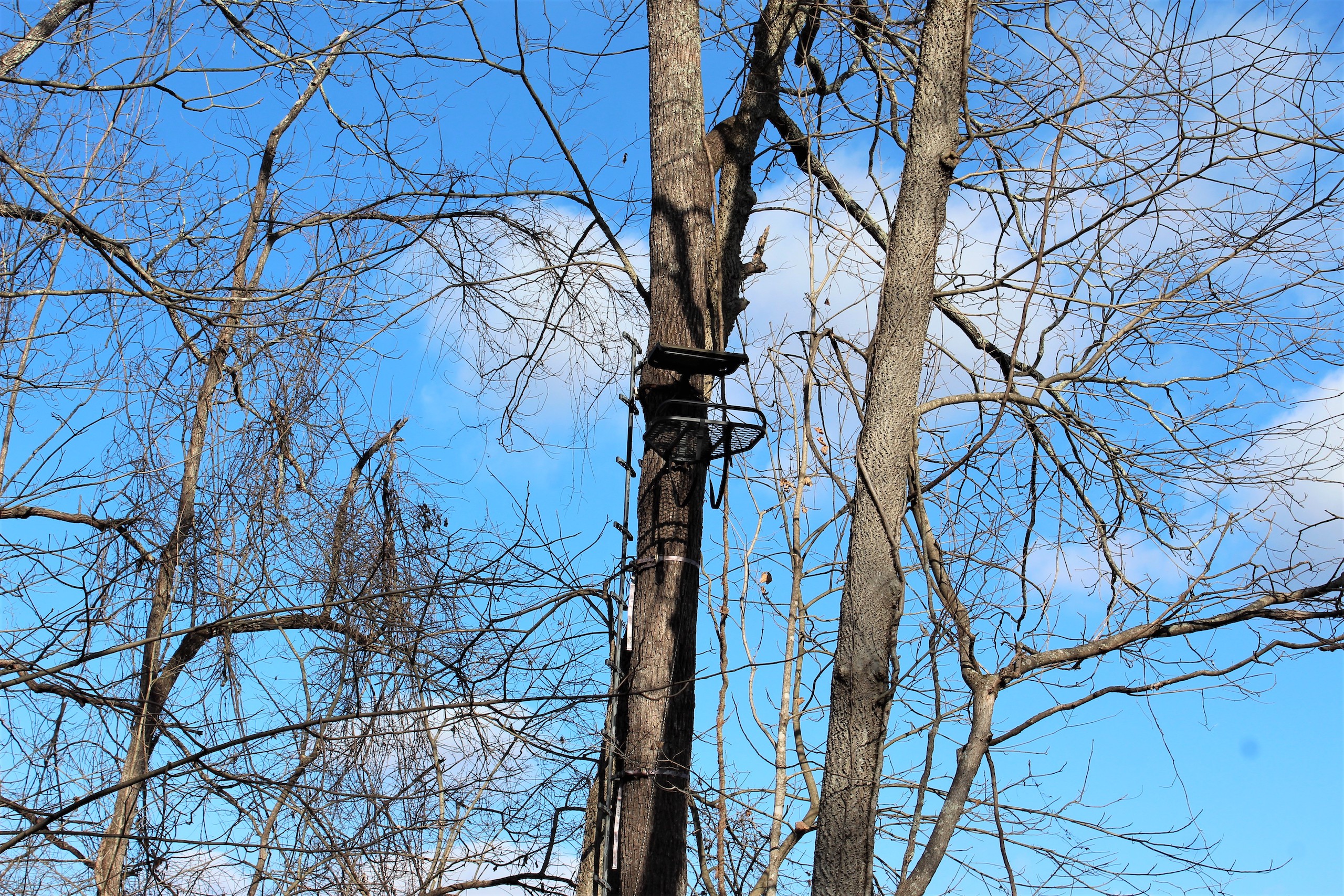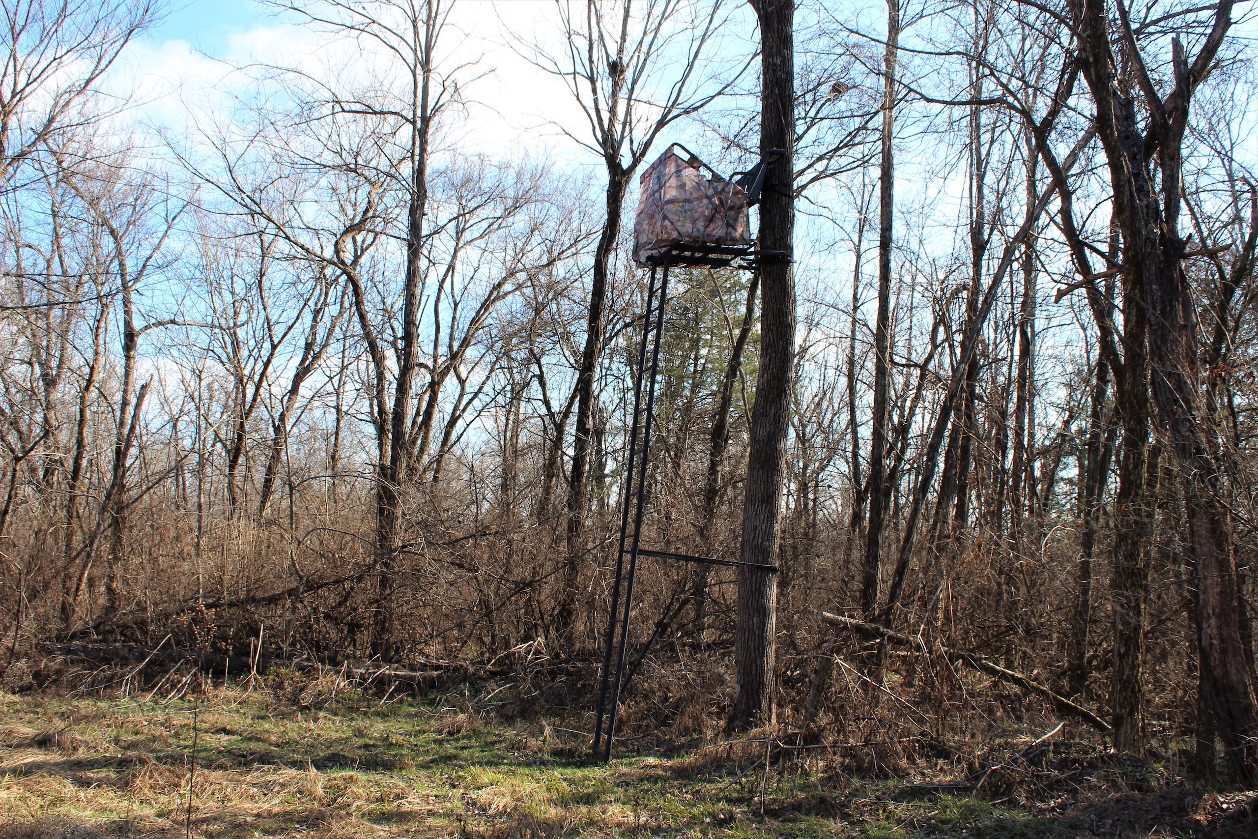 - Multiple tree stands with ladder sticks and safety lines in place