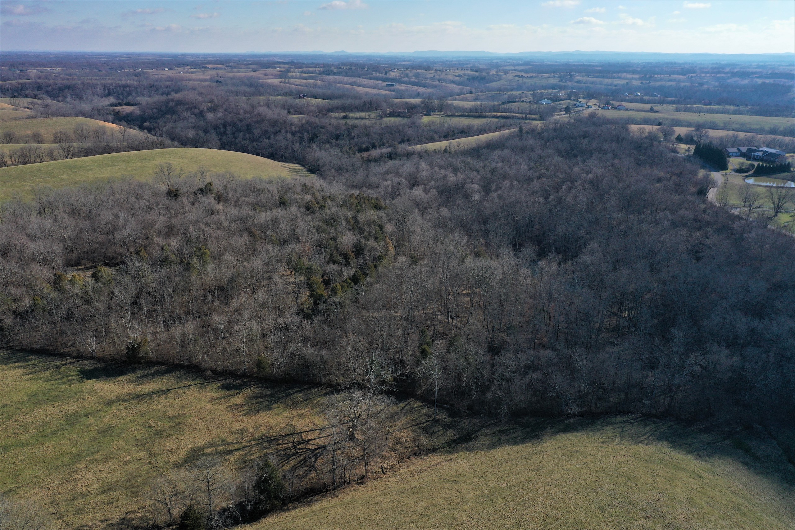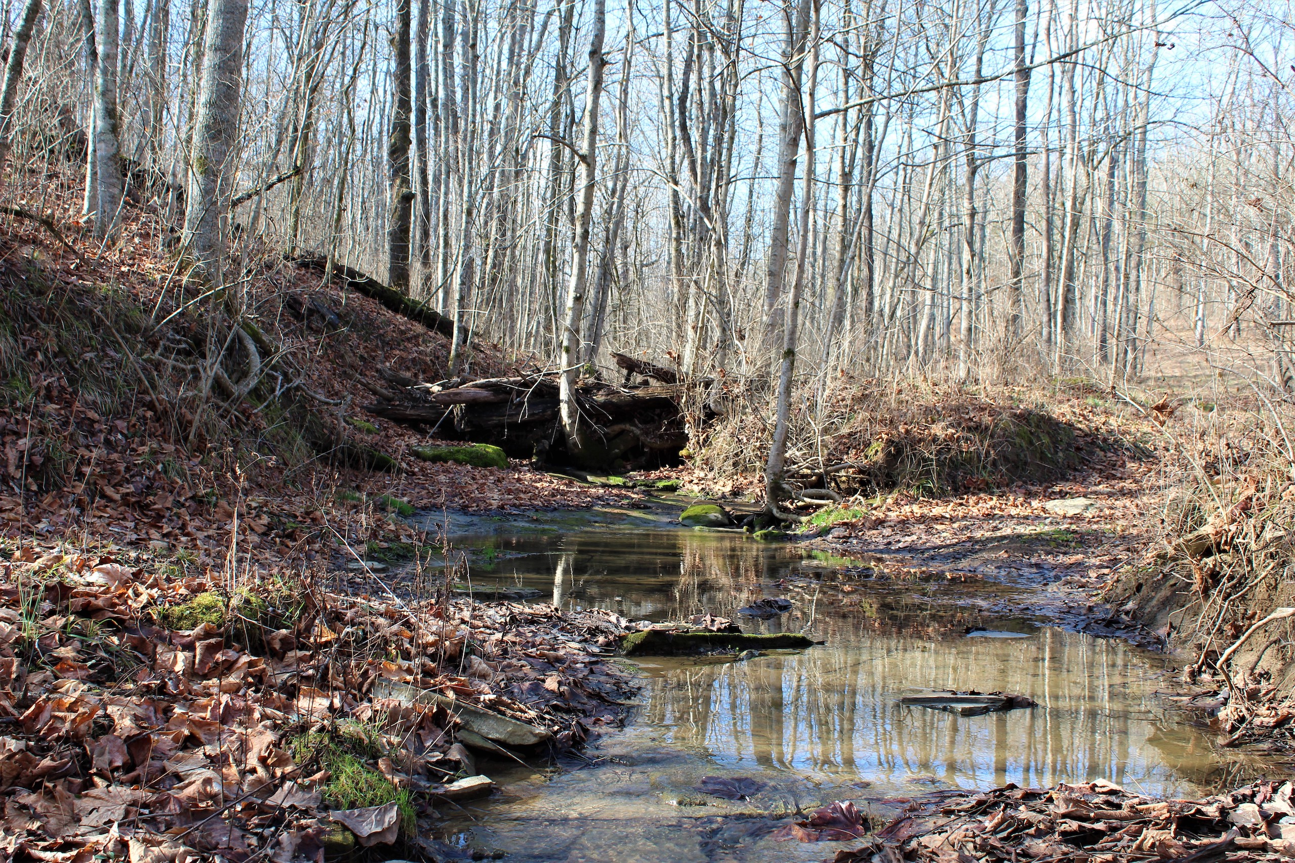 - Intermittent stream running through the property and small pond in the center