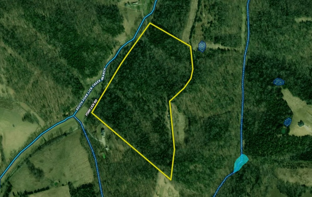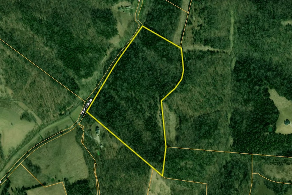 The land features approximately 1,200 feet of road frontage along Fork Lick Road, allowing convenient access from a public roadway. The frontage may provide flexibility for driveway placement and potential building locations depending on the buyer’s plans and local requirements.