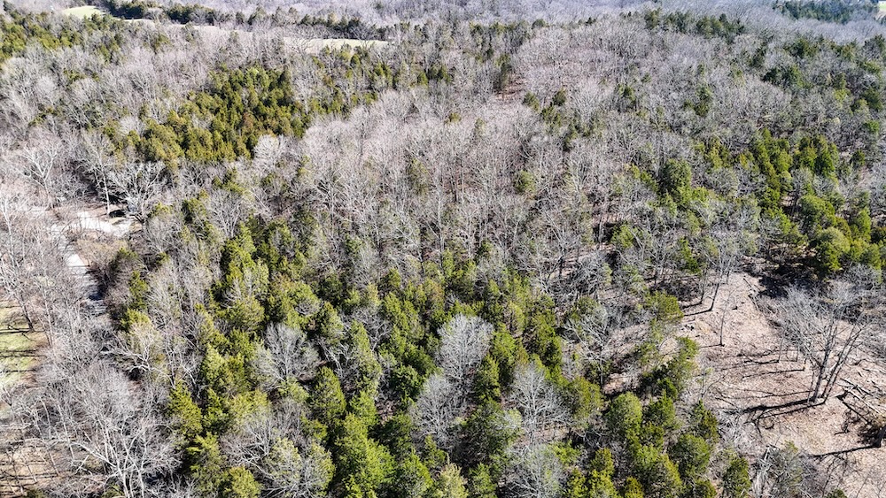 Most of the acreage is covered in trees that provide wildlife habitat and natural cover with a proven history for deer and turkey. Scattered clearings have been established within the timber and are currently used for deer food plots.