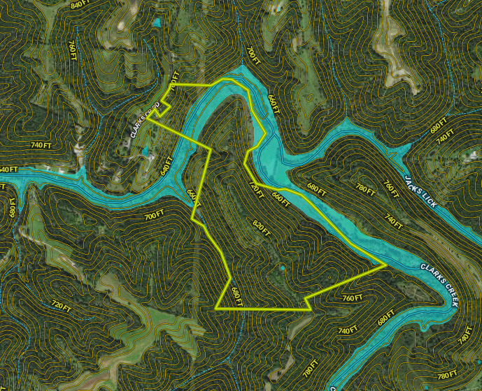 - You must cross Clarks Creek to access the majority of this property