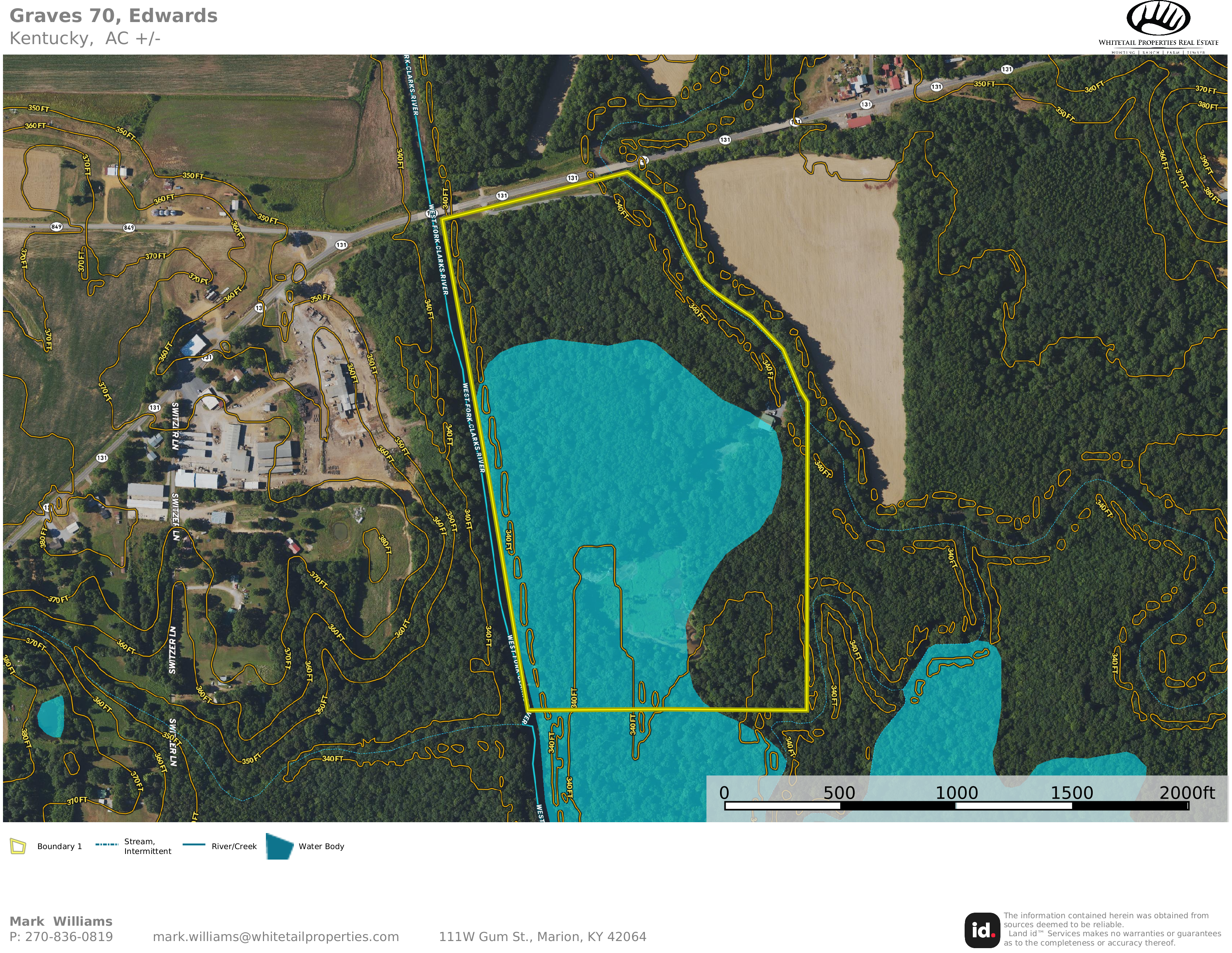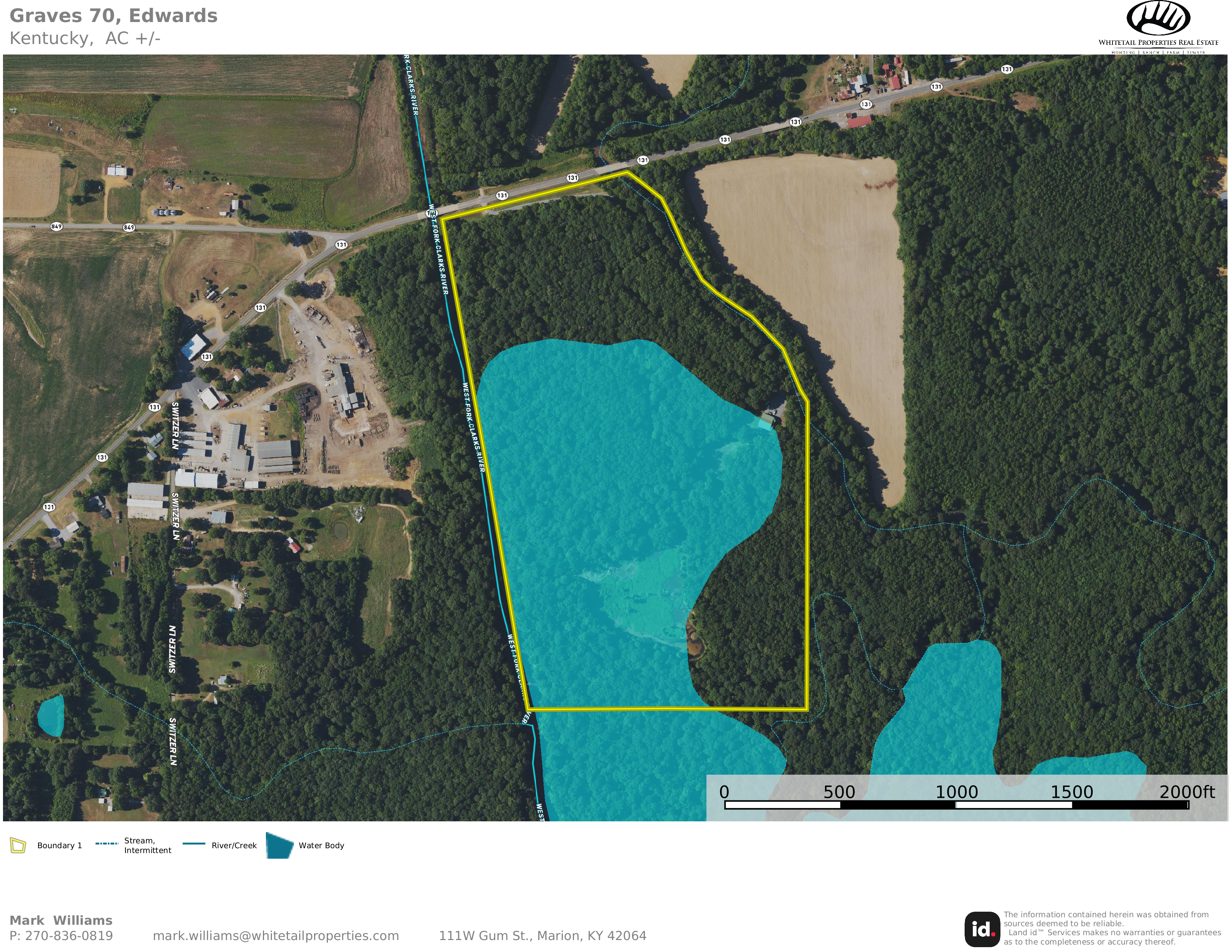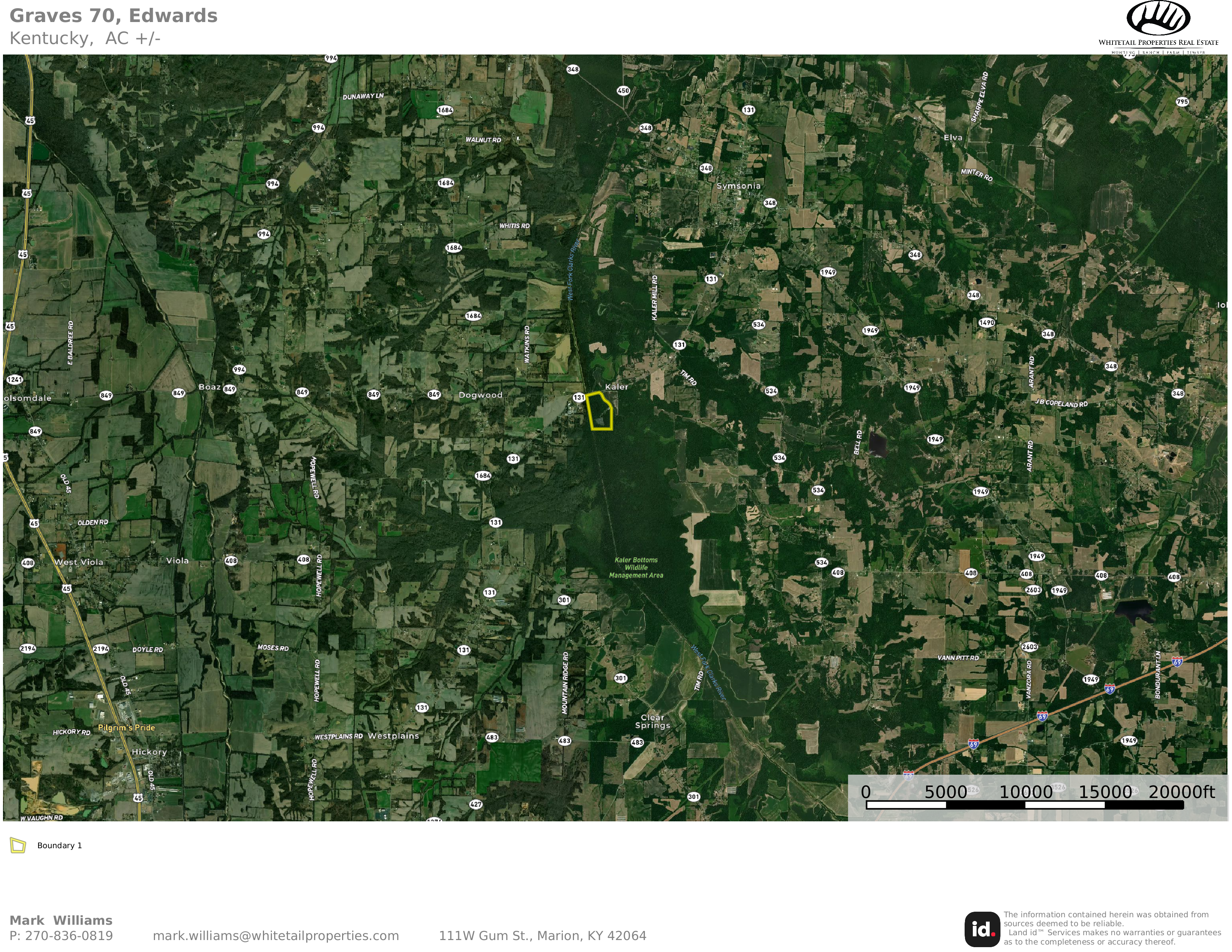 - Adjoins the Kaler Bottoms WMA to the south