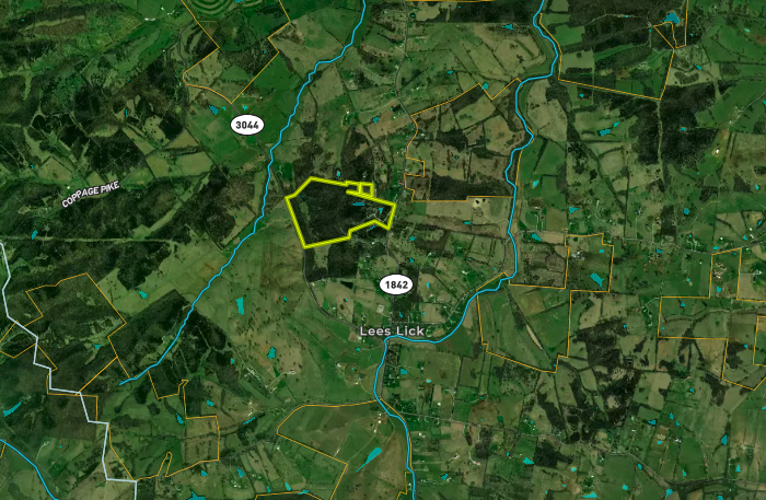 - Approximate road frontage (Ky Hwy 1842 – 691’) (Sky Ln - 101’) (KY Hwy 3044 “Jacobs Ln” - 1,478’)