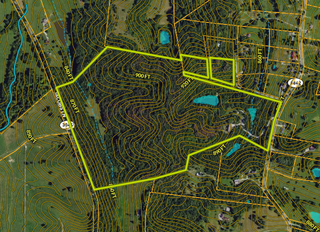 - Approximately 100 feet of elevation change across the entire property