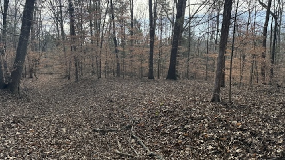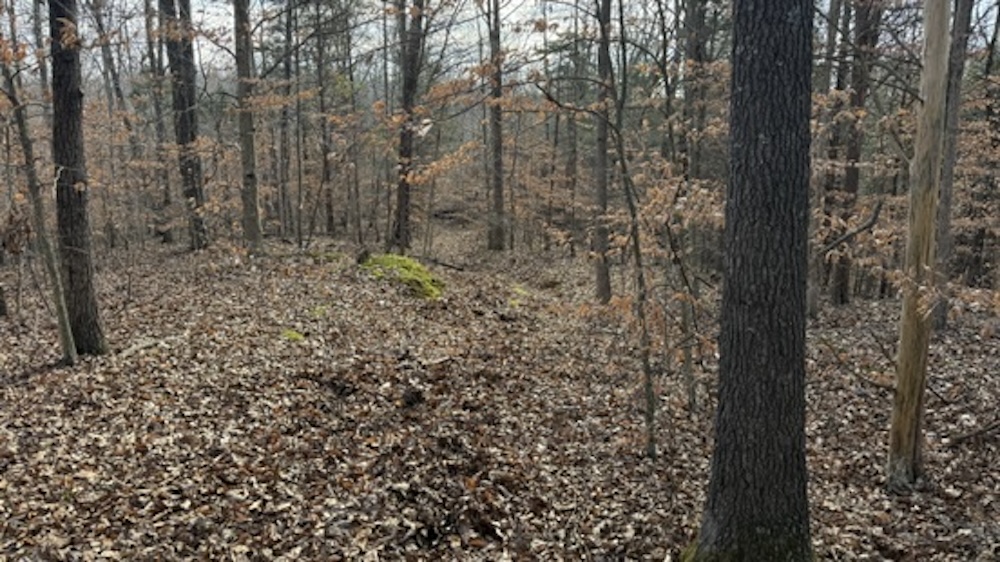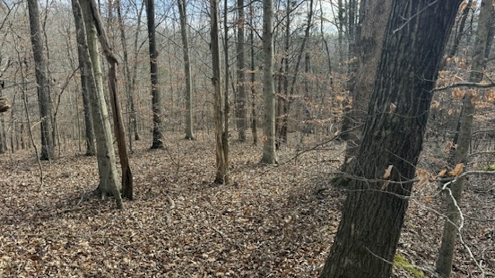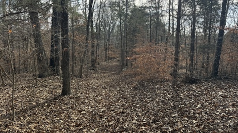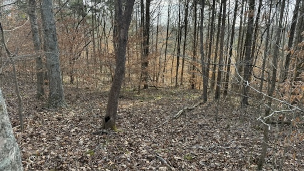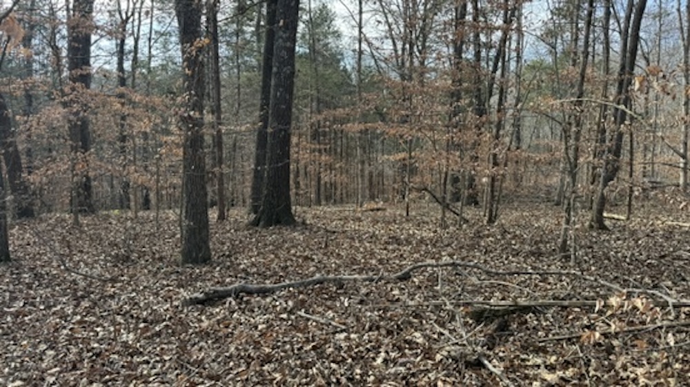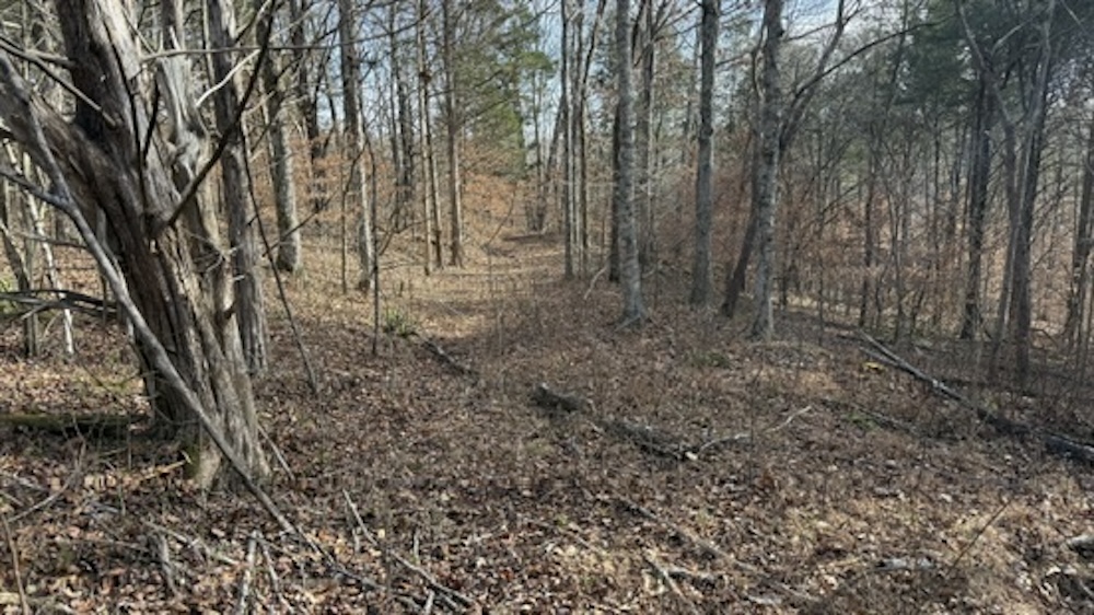 The property fronts Die Shiboley Church Road and includes the start of a driveway, providing convenient access from the county-maintained road. An old roadbed runs the length of the property, providing interior access down through the timber to the back of the tract. This roadbed can be utilized for foot travel, equipment access, or future trail improvements, depending on the buyer's plans and land management goals.