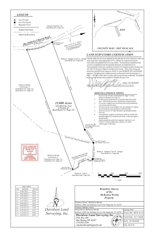 This 15-acre tract is located at 3000 Die Shiboley Church Road in Magnolia, Kentucky, within Hart County. The property consists of rolling timberland with road frontage and existing access features that support both residential and recreational land uses. Its layout, water resources, and available utilities make it a flexible option for buyers seeking acreage in a rural setting.
