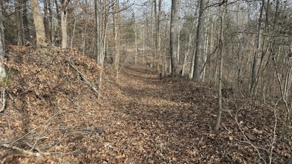 - Start of driveway and old roadbed running through the property