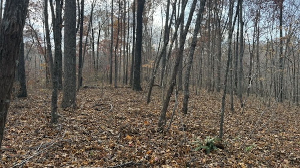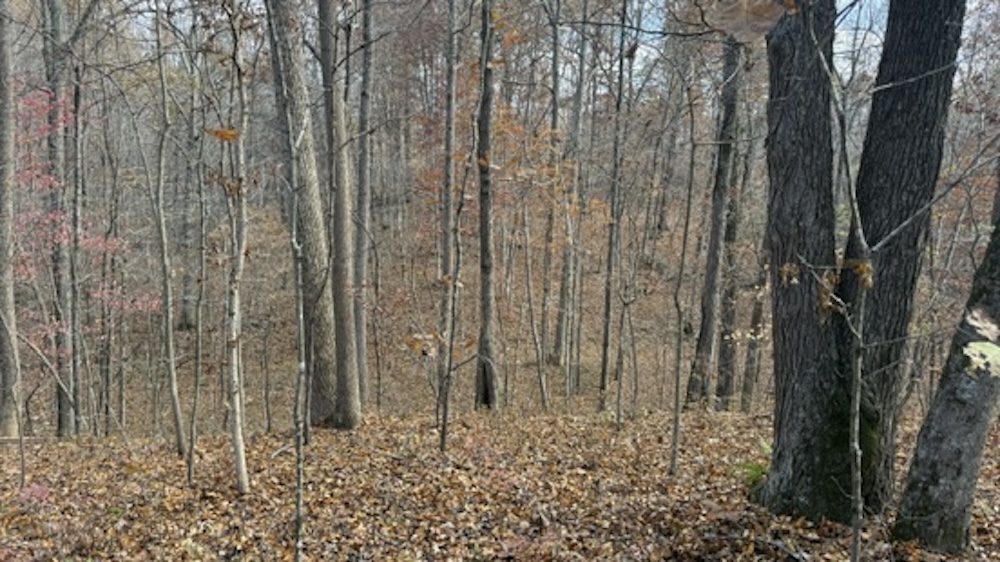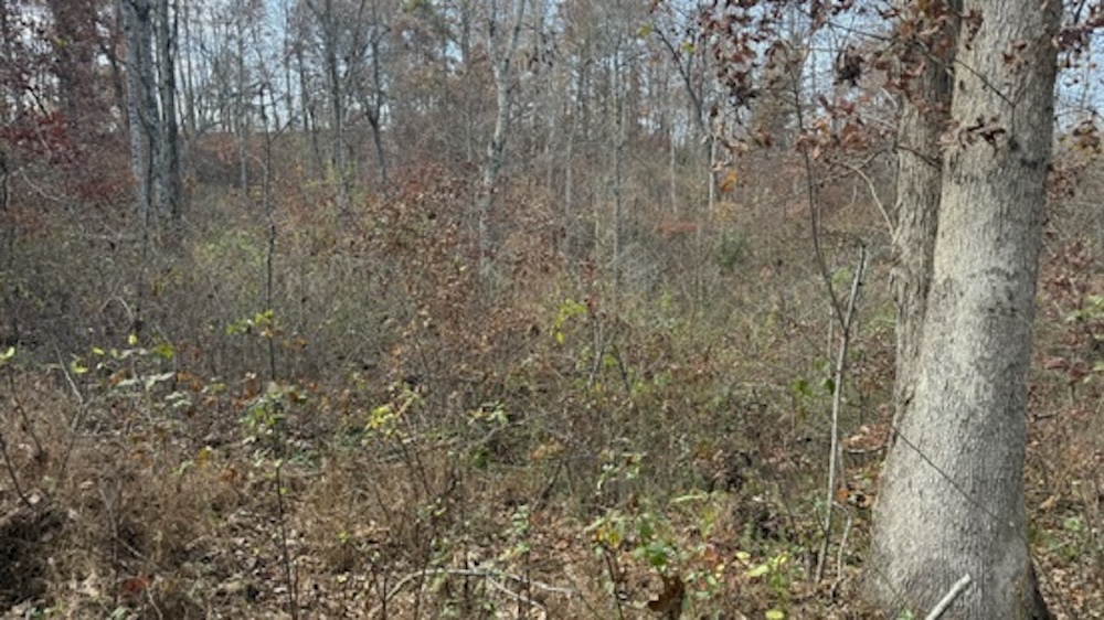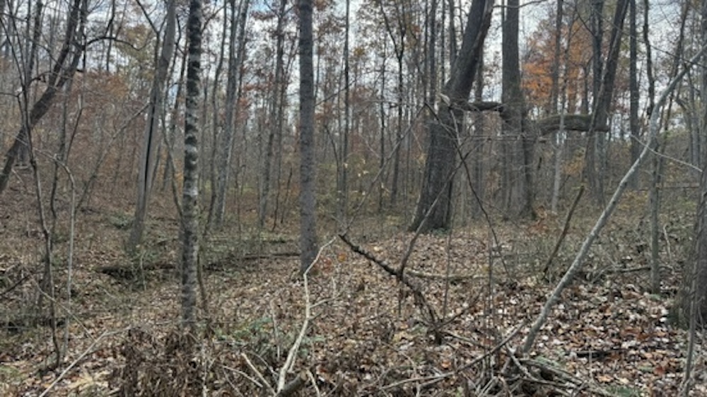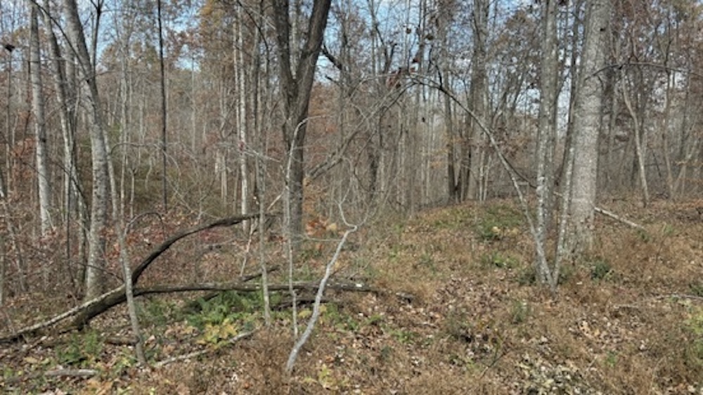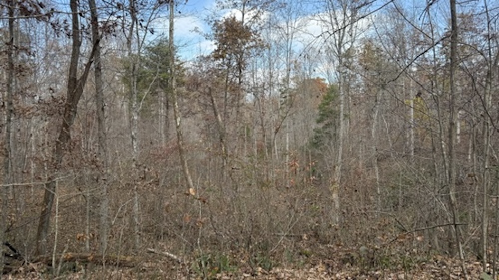 The acreage consists primarily of timbered ground with a blend of open hardwood areas and thicker cover that supports wildlife bedding and natural screening. Two small food plots have been established on the property, offering manageable locations for wildlife attraction or habitat planning. The surrounding landscape is predominantly wooded, which helps maintain seclusion and offers continuity of habitat. Due to the natural layout and surrounding terrain, the property may experience wildlife movement patterns, including those of whitetail deer, which travel through the area.