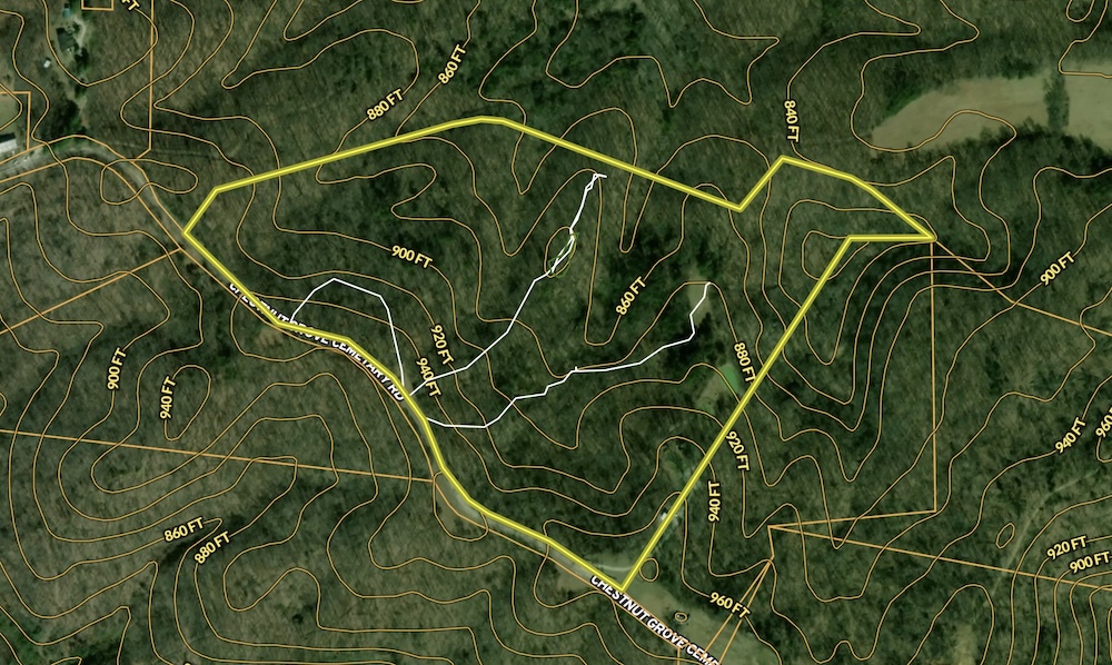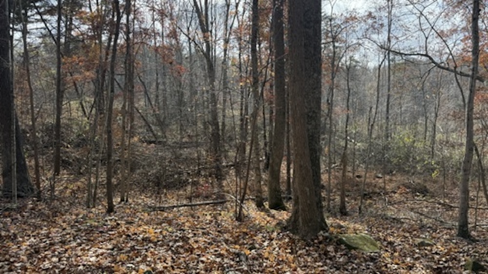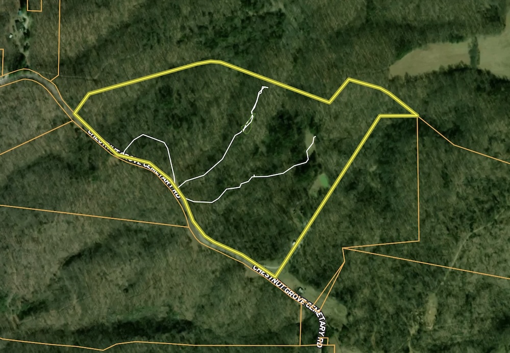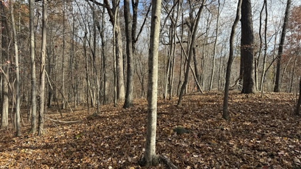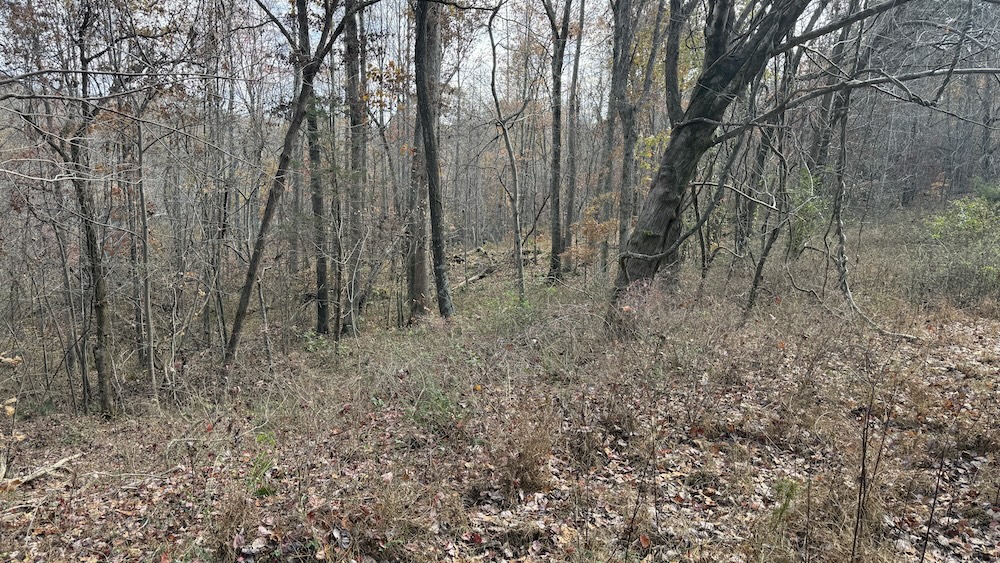 The acreage consists primarily of timbered ground with a blend of open hardwood areas and thicker cover that supports wildlife bedding and natural screening. Two small food plots have been established on the property, offering manageable locations for wildlife attraction or habitat planning. The surrounding landscape is predominantly wooded, which helps maintain seclusion and offers continuity of habitat. Due to the natural layout and surrounding terrain, the property may experience wildlife movement patterns, including those of whitetail deer, which travel through the area.