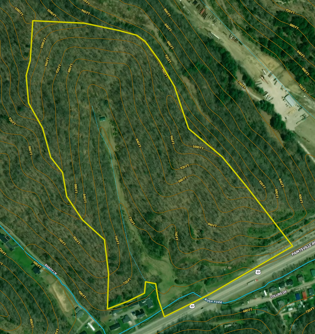Welcome to a captivating 40-acre retreat just 2 miles from the charming town of Paintsville, Kentucky. This expansive property boasts a prime location with easy access to KY Hwy 23, offering excellent recreational and commercial development opportunities. Here, you'll find a perfect blend of picturesque landscapes, versatile terrain, and enticing features that make it an ideal investment. Nestled just a mile from Paintsville, this property enjoys the convenience of proximity to town amenities while providing a serene and private escape. With direct access to KY Hwy 23, the property offers high visibility and easy transportation, making it ideal for commercial development or a strategic investment opportunity. Explore the beauty of this land, featuring stunning cleared fields, hardwood hills, and ridges that create a diverse and visually appealing landscape. Immerse yourself in nature as you encounter abundant wildlife, including deer and turkey. The property's natural setting makes it a haven for outdoor enthusiasts and hunters alike. A small cabin and a garage enhance the property's allure, providing comfort and storage for your recreational pursuits. Whether you're seeking a weekend getaway or a base for outdoor adventures, these structures add practicality to the retreat. Enjoy the tranquility of Rush Fork Blue Line Creek and a seasonal stream, adding to the property's charm. These water features contribute to the peaceful ambiance, making it an idyllic escape. The diverse terrain and abundant wildlife and water features offer endless possibilities for recreational activities such as hiking, hunting, fishing, and more. The strategic location and road frontage make this property an excellent candidate for commercial development. The possibilities are vast, whether it's a resort, campground, or other ventures. This 40-acre gem is not just a property; it's an opportunity to create your haven for personal enjoyment, commercial ventures, or a combination of both. Seize the chance to own a piece of Kentucky's scenic beauty and let your imagination unfold in this versatile and enchanting landscape. Give me a call today to schedule your private viewing!