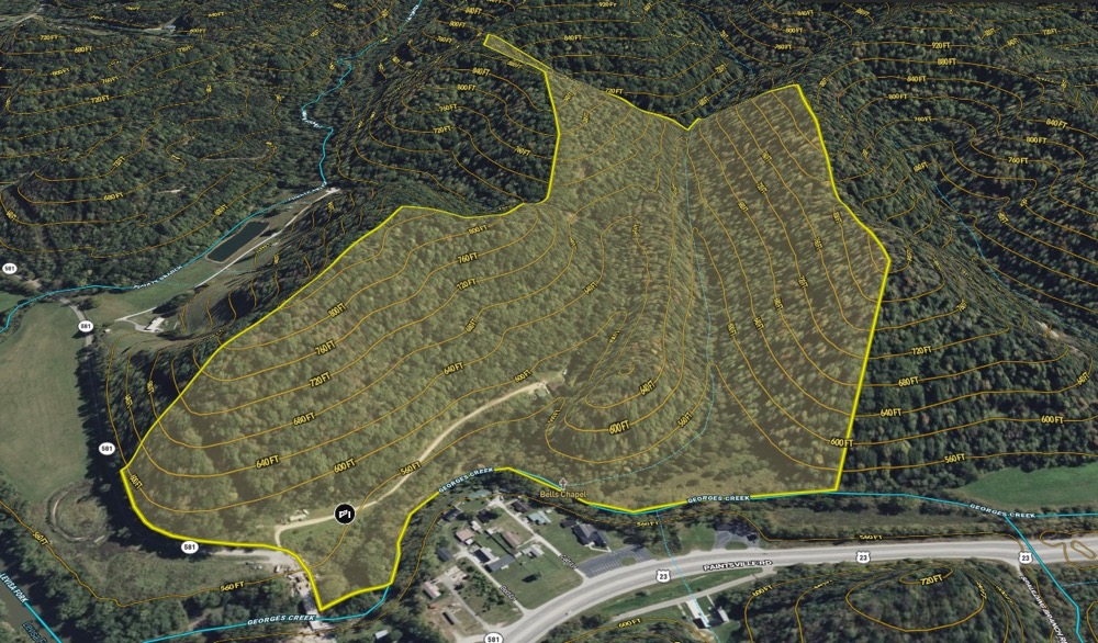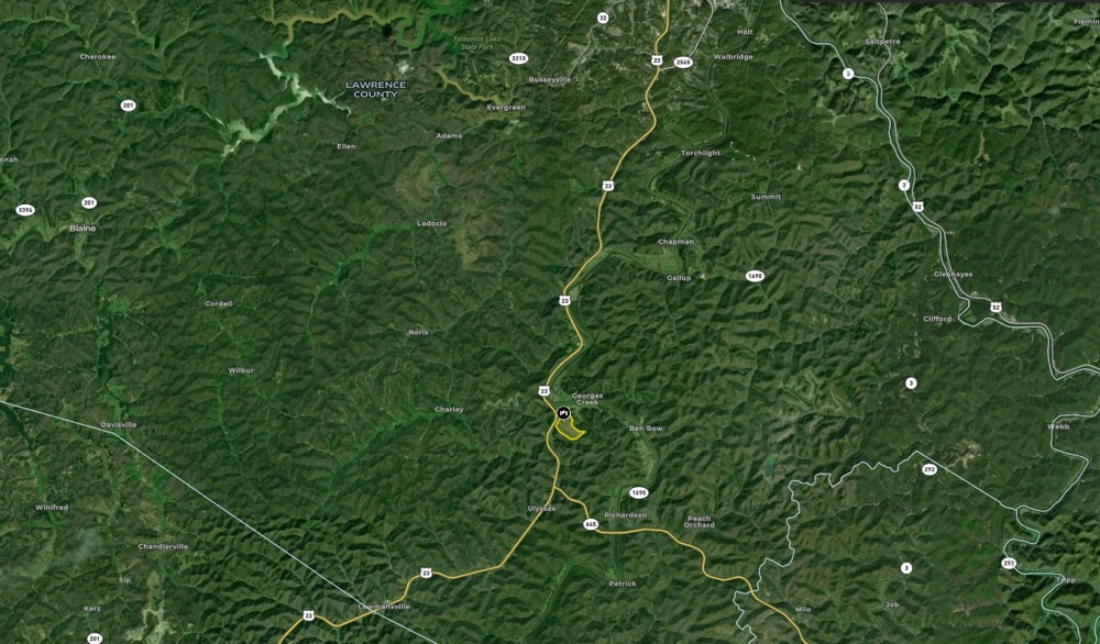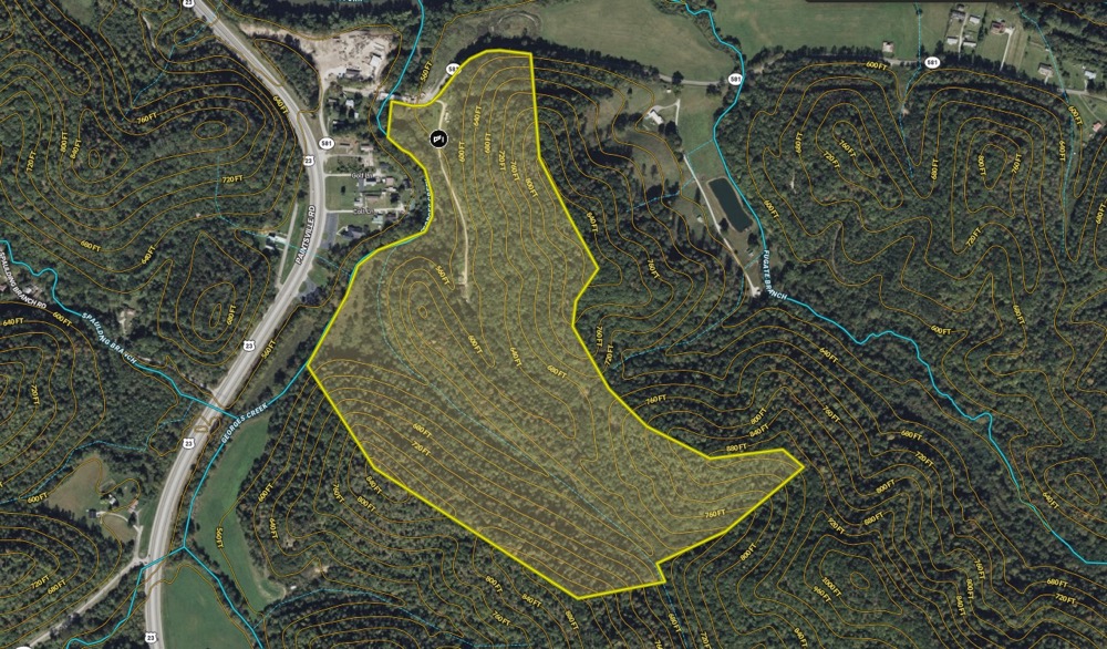 This mostly forested 100-acre property in Ulysses, Kentucky, offers a perfect blend of privacy, recreational opportunities, and potential residential use. The land appears to have been selectively timbered roughly 15+ years ago, leaving a mature forest feel with a healthy mix of species and some good timber value in some parts of the property. Natural features include approximately 2,000 feet of Georges Creek—a blue-line stream—along the northwest boundary, a small intermittent stream flowing approximately 2500 feet through the property, and a flat, roughly 2-acre creek bottom area ideal for a garden, food plot, or great hunting setup. The terrain varies from moderate to rugged in some parts, providing excellent habitat for wildlife, including abundant deer and turkey. During a recent visit, there were impressive turkey scratching and signs throughout the property. The property offers excellent access from the north and utilities, with 600 feet of blacktop road frontage along KY Highway 581 on the north boundary and two established residence locations. Structures on the property include an old single-wide mobile home that needs removal and some debris, a double-wide mobile home suitable for renovation or removal, and a 2-bay gravel-floor metal shed. At least one water well is available, and a network of trails provides easy access to most areas of the land. Adding a touch of history, the property contains an old, unmaintained cemetery at the center point in the northern part of the property. This property is conveniently located between Louisa and Paintsville, just off KY Highway 23, making it ideal for hunting, recreation, and a private retreat or homestead. Give me a call and let's see if this property is what you've been searching for!