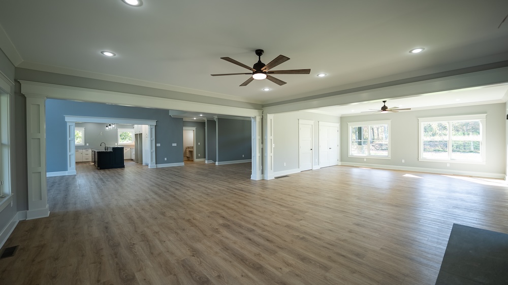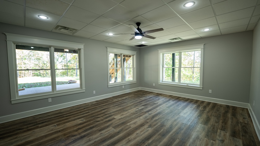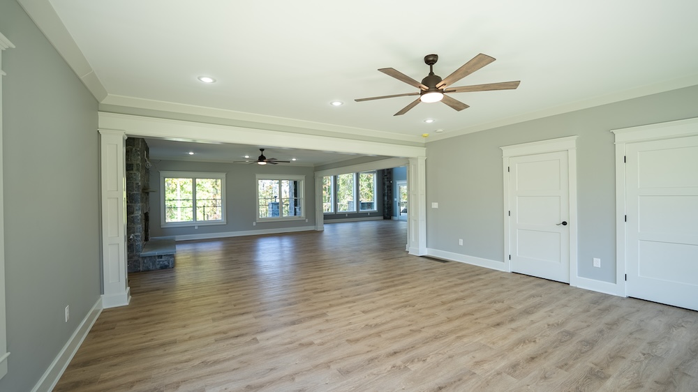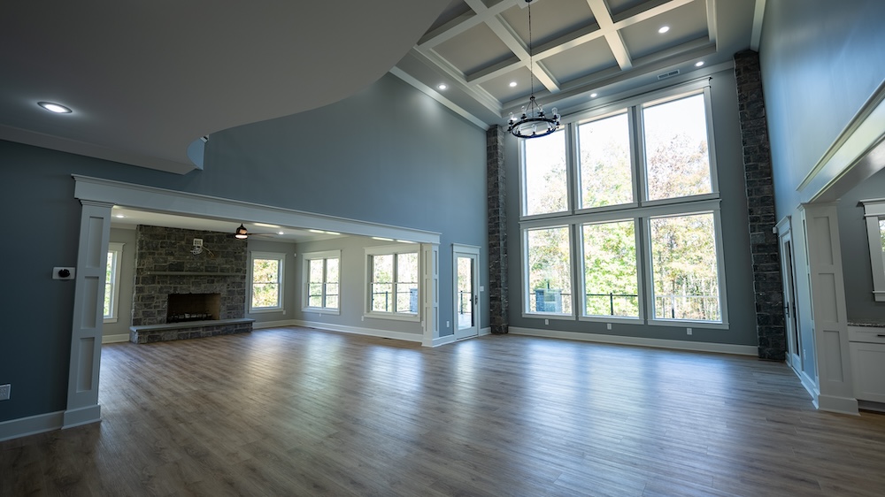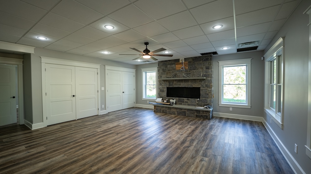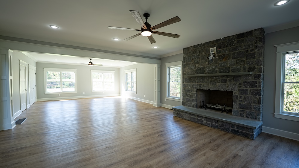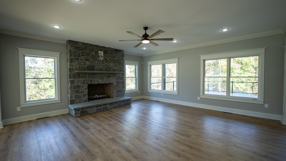 The newly built 8,550± square foot lodge-style residence highlights the tract. This four-level home includes three levels above grade and a walkout basement below grade. The design features an open and spacious floor plan with large common areas that can serve multiple purposes, alongside private living quarters. The home has 10 bedrooms, 10 full bathrooms, and 2 half bathrooms, offering flexibility for retreats, gatherings, or long-term residential use. The kitchen area remains unfinished, allowing the future owner to select appliances and finishes to suit their needs.