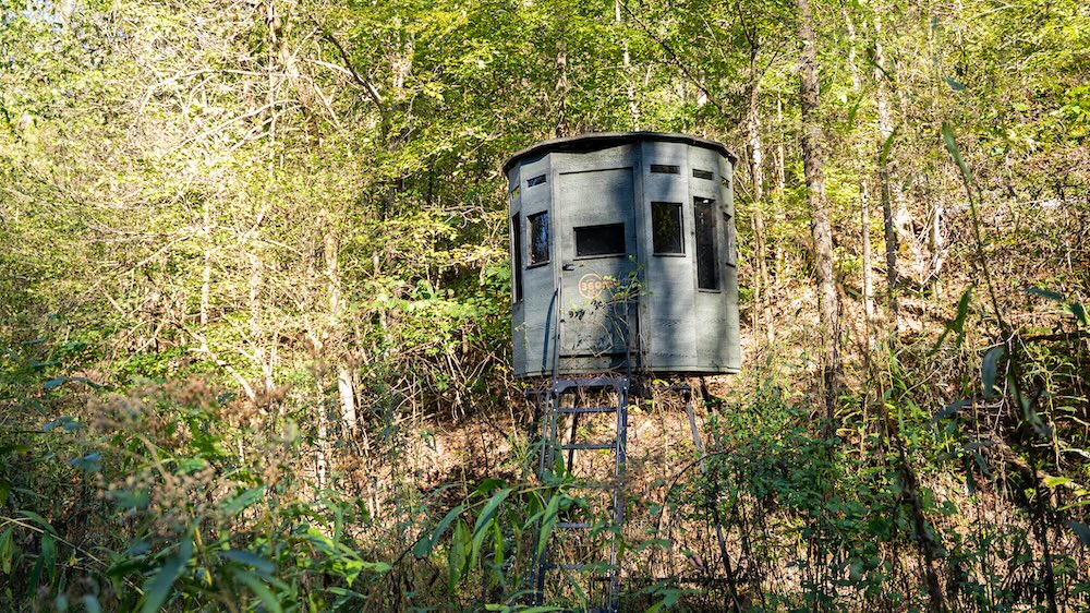 Other improvements include an older barn that provides storage potential and could benefit from updates. An internal trail system is in place throughout the acreage, offering access by ATV, UTV, horseback, or foot. These established trails would benefit from cleanup and maintenance for easier travel. For hunting and land management, the property includes a 360° elevated hunting blind and a Veil deer feeder, creating established setups for pursuing game.