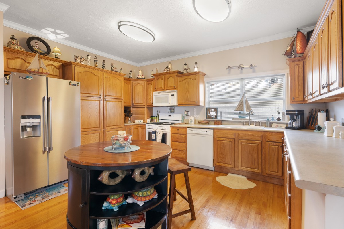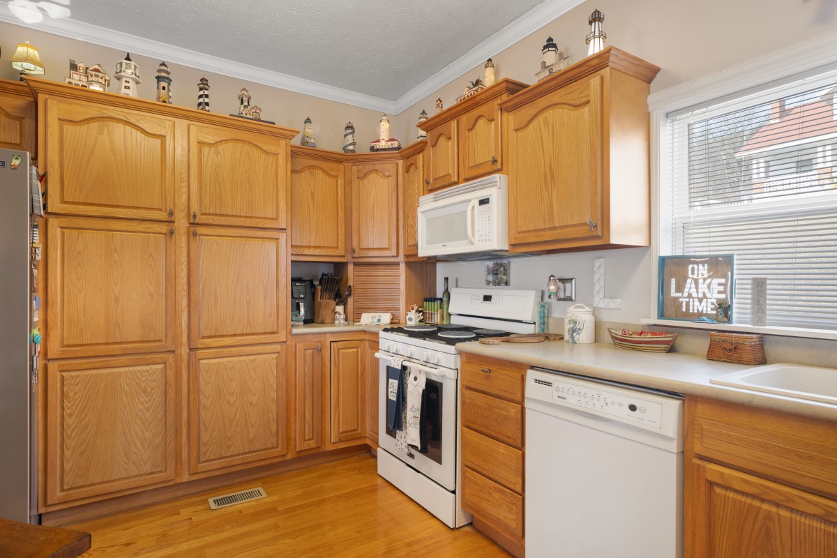 - Kitchen with gas stove, fridge, dishwasher, and microwave