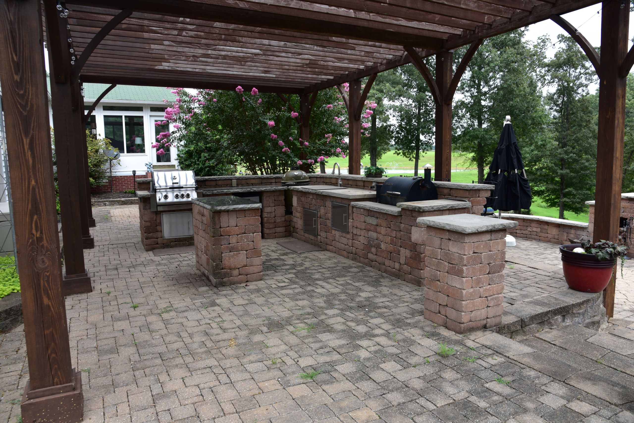 - Outdoor recreation and entertainment area with kitchenette and bar top