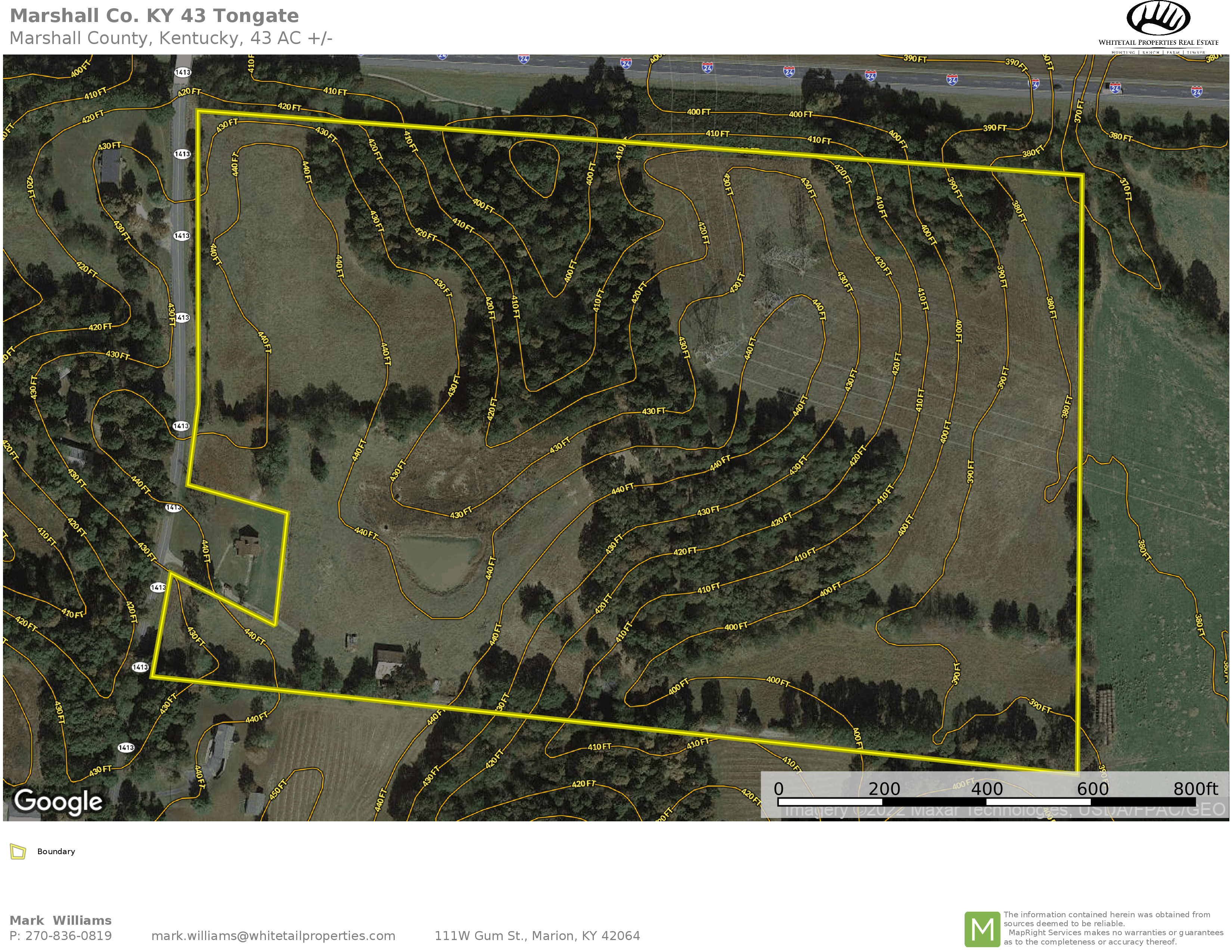 - 850 feet of road frontage