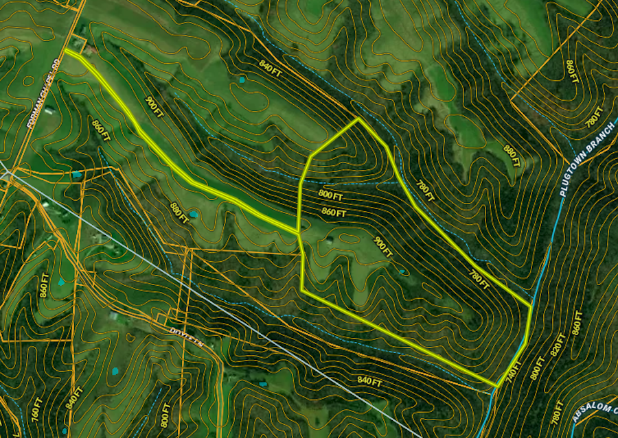 Just minutes off Hwy 68 near Blue Licks lies this beautiful piece of ground that would suit many interests. Turning off Forman’s Chapel Road, you travel down a gravel driveway for approximately .63 miles before passing through the main gate to a cleared open ridgetop perfect for a house seat. With beautiful high topography views and city water on site, this would make a gem of a location to build your dream home. There are around 12 acres of established clear ground, with an additional five that could be reclaimed for hay or pasture. For the hunter, this is a zone 1 hunting county known for producing trophy-class whitetails and turkeys, with plenty of signs on the property. At the back east side of the farm is over 950 feet of blueline stream that provides a year-round water source. With around 160 feet of elevation change, there is plenty of diversity and habitat on this one! Call today to set up your private showing of this beautiful tract!